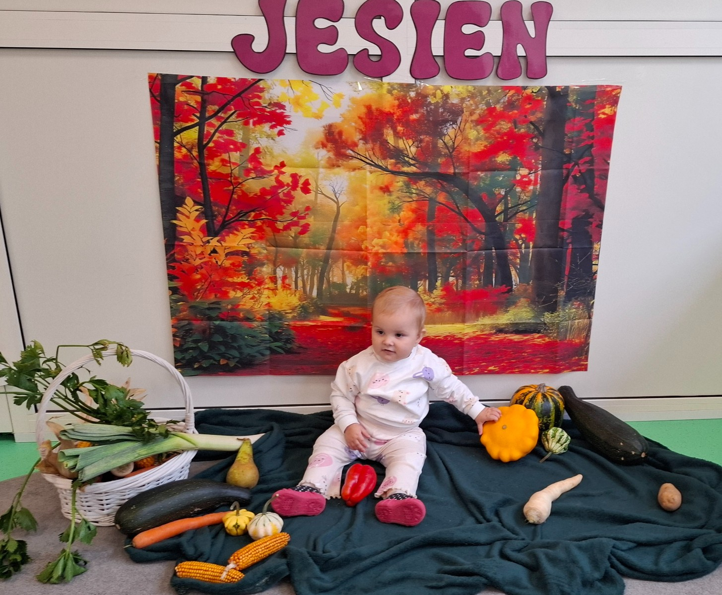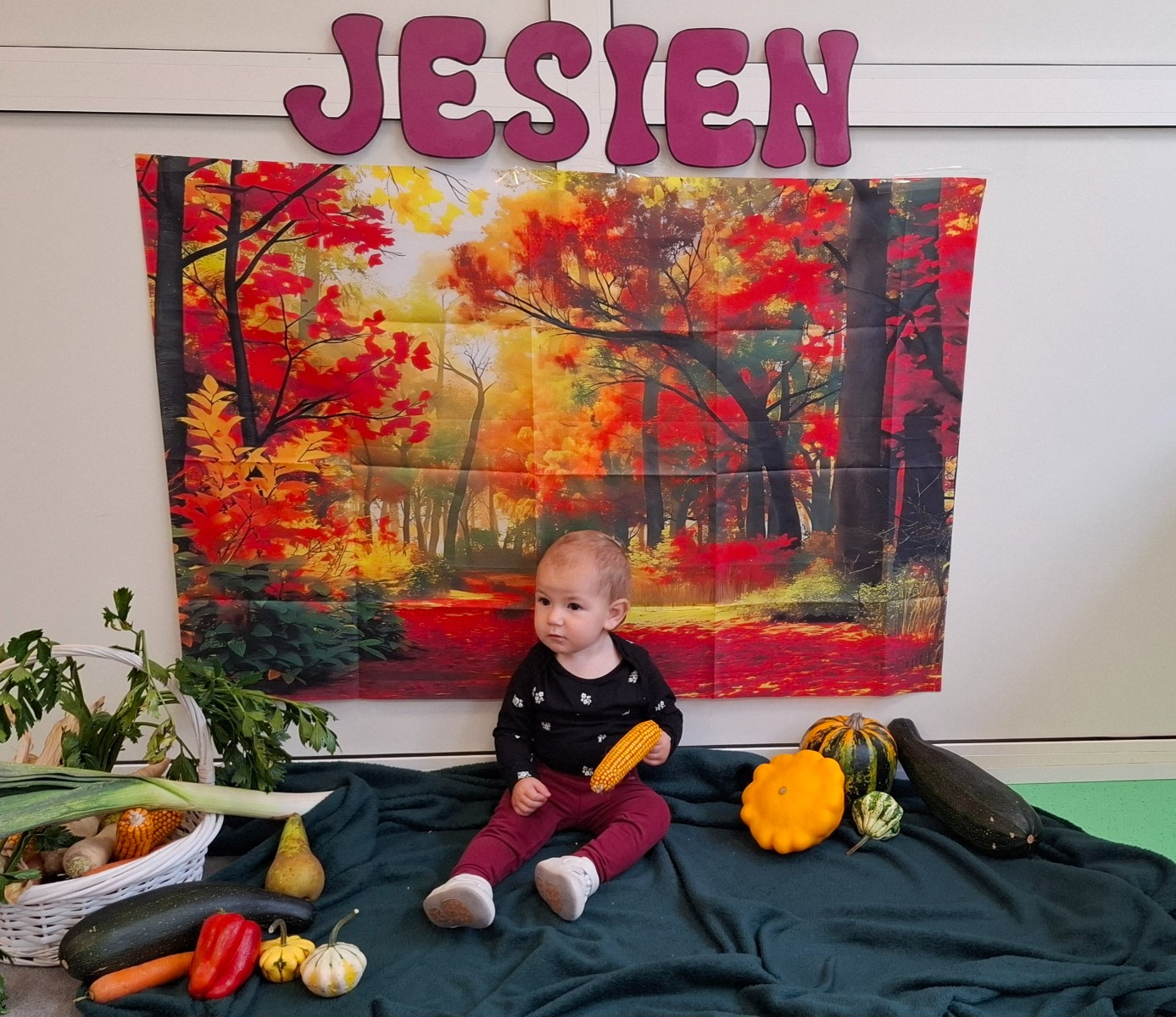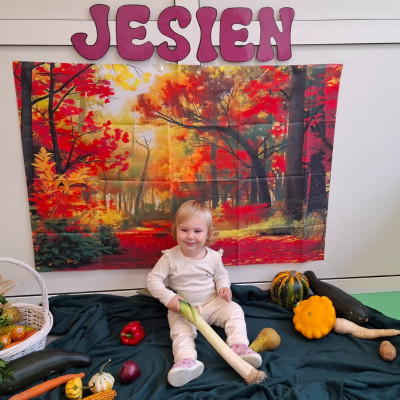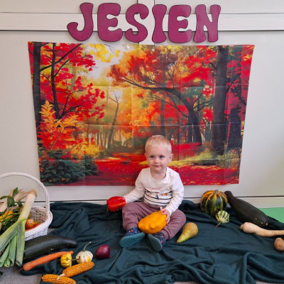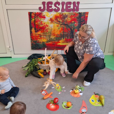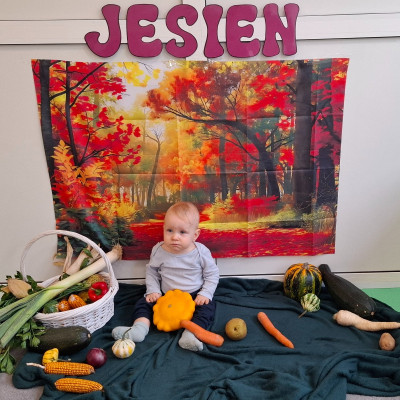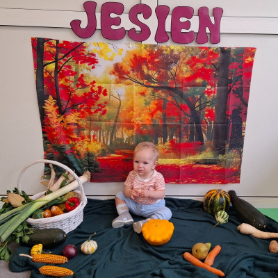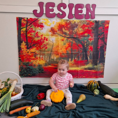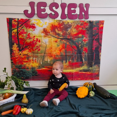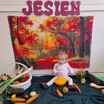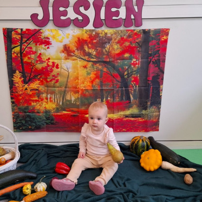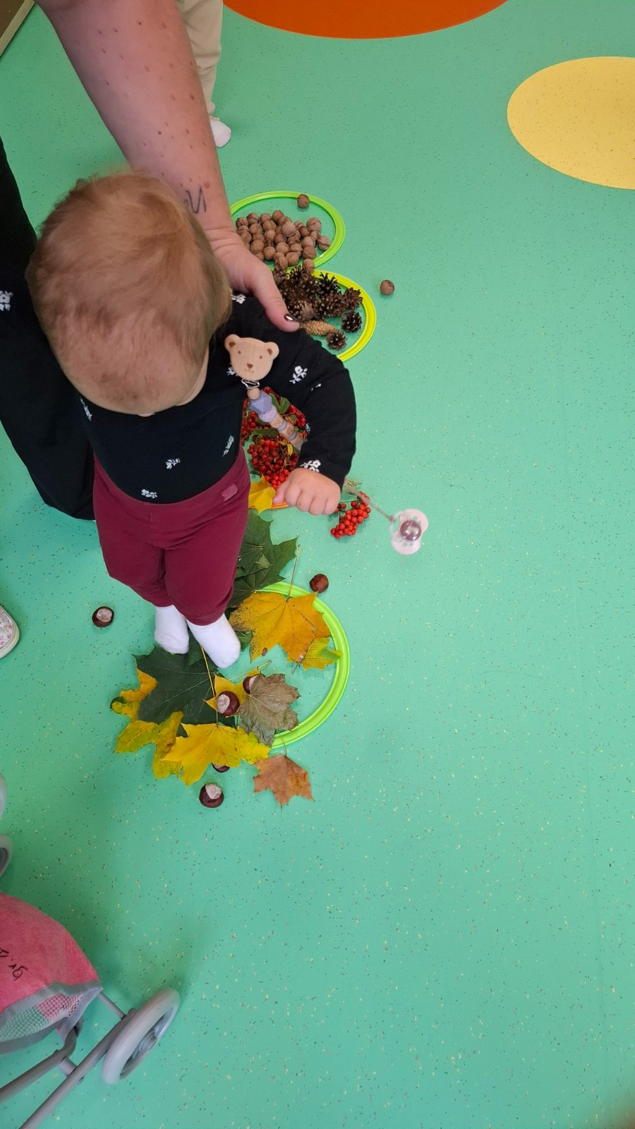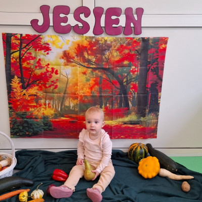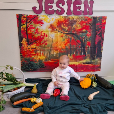 Do naszych małych smyków z grupy misie zawitała Pani Jesień . Podczas zajęć dzieci dowiedziały się co to za pora roku, jakie niesie zmiany w przyrodzie oraz miały możliwość zobaczenia, dotknięcia różnych darów jesieni tj.jarzębina , orzechy, szyszki, warzywa i owoce.  W dalszej części zajęć z radością pokonywały ścieżkę sensoryczną utworzoną z darów  oraz wykonały wspólną pracę plastyczną podczas której naklejały białe kółeczka na kapelusz muchomora. Na zakończenie zajęć nasze maluszki bawiły się przy piosenkach o tematyce jesiennej oraz miały wykonane pamiątkowe zdjęcia na tle jesieni.