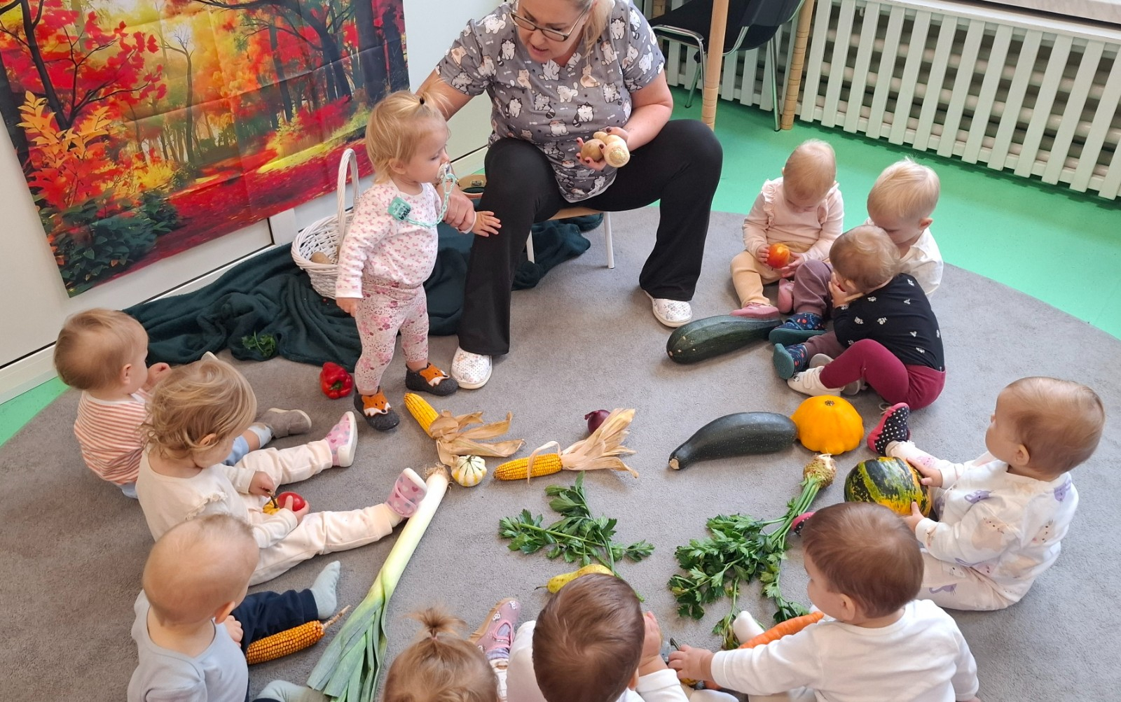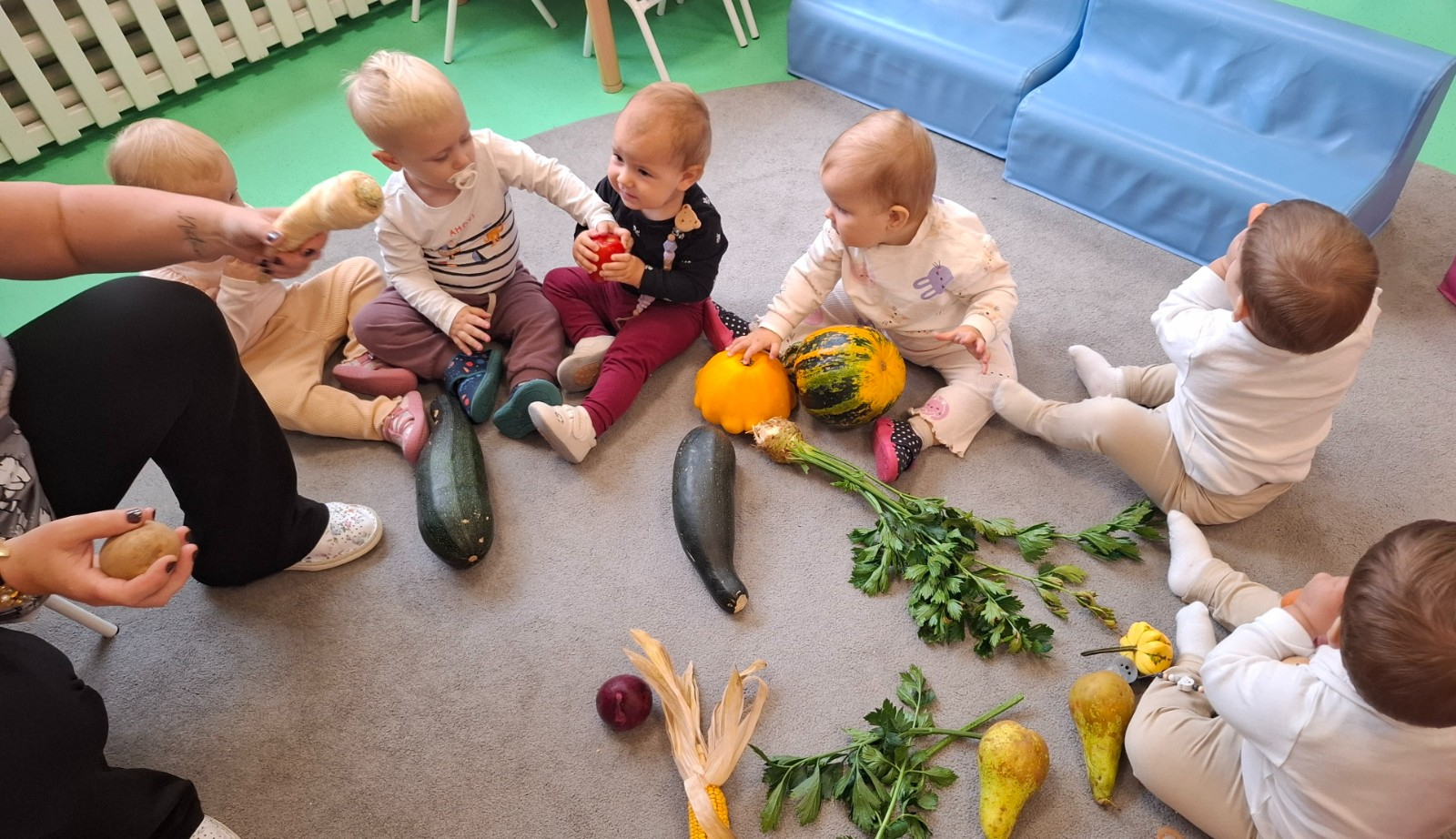 Zdjęcie przedstawia dzieci podczas zajęć jesiennych