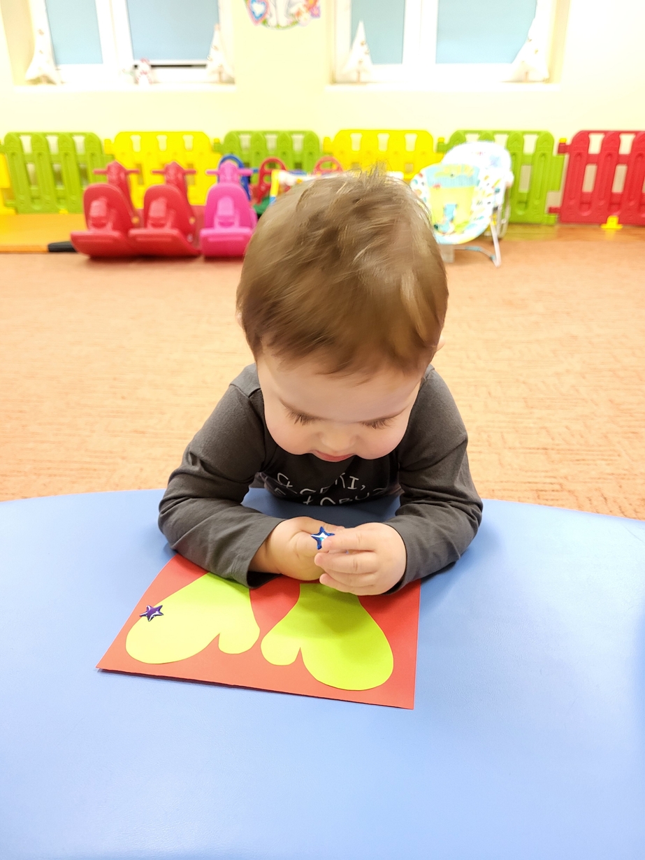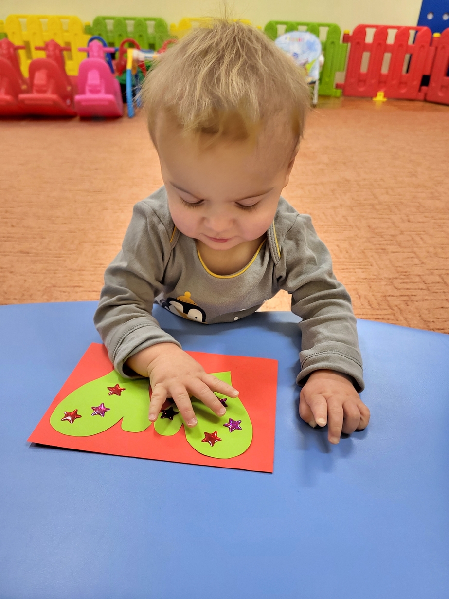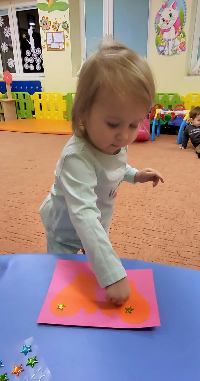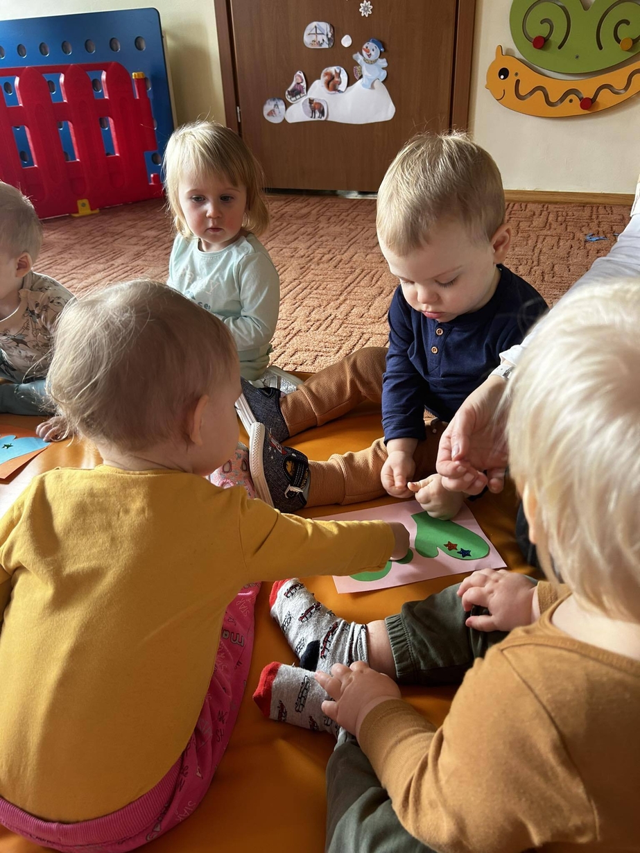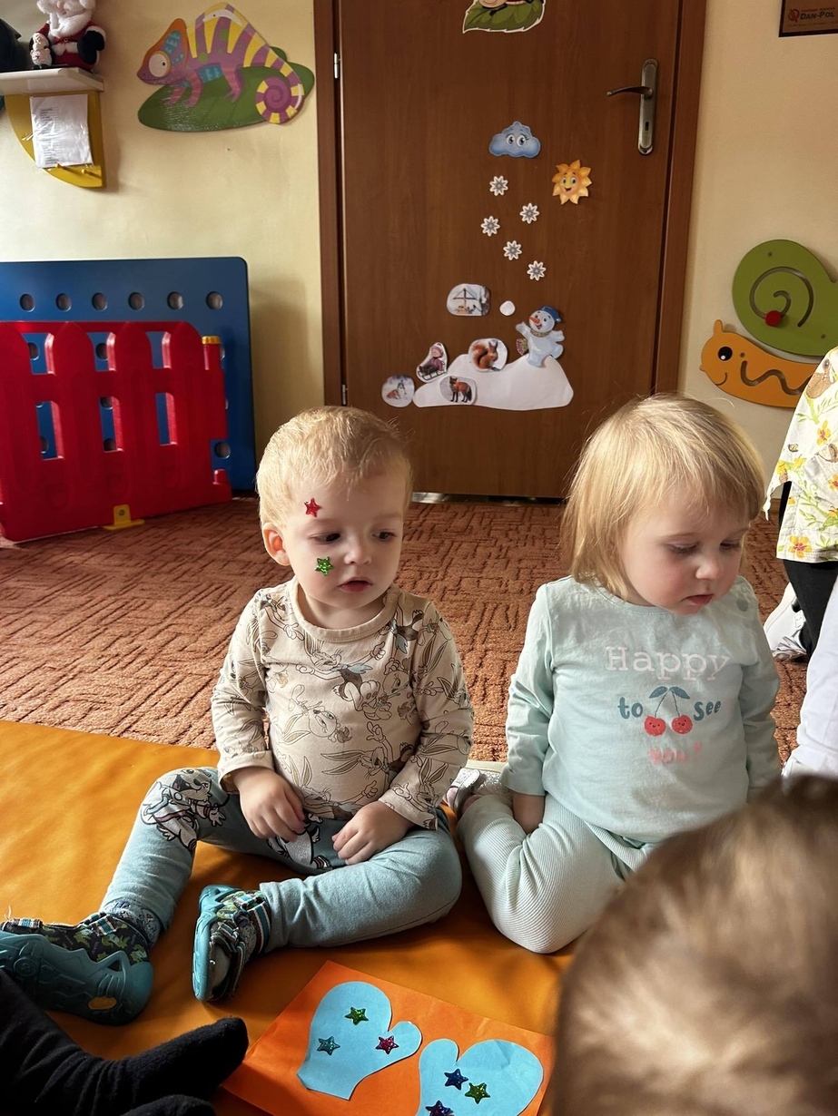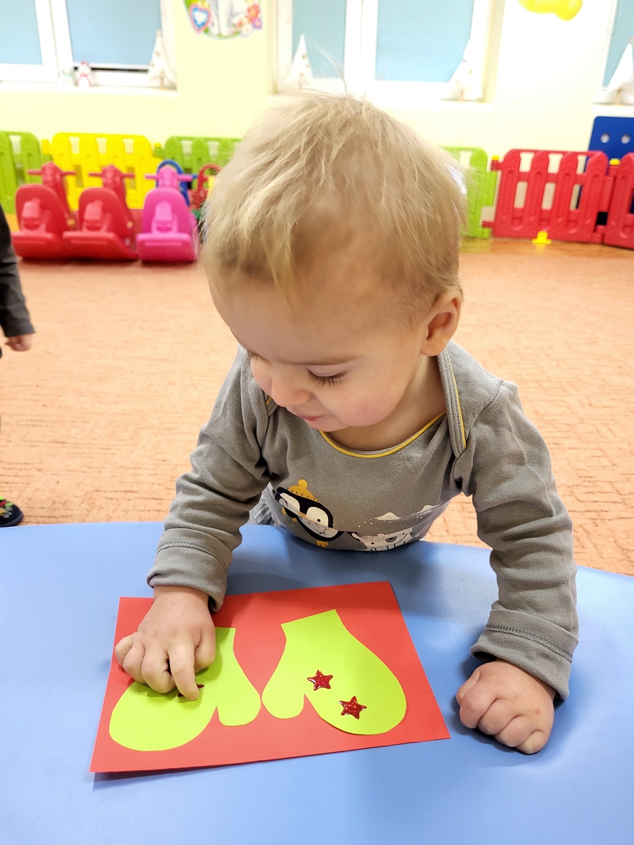 Potrzebne nam rękawiczki. Wiele radości sprawiło maluszkom przyklejanie gwiazdek jako ozdoby rękawiczek. Powstały super projekty a dzieciaczki poćwiczyły paluszki.