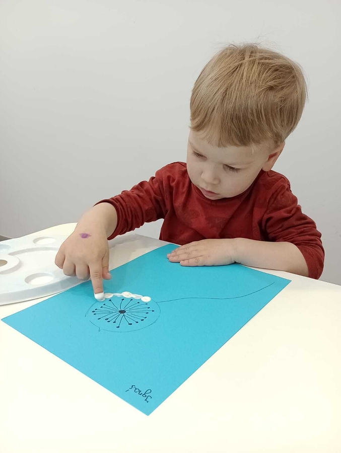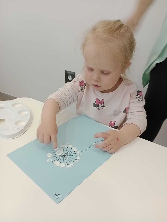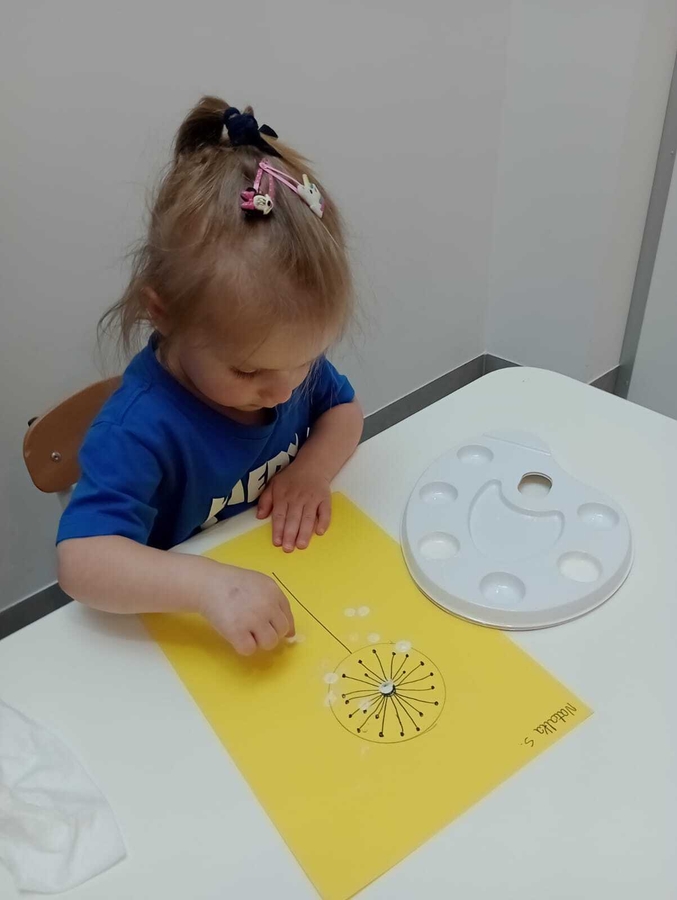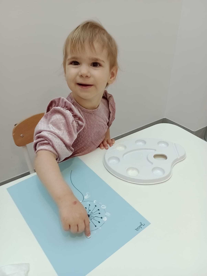 Nasi żłobkowicze bardzo lubią zajęcia plastyczne. Tym razem Tygryski wykonały piękne białe dmuchawce.