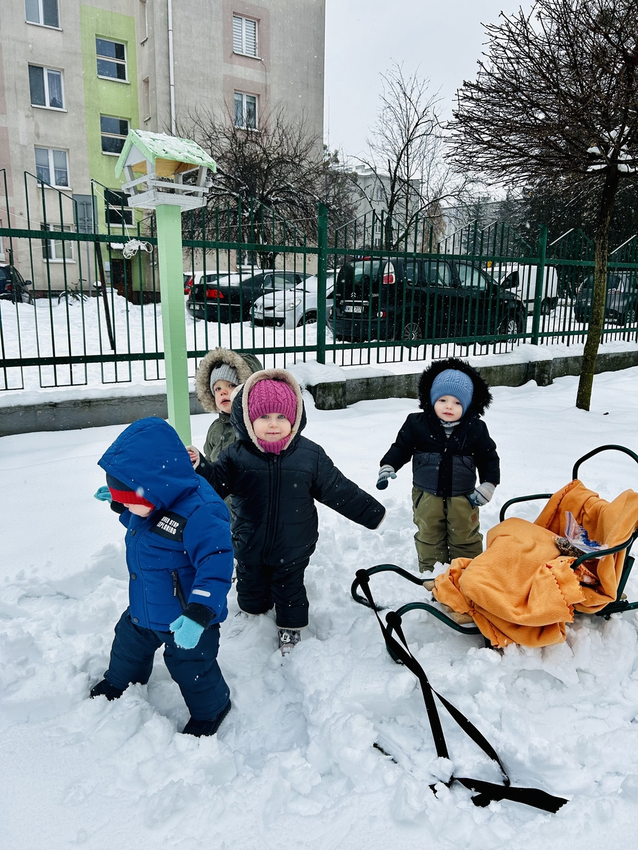 Jak co roku w okresie zimy maluszki ze Żłobka pamiętają o fruwających przyjaciołach mieszkających w żłobkowym ogrodzie. Jest to doskonała okazja do kształtowania u dzieci poczucia odpowiedzialności, obowiązkowości oraz wrażliwość na los zwierząt.