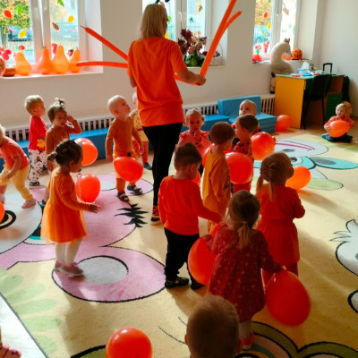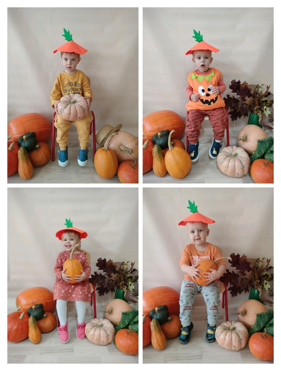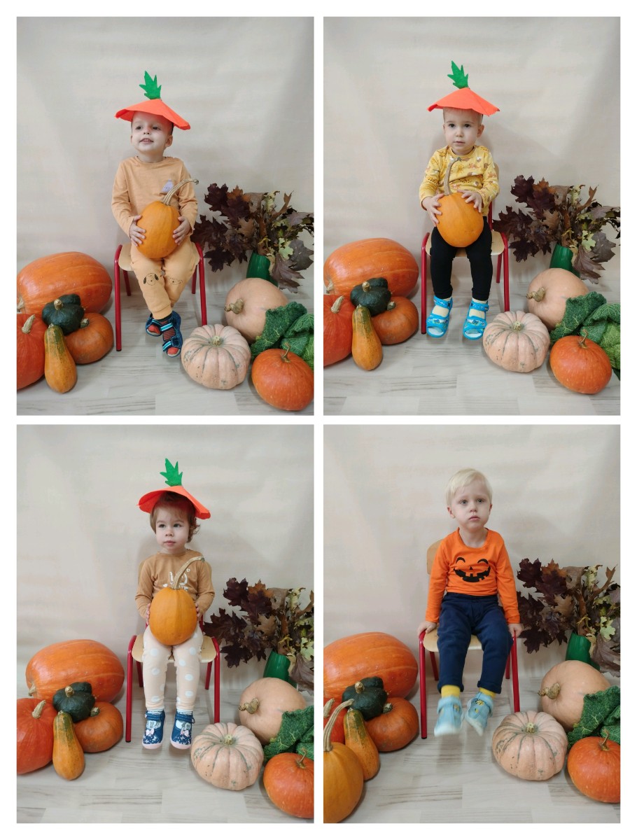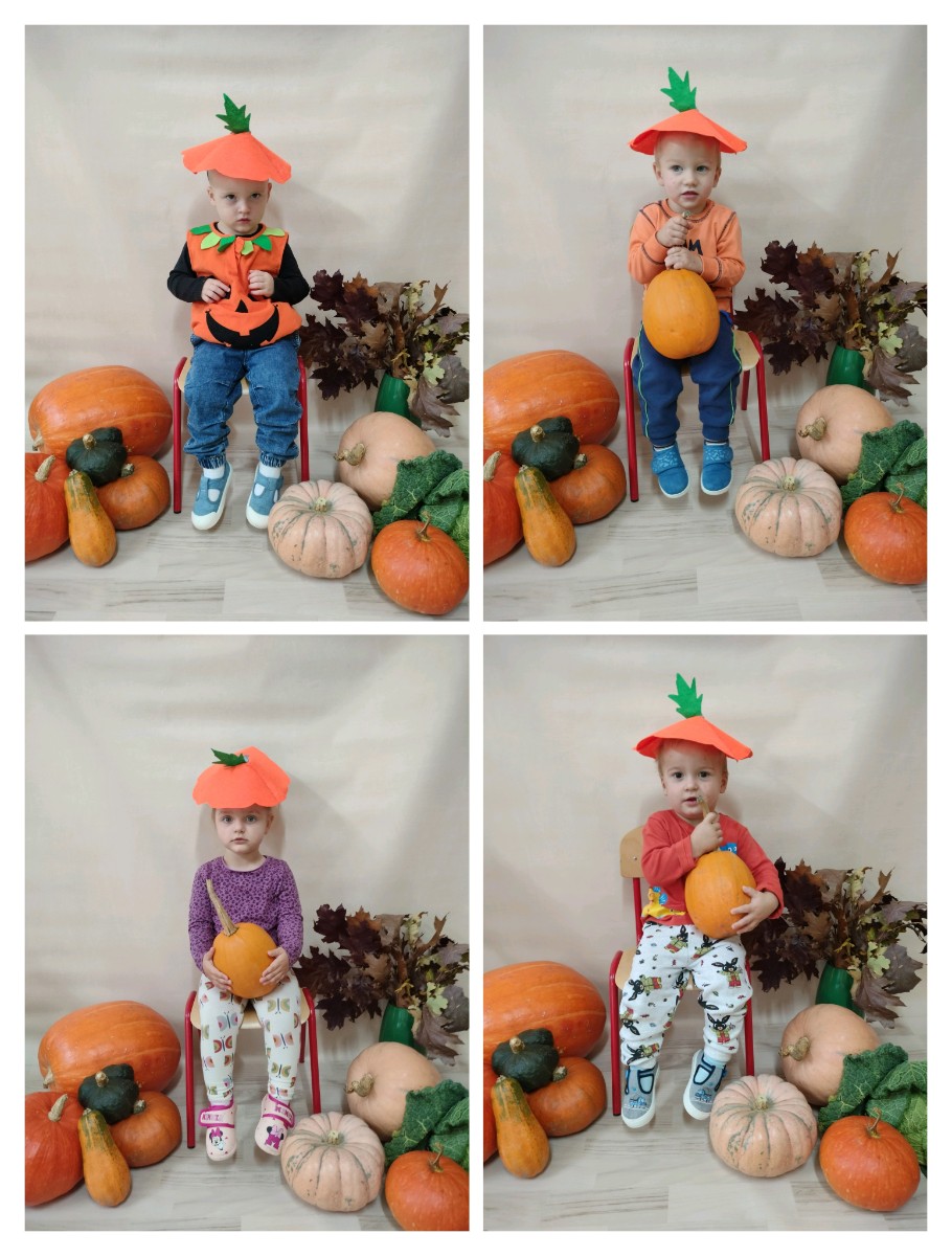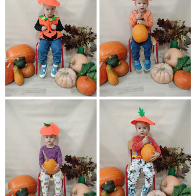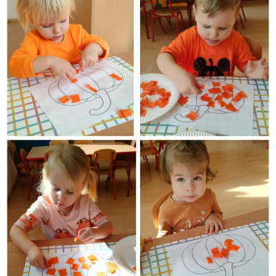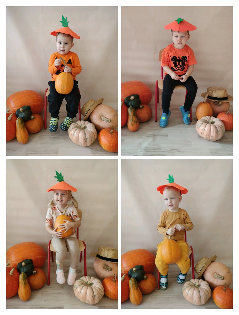 Zdjęcie przedstawia dzieci podczas zajęć w żłobku z okazji święta dyni