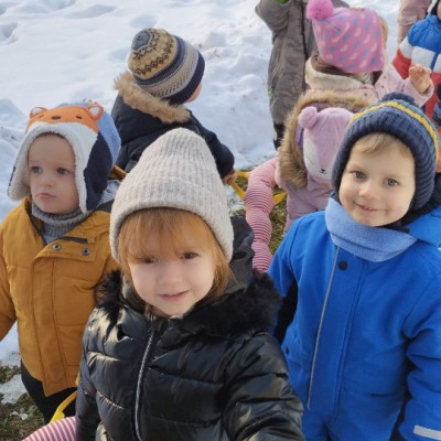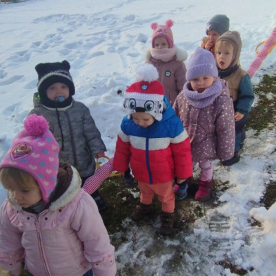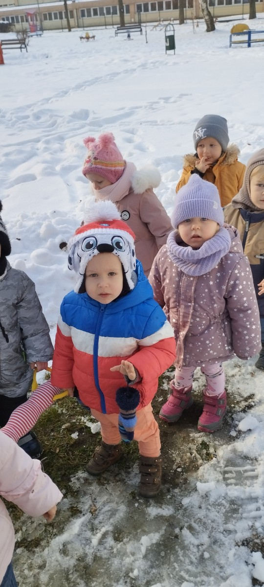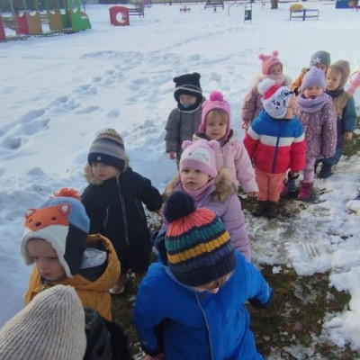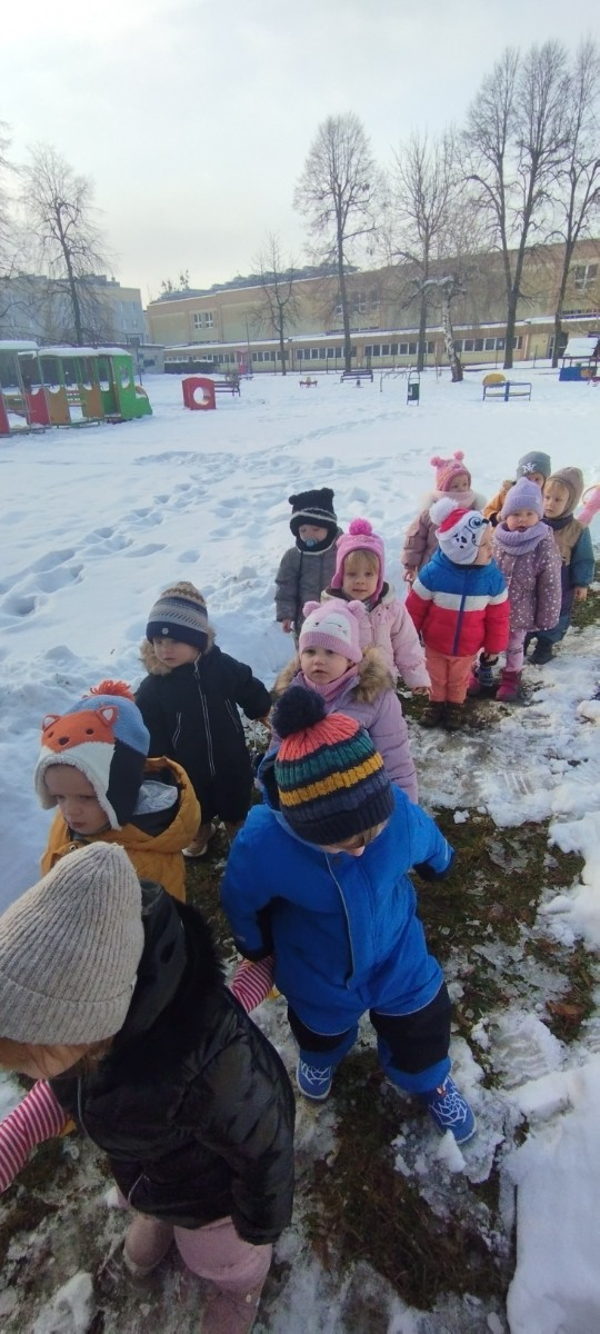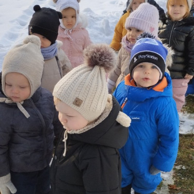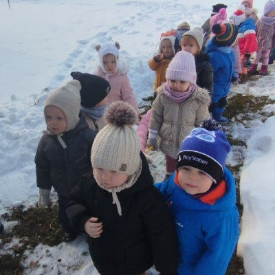 Dzieci z grupy ,,Żabki " i ,, Biedronki" podczas zimowego spacery