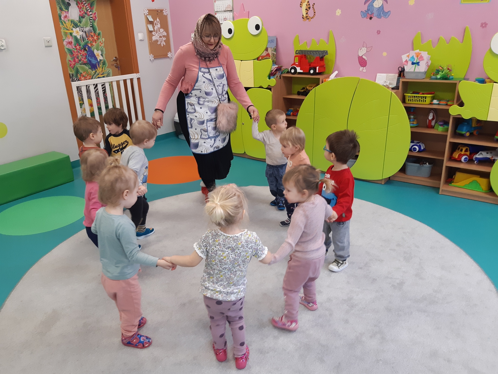W dniu 20 stycznia na grupie Żabki obchodziliśmy święto Babci oraz Dziadka. Kilka dni wcześniej nasze Żabki z pomocą pań opiekunek wykonały piękne laurki, które zabrały ze sobą do swoich domów a następnie wręczyły swoim dziadkom. W tym dniu dzieci wykonały pracę plastyczną związaną oczywiście z tematem zajęć a mianowicie malowały kolorowymi farbami portrety dziadków. Na naszej grupie z okazji tego święta gościliśmy babcię, która obdarowała wszystkie    ,,przyszywane wnuczęta" cukierkami oraz zaprosiła do wspólnych tańców oraz zabaw przy piosenkach,,Kocha babcię i dziadziusia", ,,Babciu droga babciu ". Na zakończenie zajęć wszystkie dzieci recytowały wiersz , którego uczyły się od kilku dni a mianowicie ,,Pędzą wnuki ulicami".