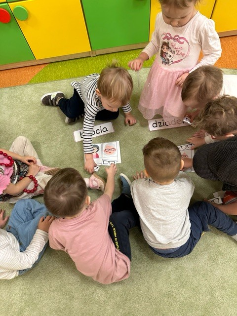 Zdjęcia przedstawiają dzieci podczas zabawy z okazji dnia Babci i Dziadka