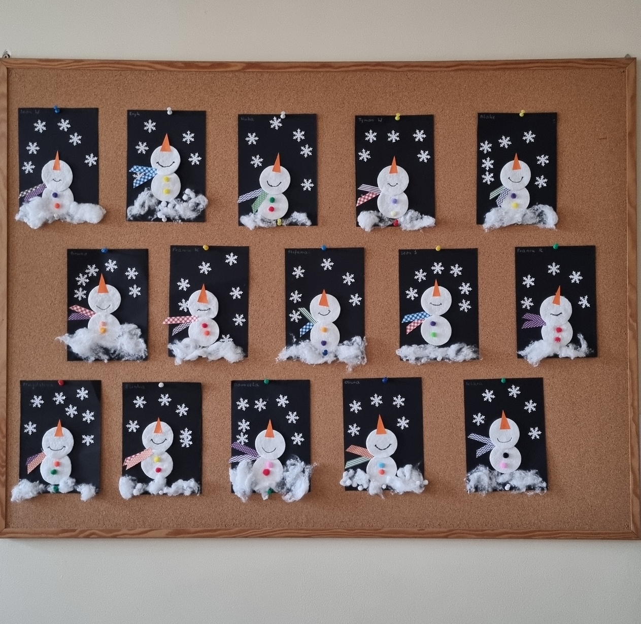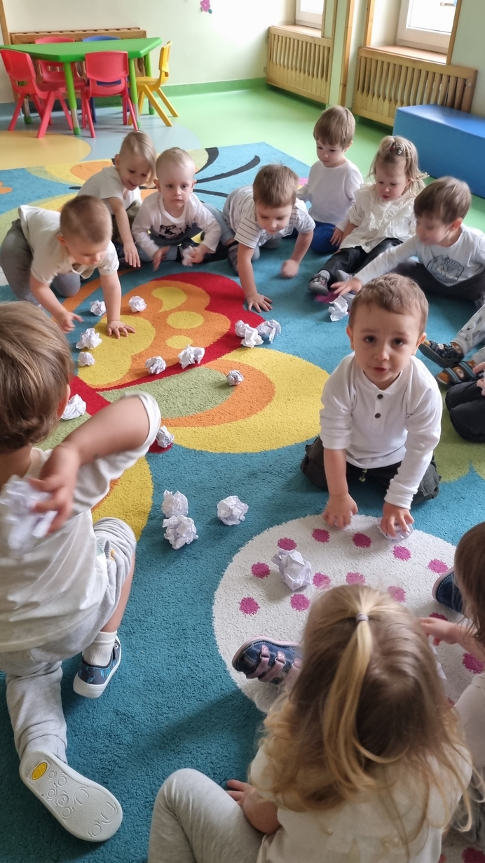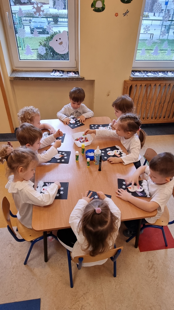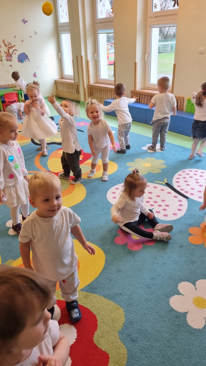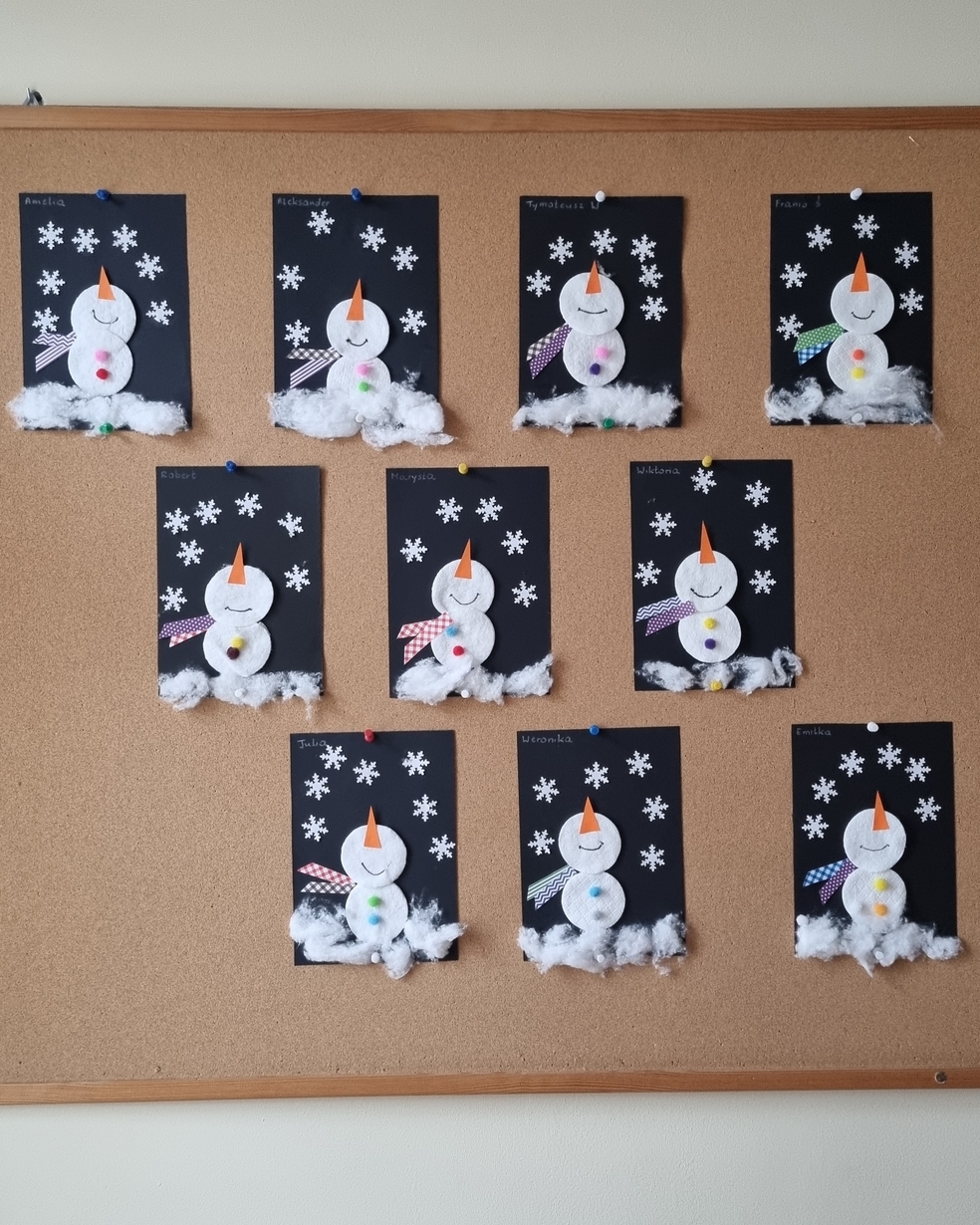 Dzisiaj w żłobku w grupie Pszczółek obchodziliśmy "Dzień Bałwana". Był to dzień wyjątkowy - bałwankowy. Dzieci ubrane były w bluzeczki koloru białego symbolizujące biały śnieg. Była to idealna okazja do zorganizowania dzieciom zabaw tematycznych takich jak: rzucanie papierowymi śnieżkami oraz układaliśmy dużego Bałwana. Dzieci także zaśpiewały wspólnie piosenkę o Bałwanie i nauczyły się wierszyka pt. "Ulepimy dziś Bałwana". Zwieńczeniem tego zimowego dnia była praca plastyczna - "Bałwanki nocą".