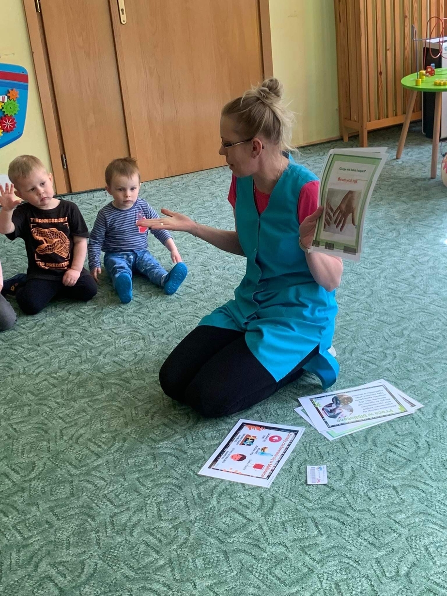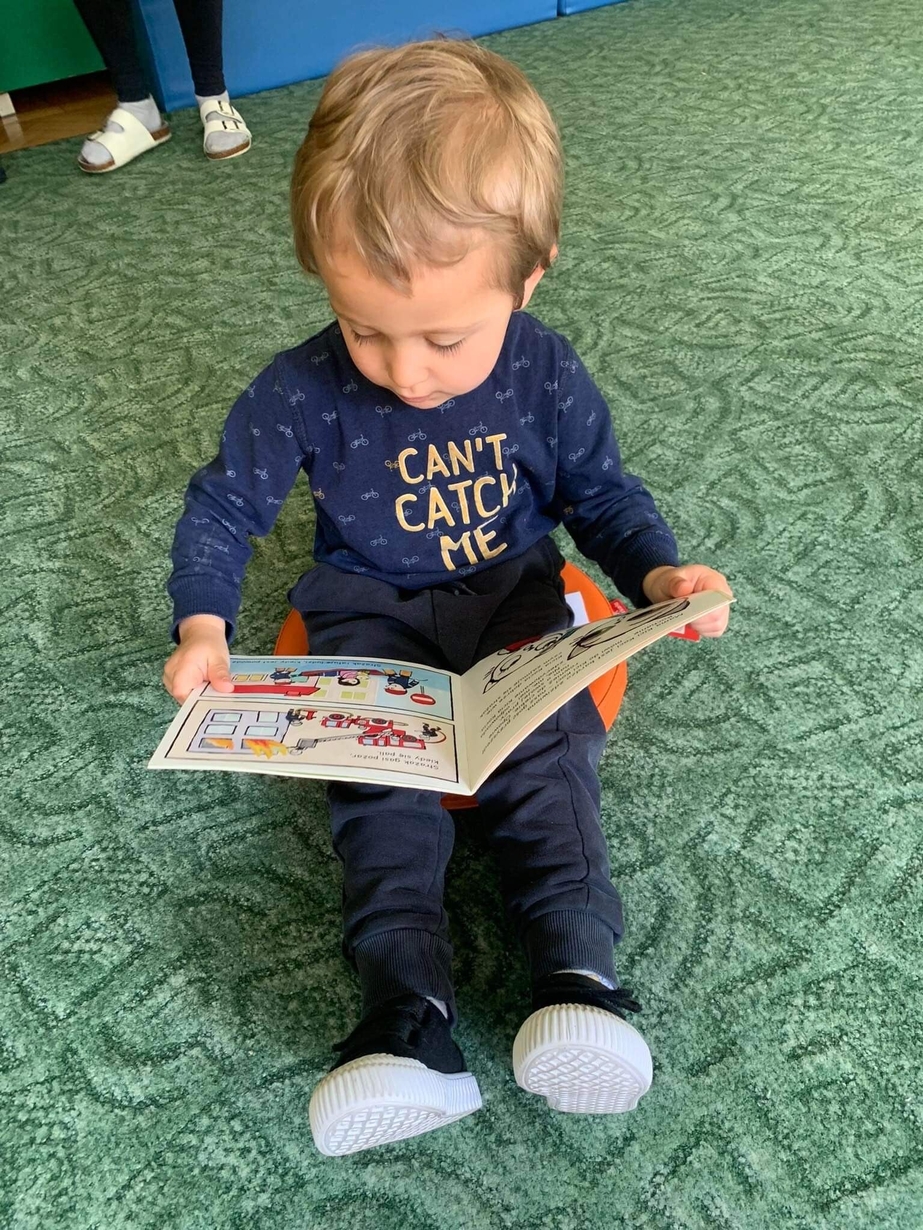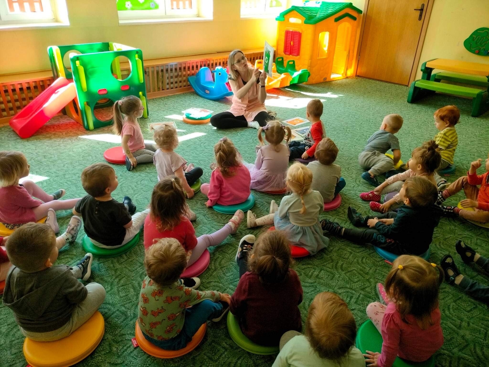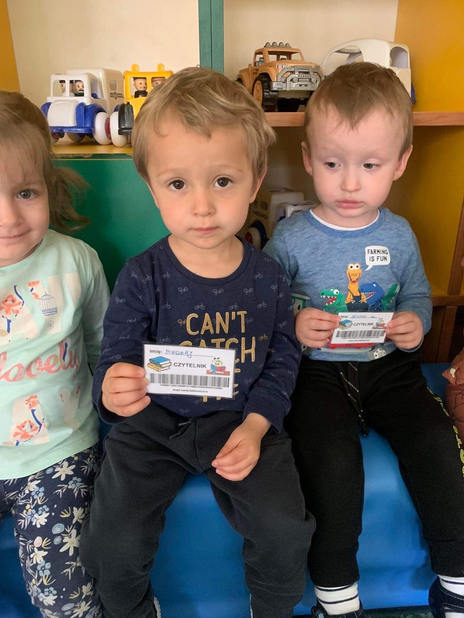 Tego dnia bawiliśmy się w bibliotekę, w której maluszki wypożyczały i oglądały bajeczki.