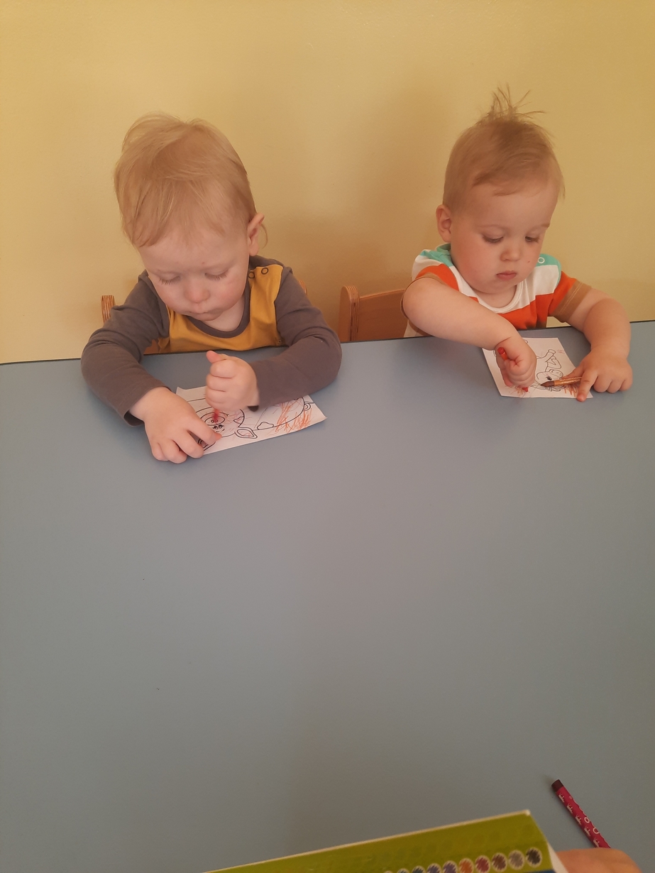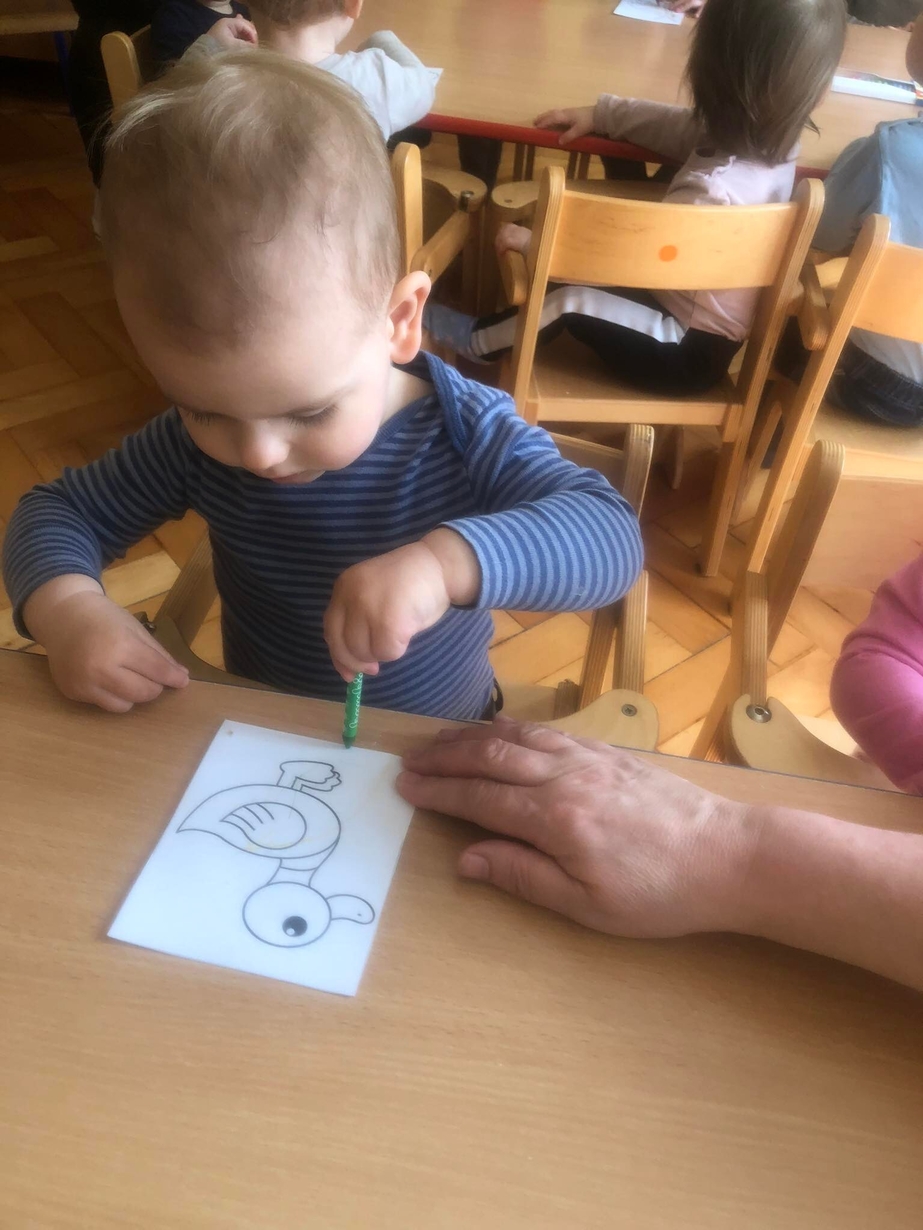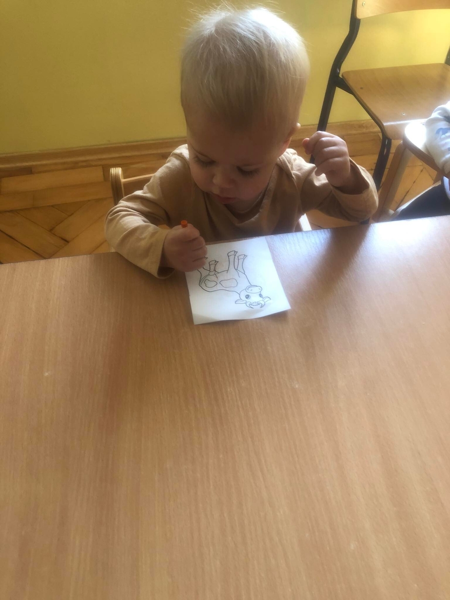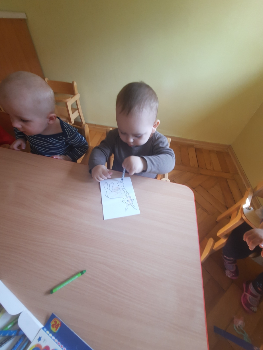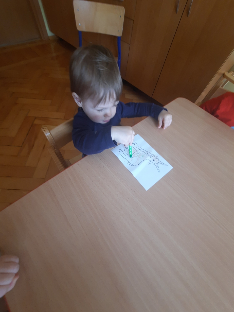 Postanowiliśmy zabawić się w bibliotekę, dzieci wybierały książeczki i oglądały obrazki. Przy okazji szukaliśmy zwierzątek i naśladowaliśmy ich odgłosy.