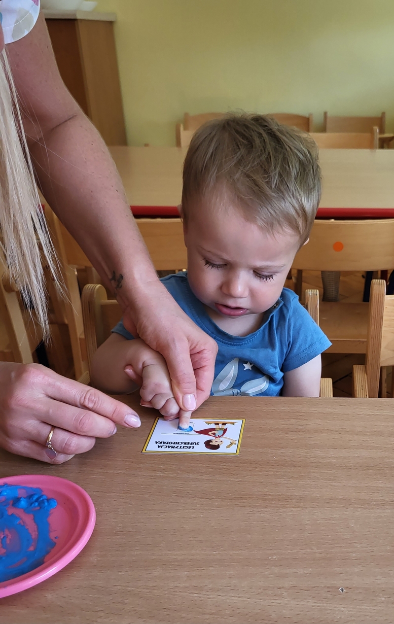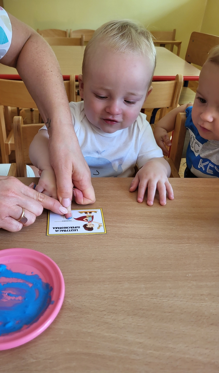 Chłopcy na grupie biedronek obchodzili Swoje Święto. Otrzymali naklejki "SUPER CHŁOPAKA" oraz legitymację na której odbijali paluszek - pierwsza praca plastyczna ? i oczywiście spisali się na medal.