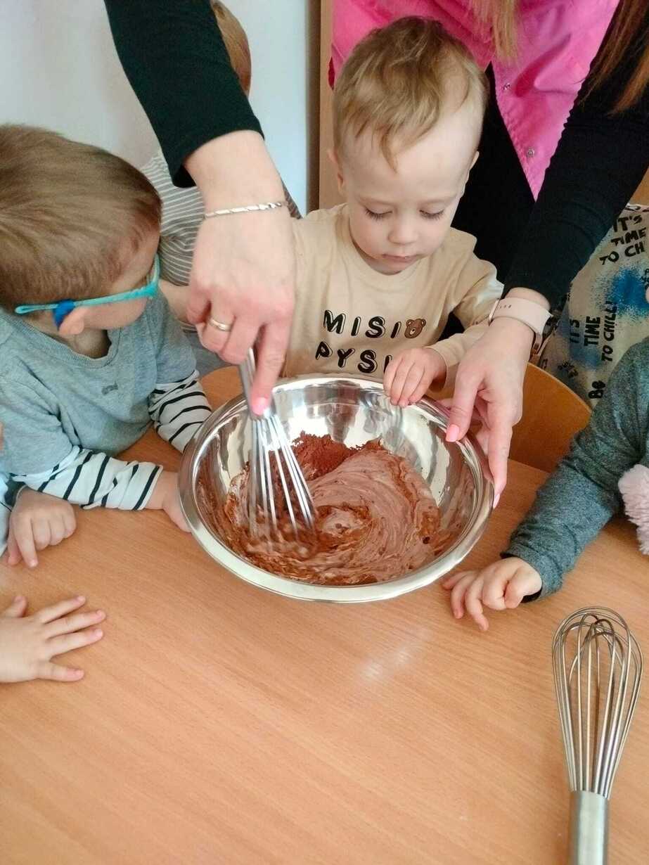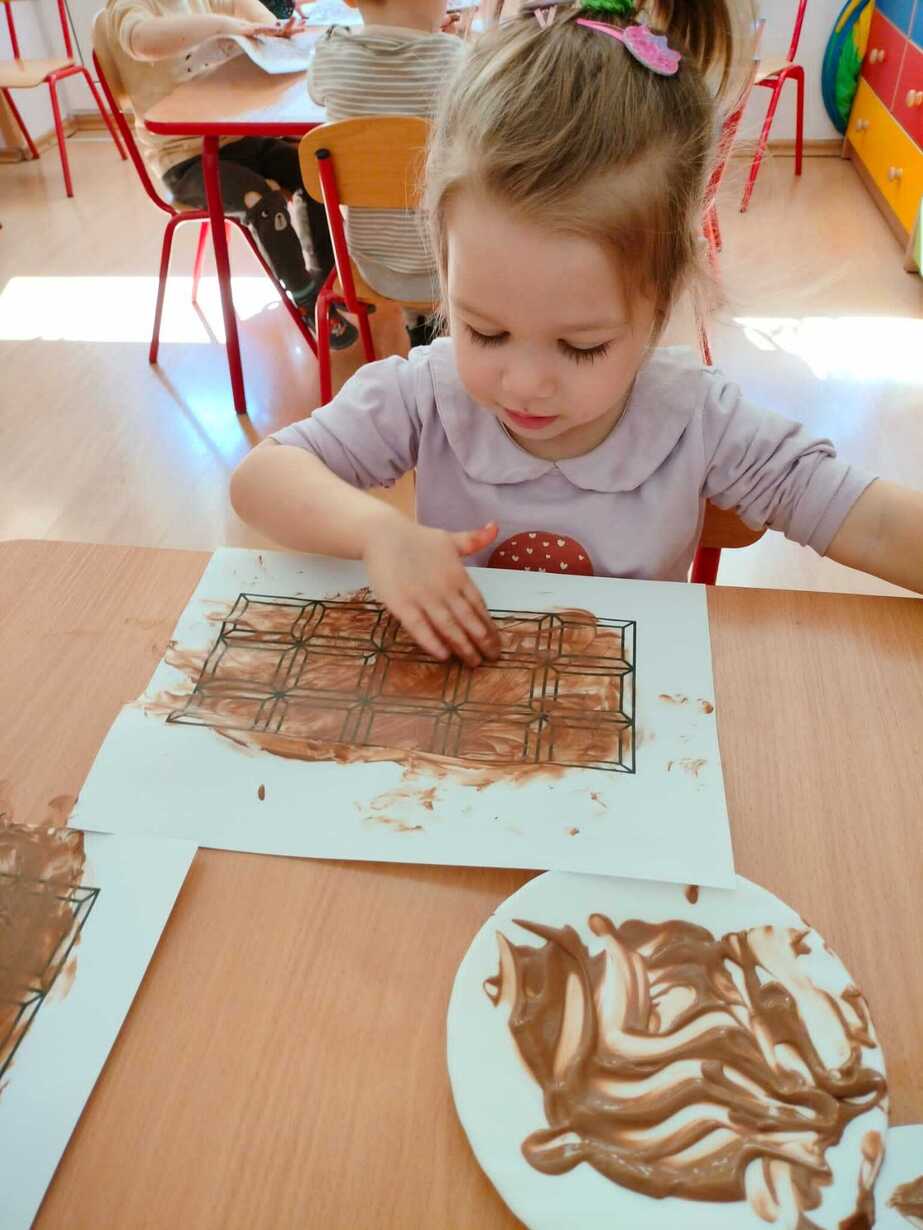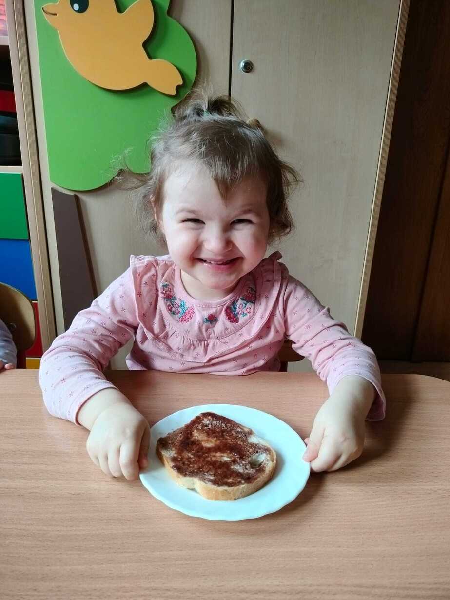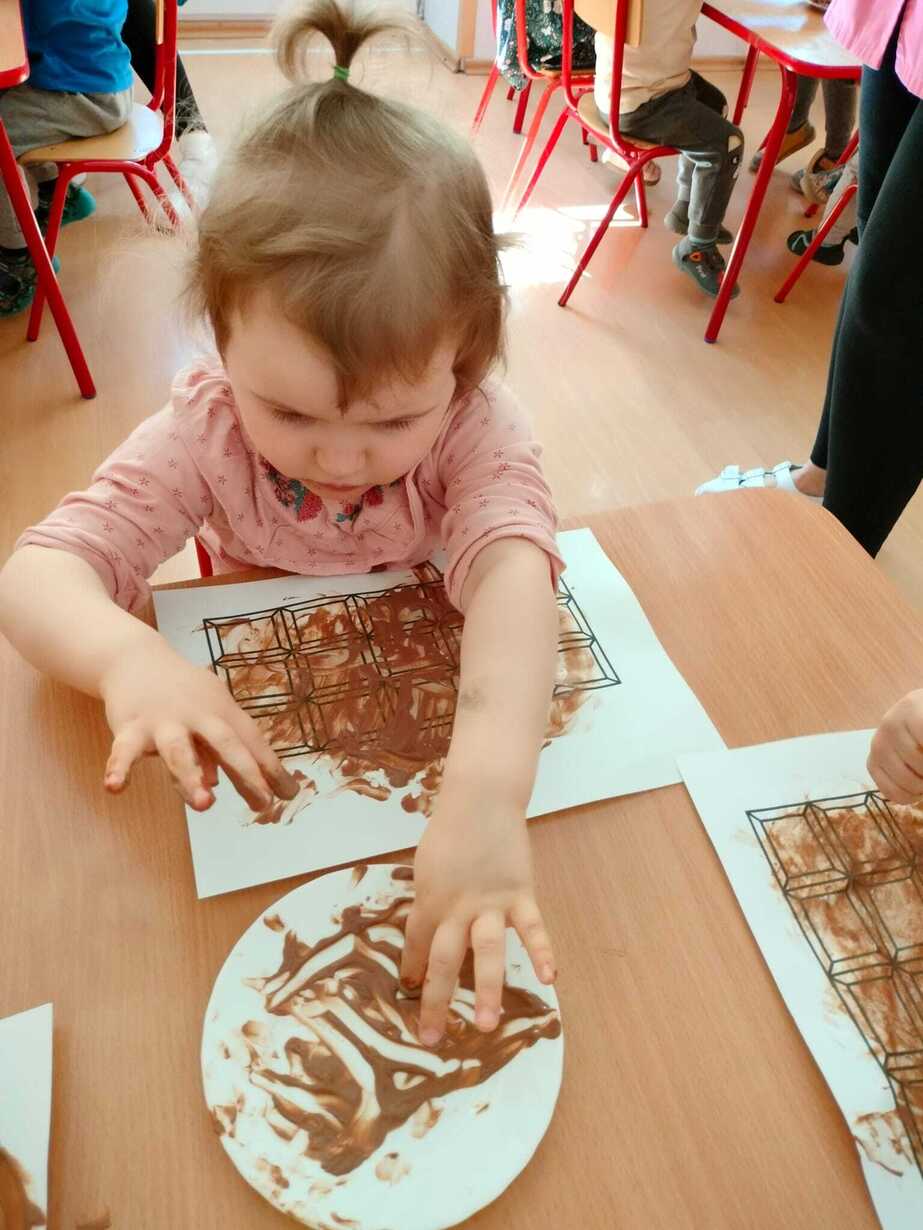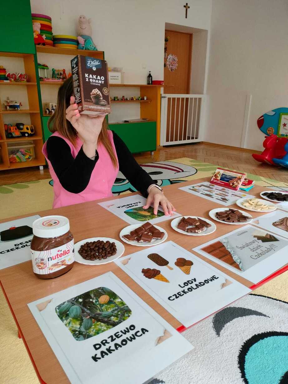 12 kwietnia Misie obchodziły najsłodszy dzień w roku DZIEŃ CZEKOLADY. A zaczeło się od pysznej kanapki z kremem czekoladowym na śniadanie. Później dzieci dowiedziały się jak powstaje i jakie są jej rodzaje .Na końcu wspólnie wykonaliśmy masę czekoladową z jogurtu i kakao, którą pomalowały paluszkami szablon tabliczki czekolady.