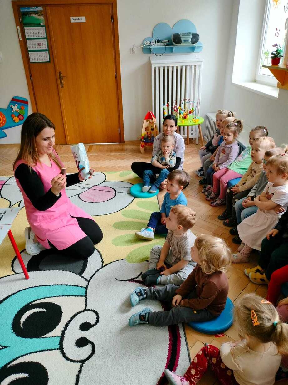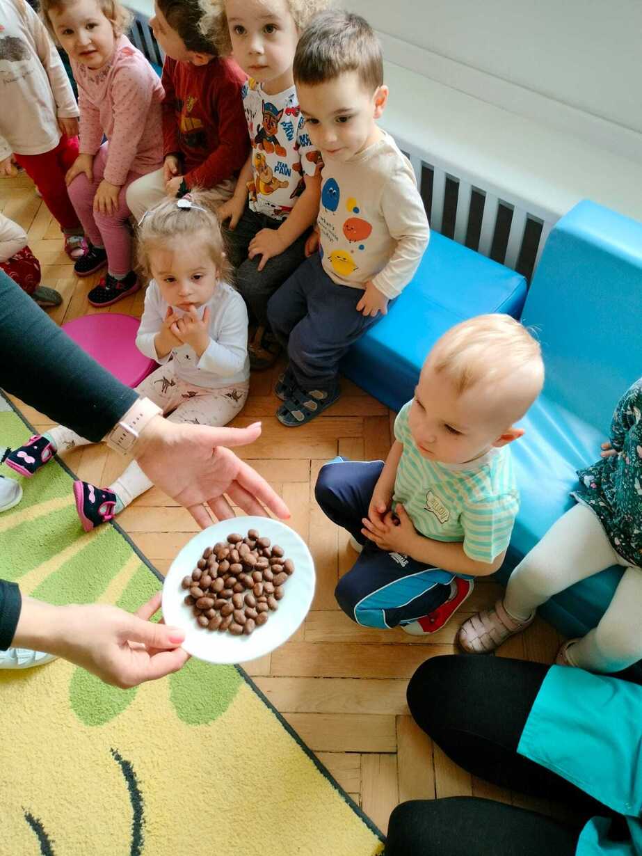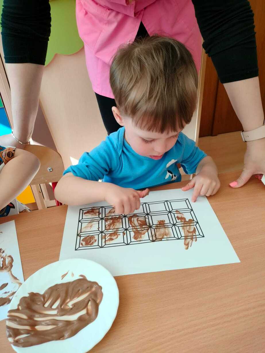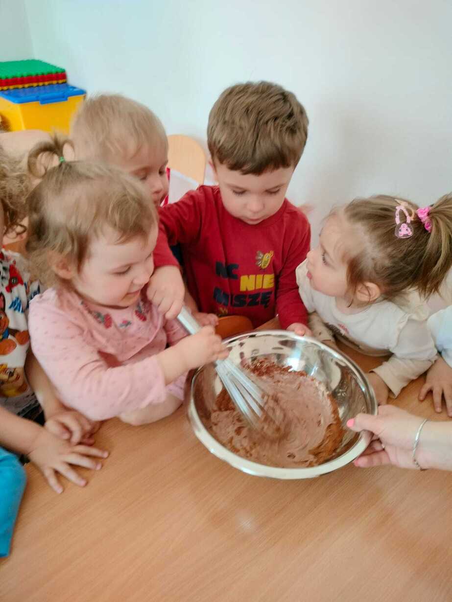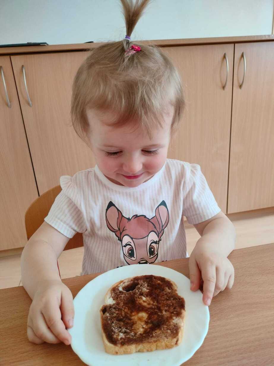 12 kwietnia Misie obchodziły najsłodszy dzień w roku DZIEŃ CZEKOLADY. A zaczeło się od pysznej kanapki z kremem czekoladowym na śniadanie. Później dzieci dowiedziały się jak powstaje i jakie są jej rodzaje .Na końcu wspólnie wykonaliśmy masę czekoladową z jogurtu i kakao, którą pomalowały paluszkami szablon tabliczki czekolady.