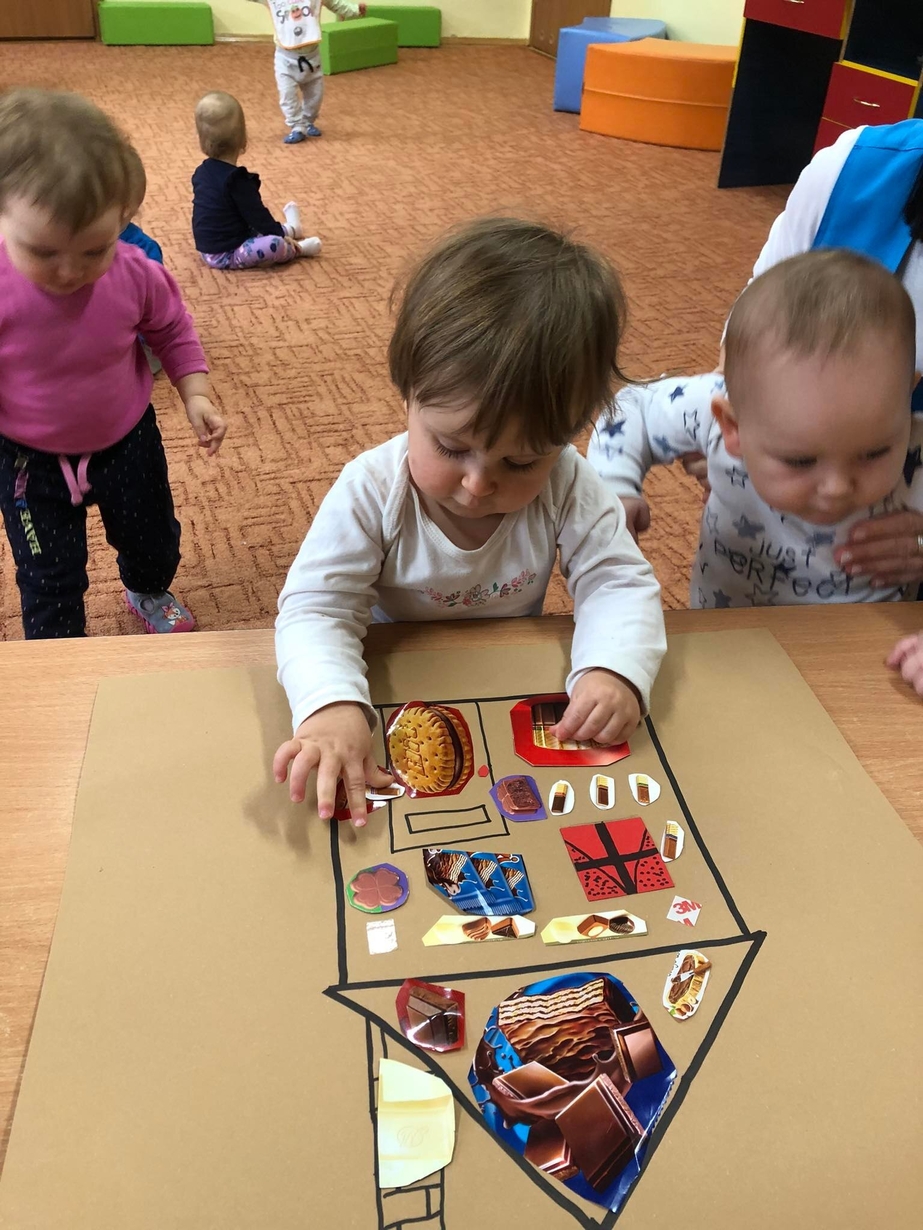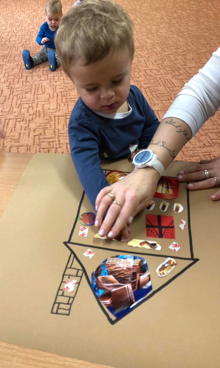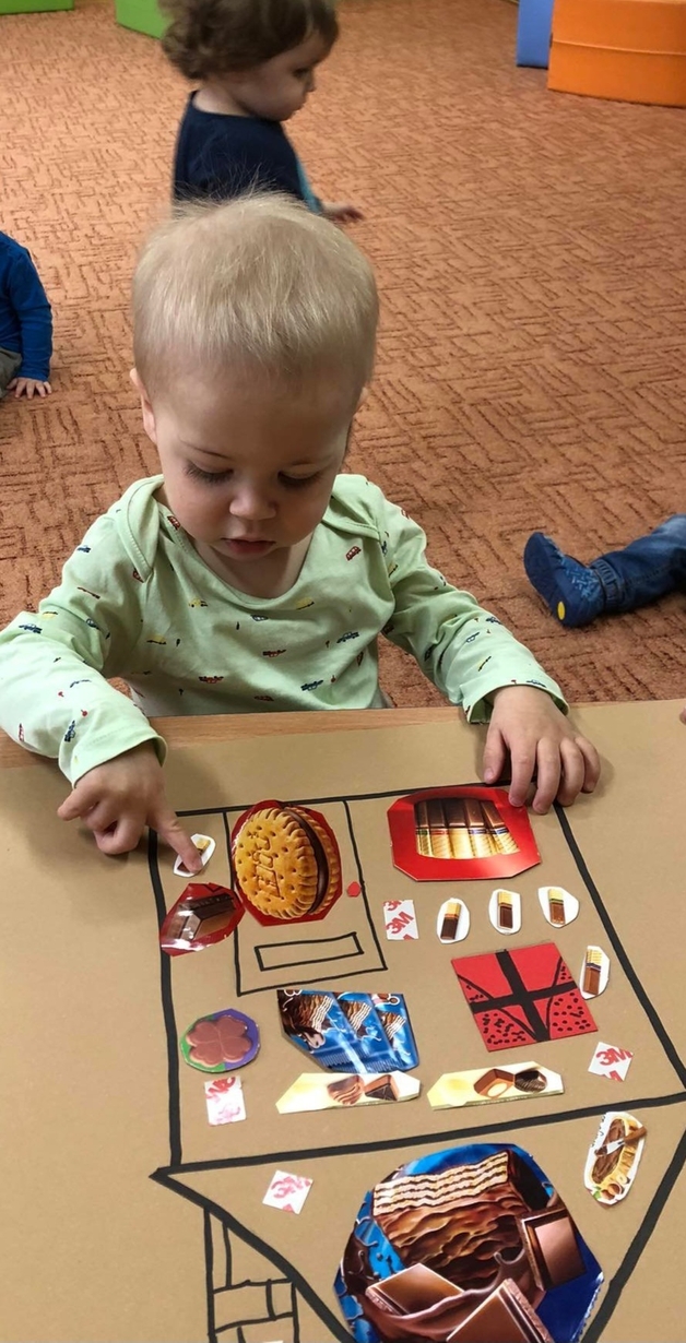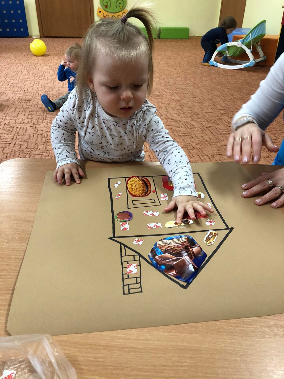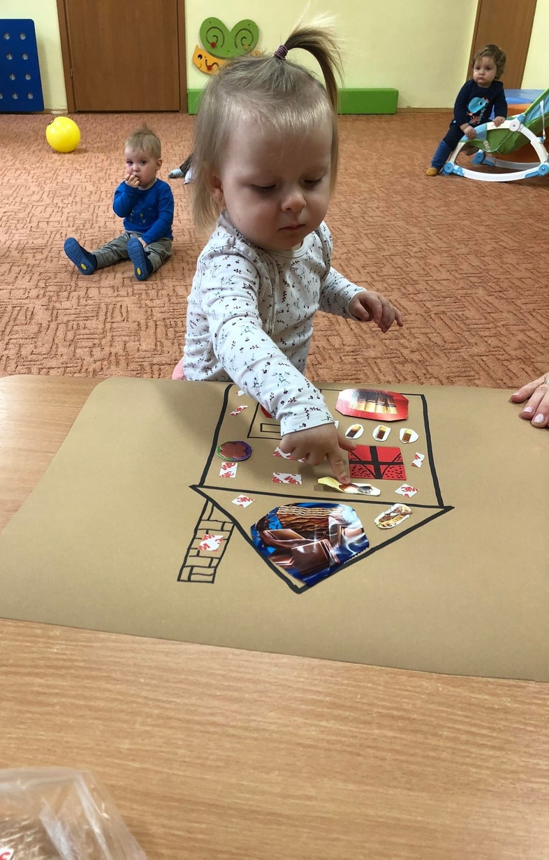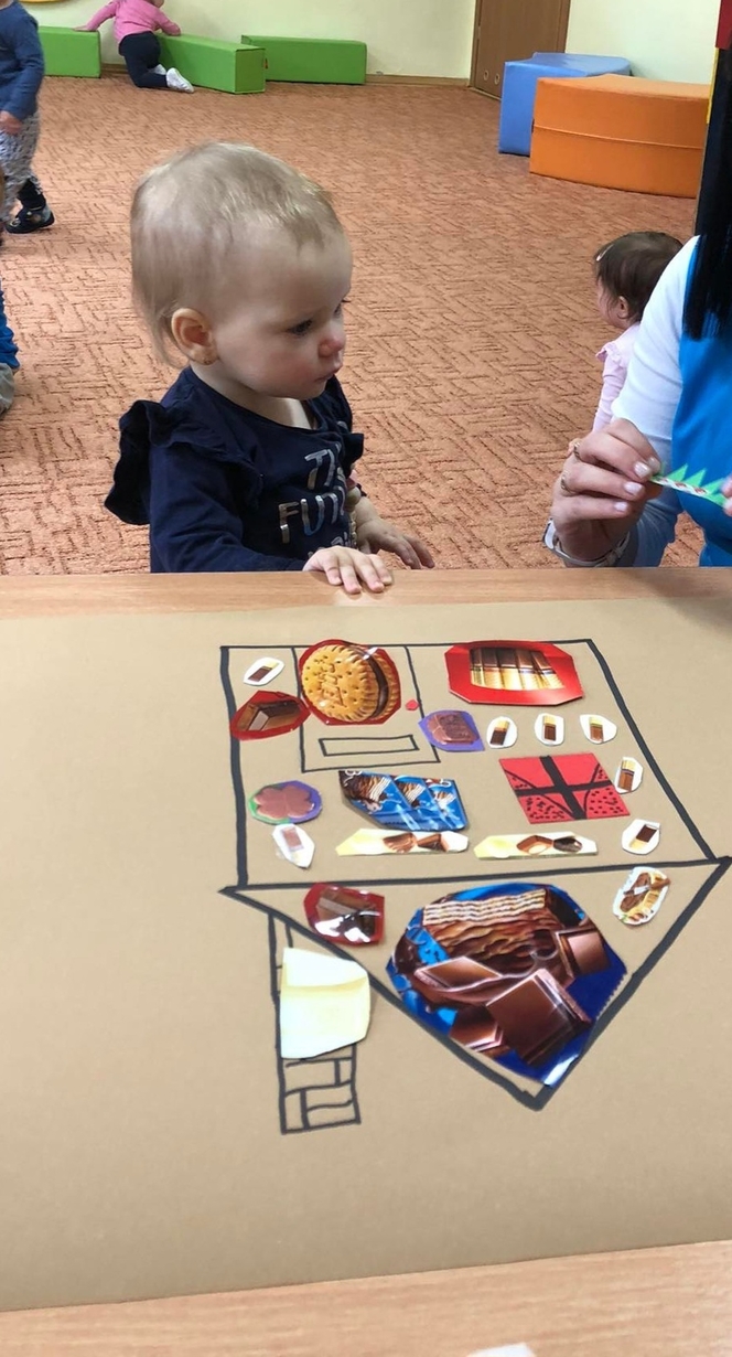 Na grupie biedronek postanowiliśmy troszkę inaczej obchodzić DZIEŃ CZEKOLADY . Dbając o ząbki naszych maluszków zamiast czekoladki zabawiliśmy się w dekorowanie domku kolorowymi papierkami po czekoladkach.