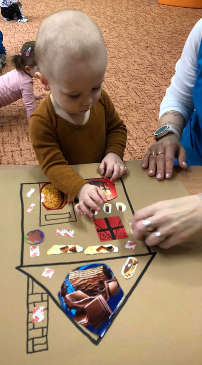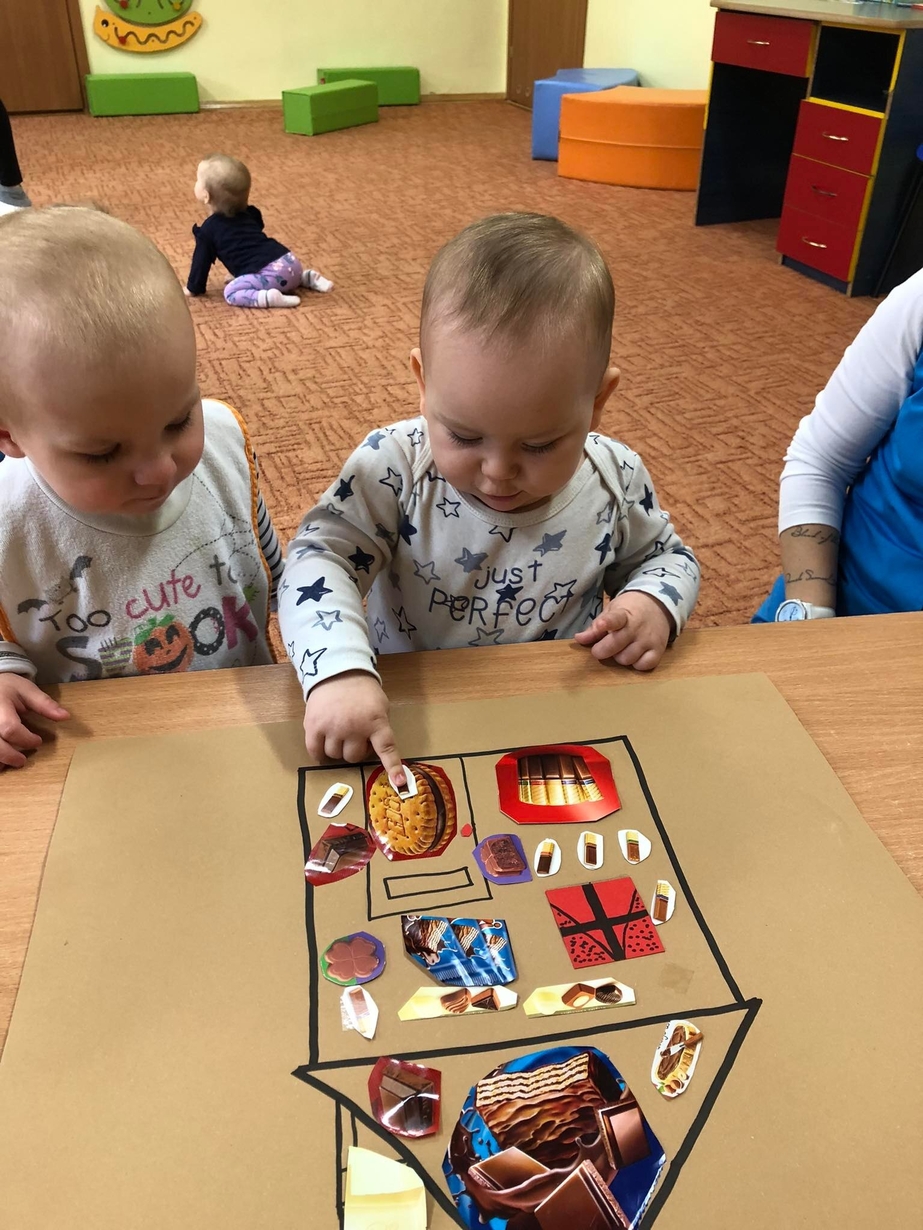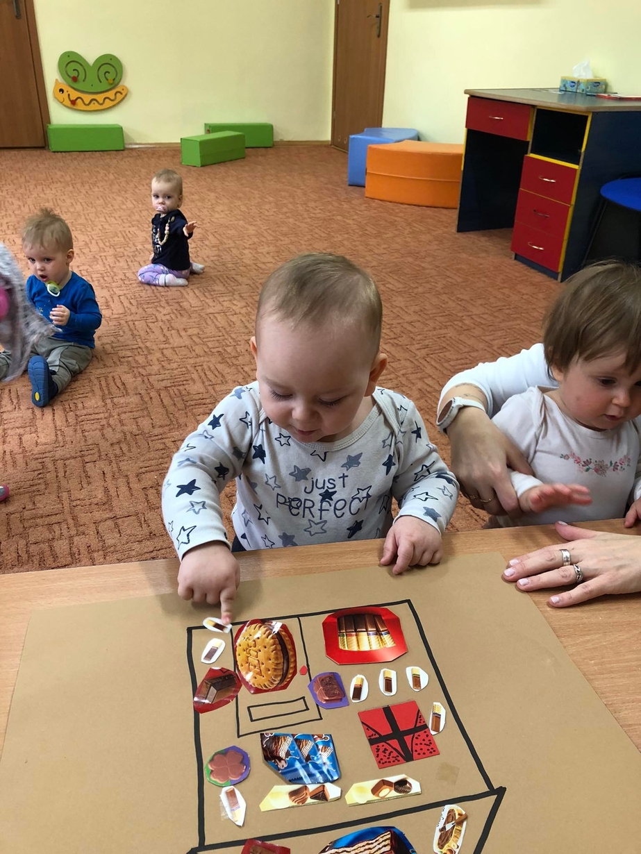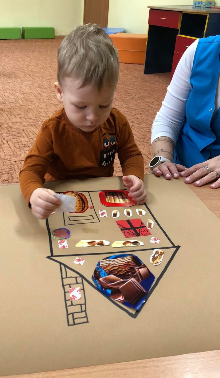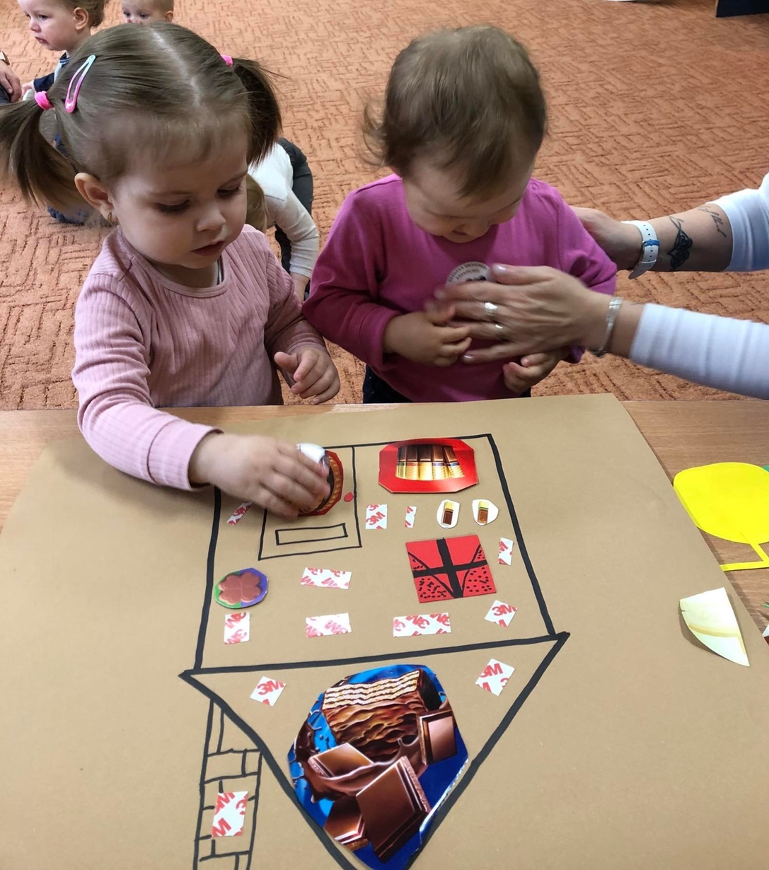 Na grupie biedronek postanowiliśmy troszkę inaczej obchodzić DZIEŃ CZEKOLADY . Dbając o ząbki naszych maluszków zamiast czekoladki zabawiliśmy się w dekorowanie domku kolorowymi papierkami po czekoladkach.