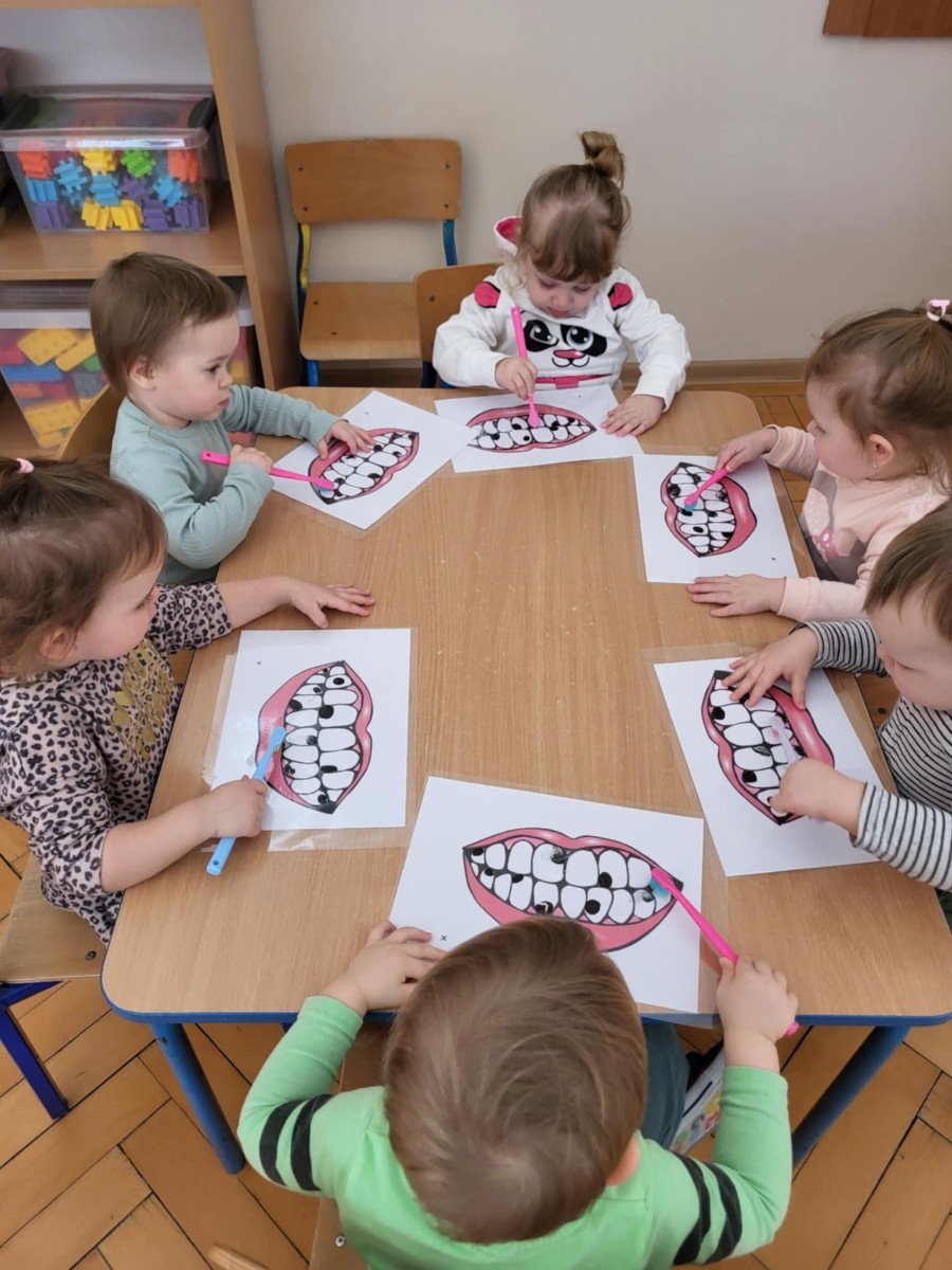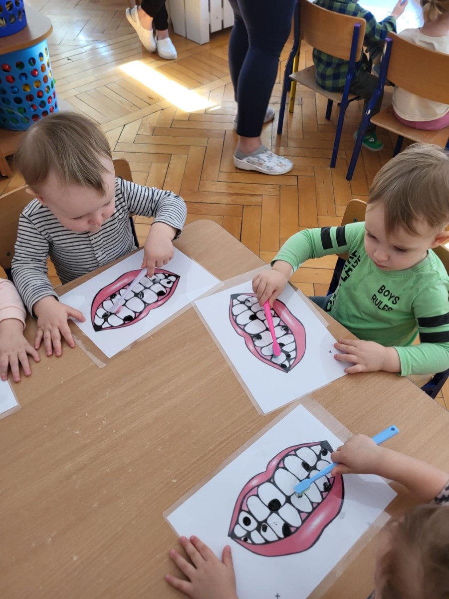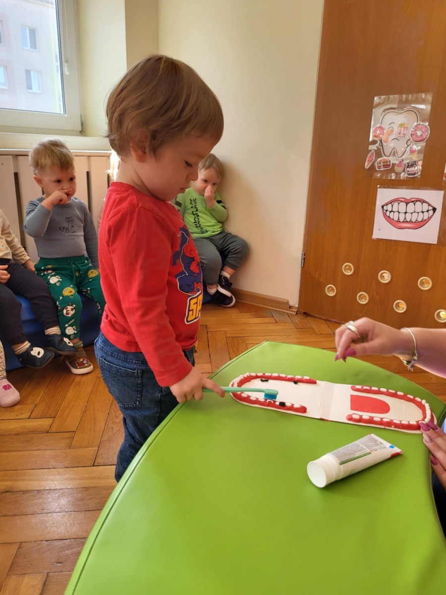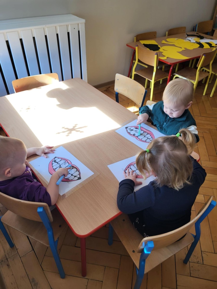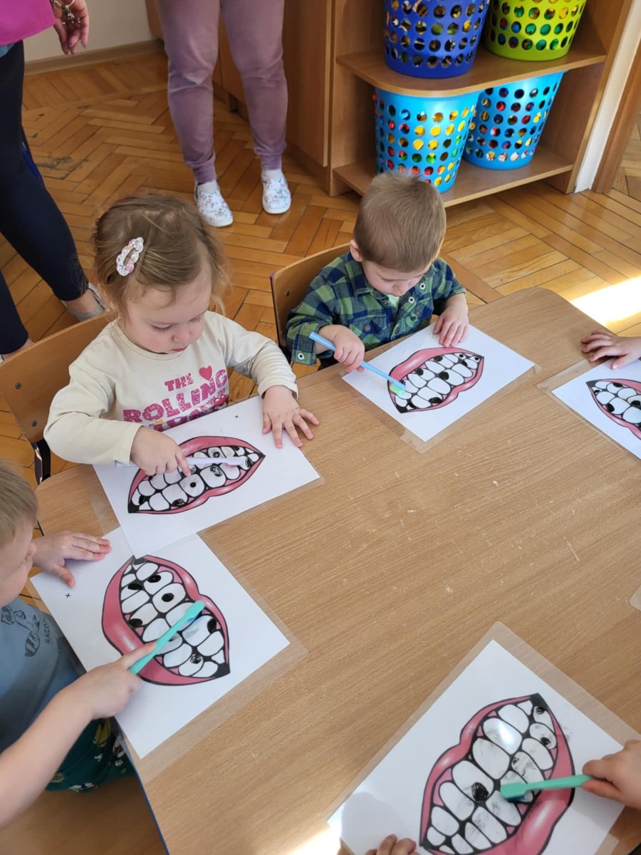 Zdjęcia przedstawiają dzieci podczas zajęć z okazji dnia dentysty
