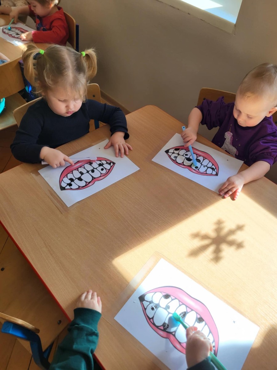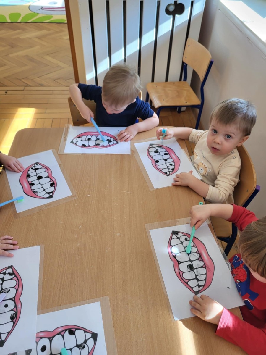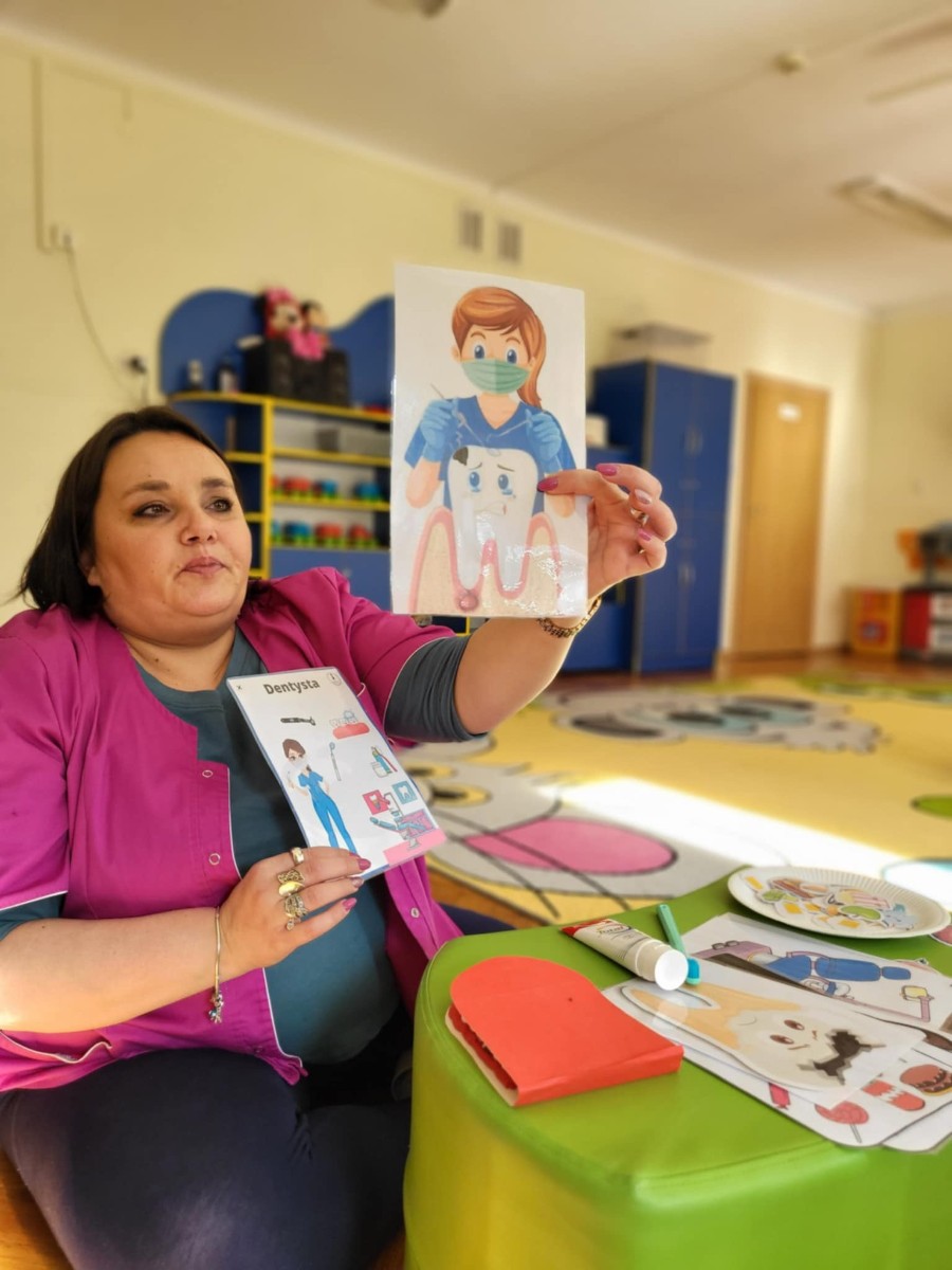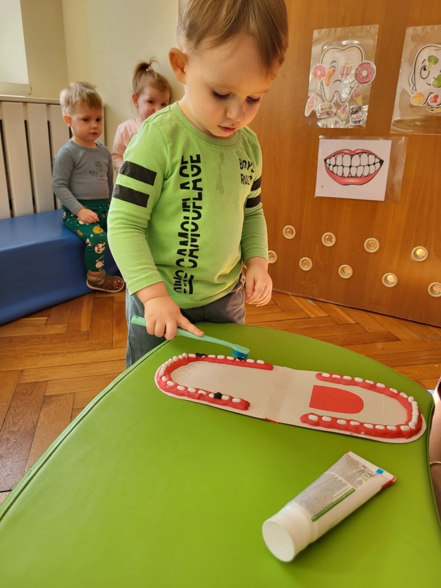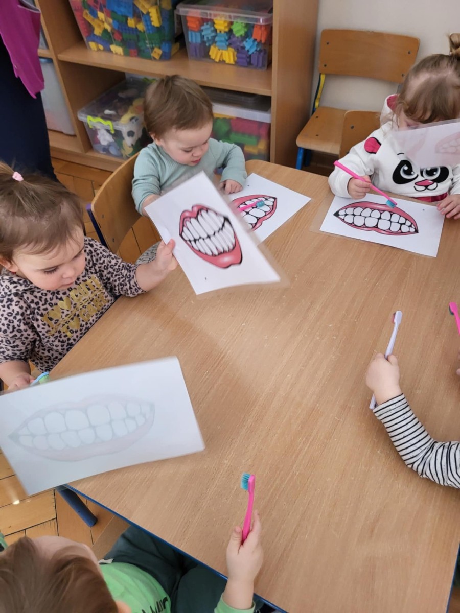 Zdjęcia przedstawiają dzieci podczas zajęć z okazji dnia dentysty