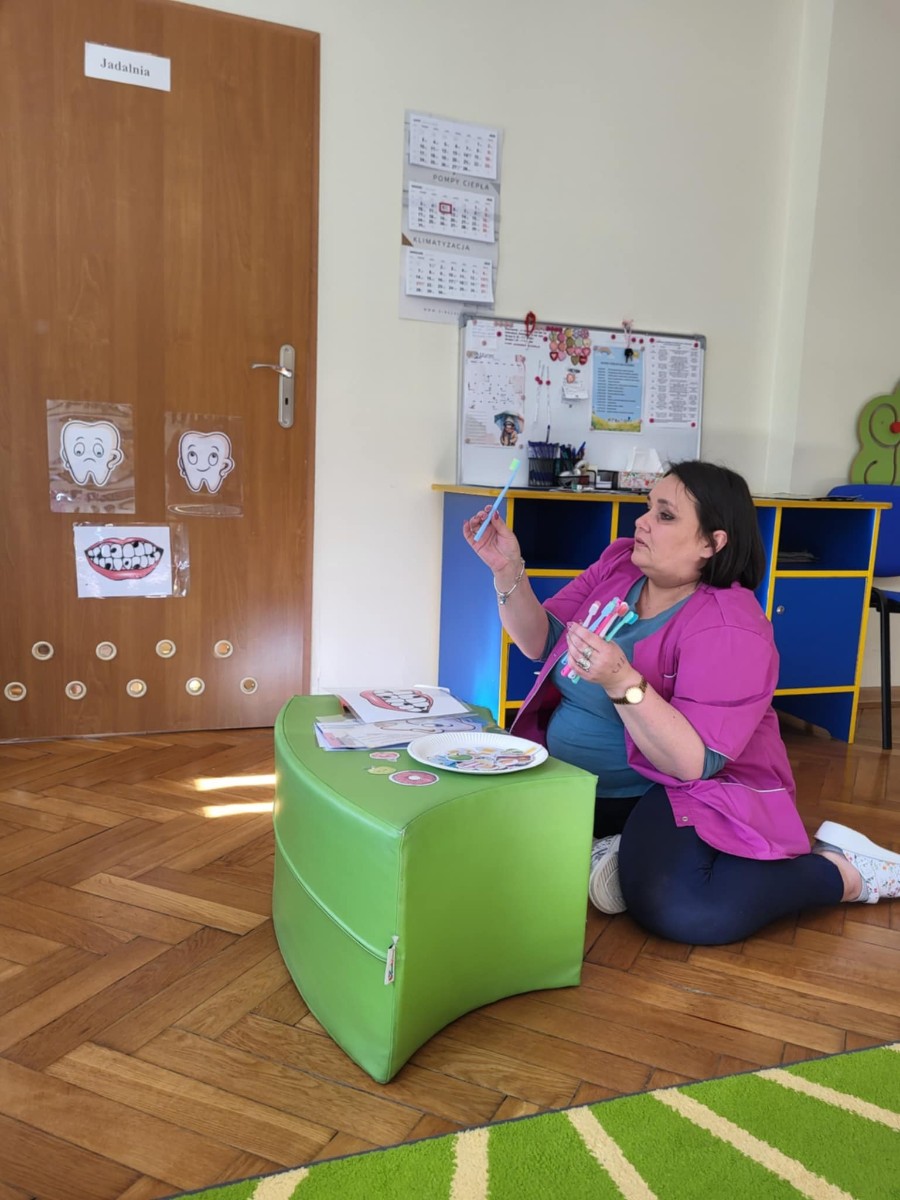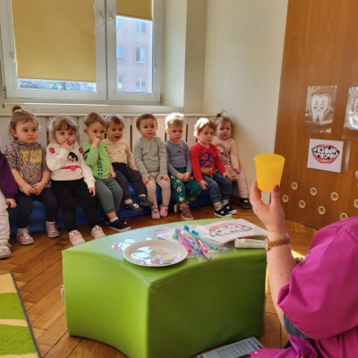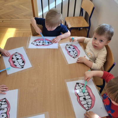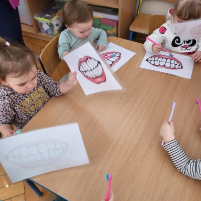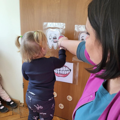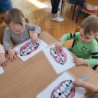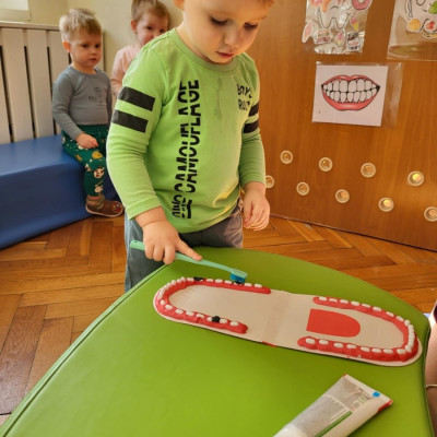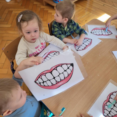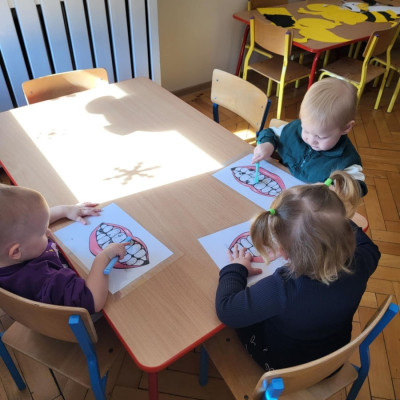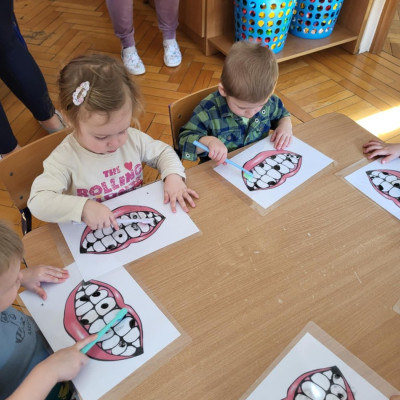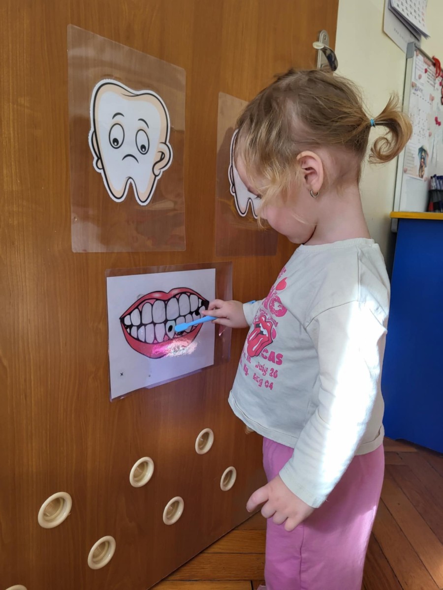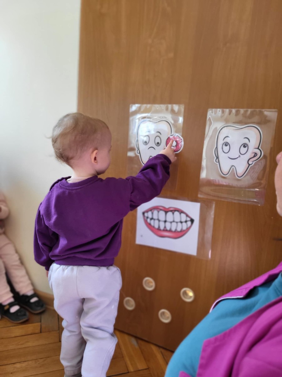 Zdjęcia przedstawiają dzieci podczas zajęć z okazji dnia dentysty