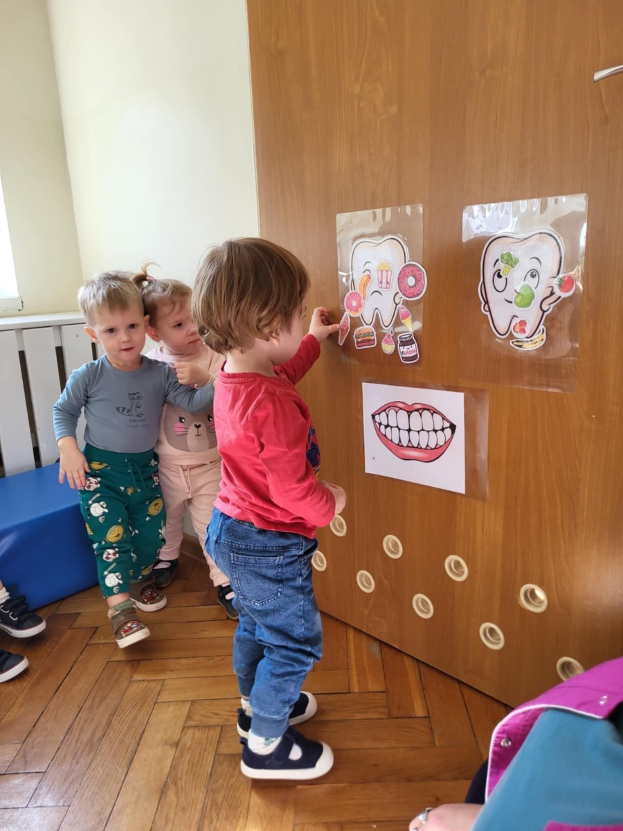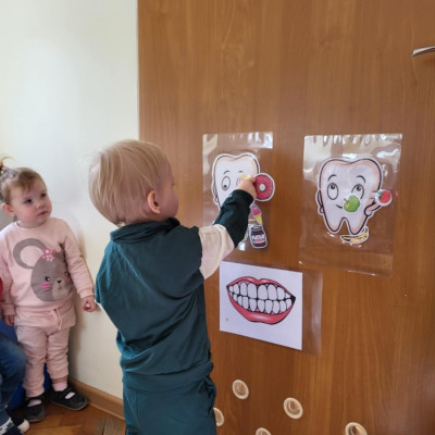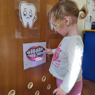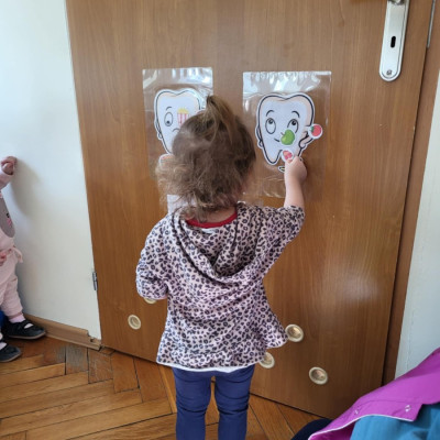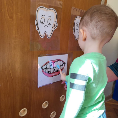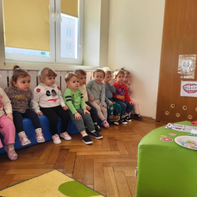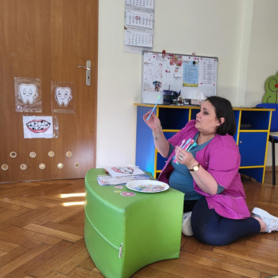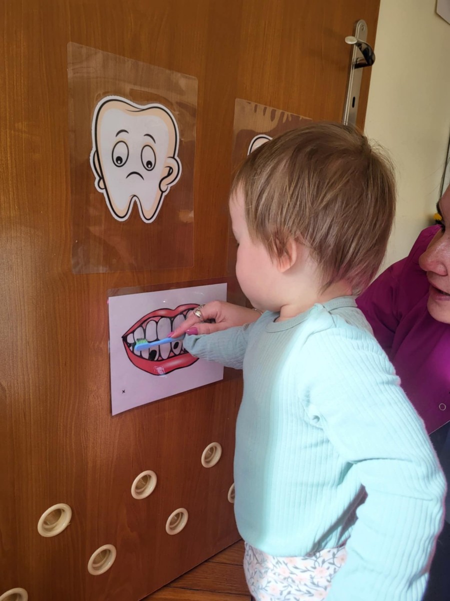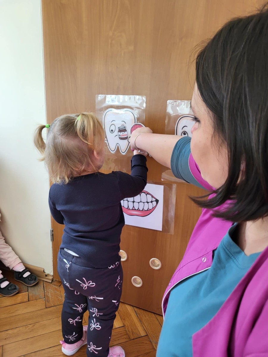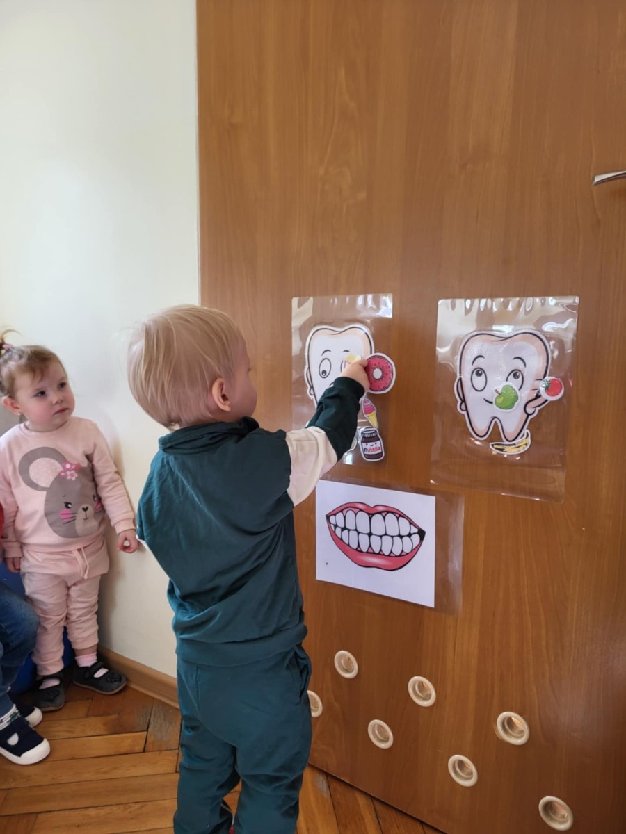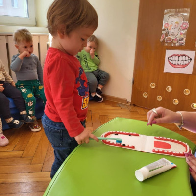 Zdjęcia przedstawiają dzieci podczas zajęć z okazji dnia dentysty
