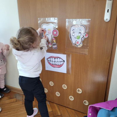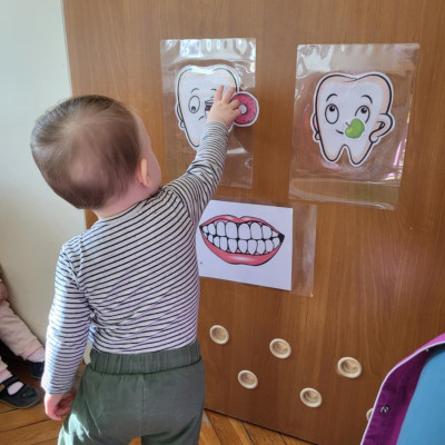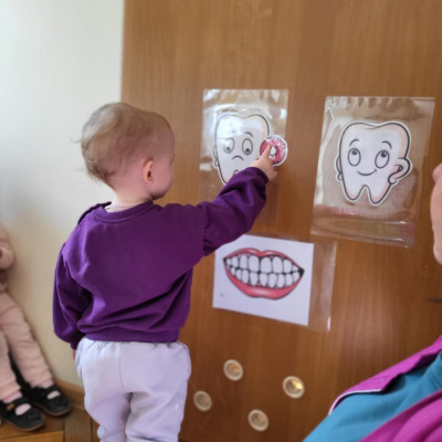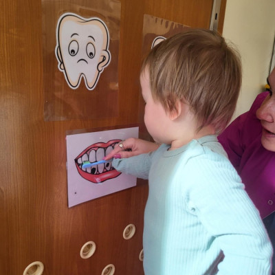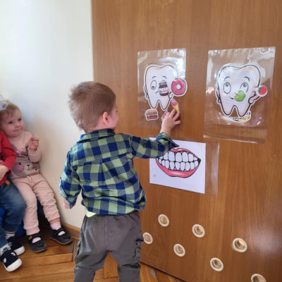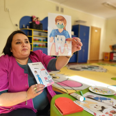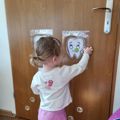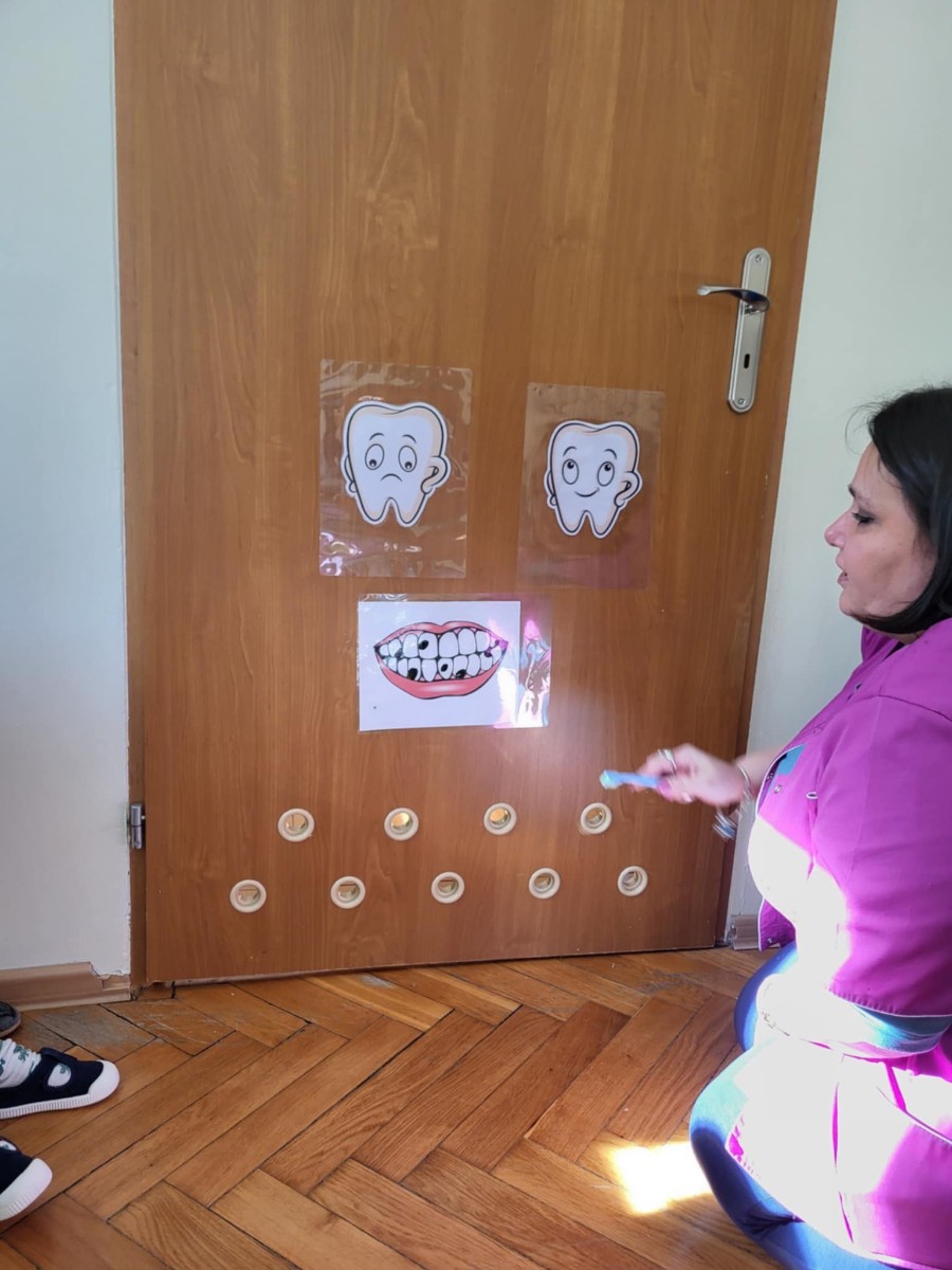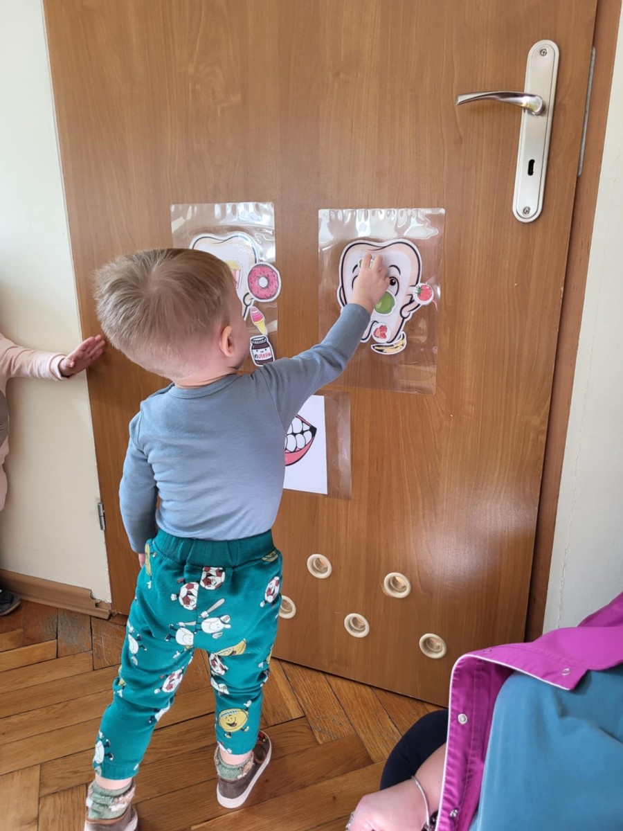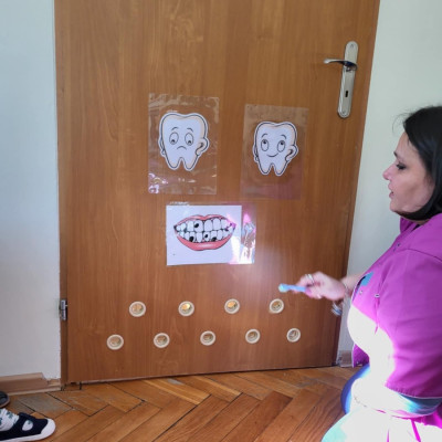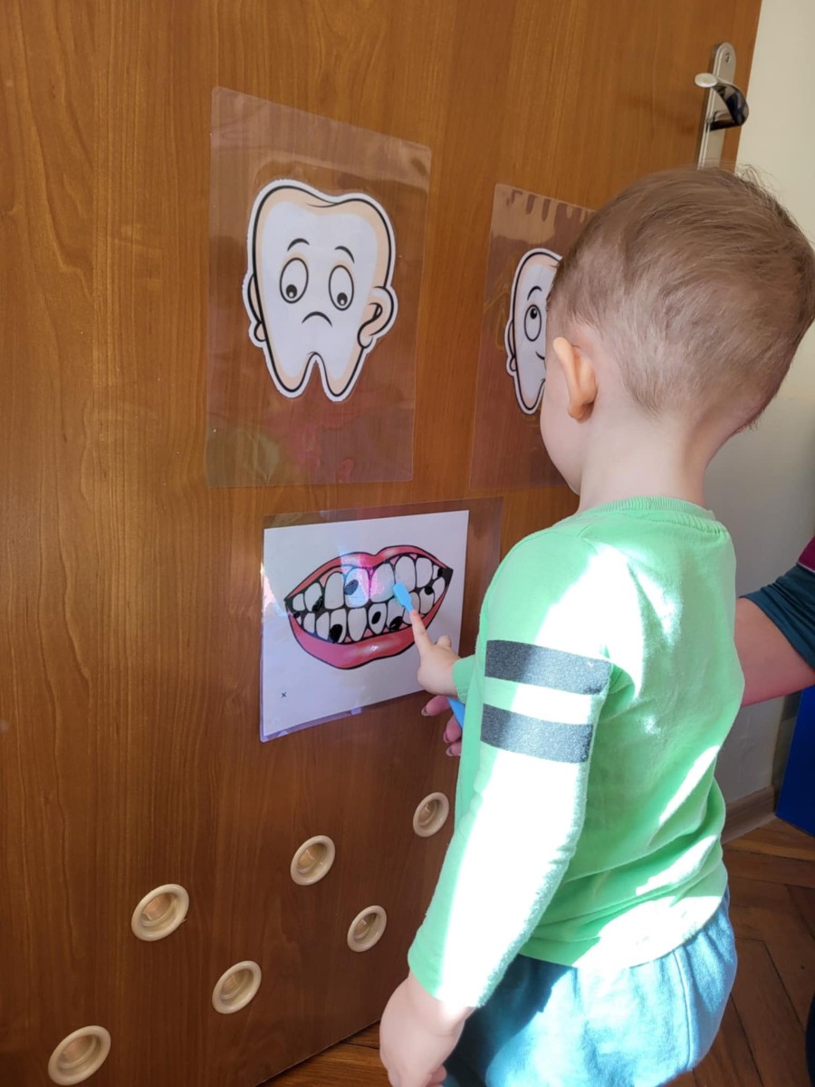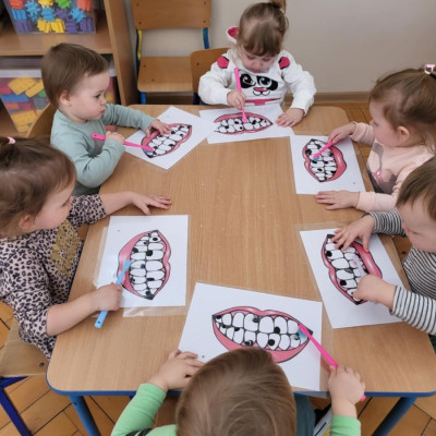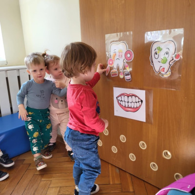 Zdjęcia przedstawiają dzieci podczas zajęć z okazji dnia dentysty