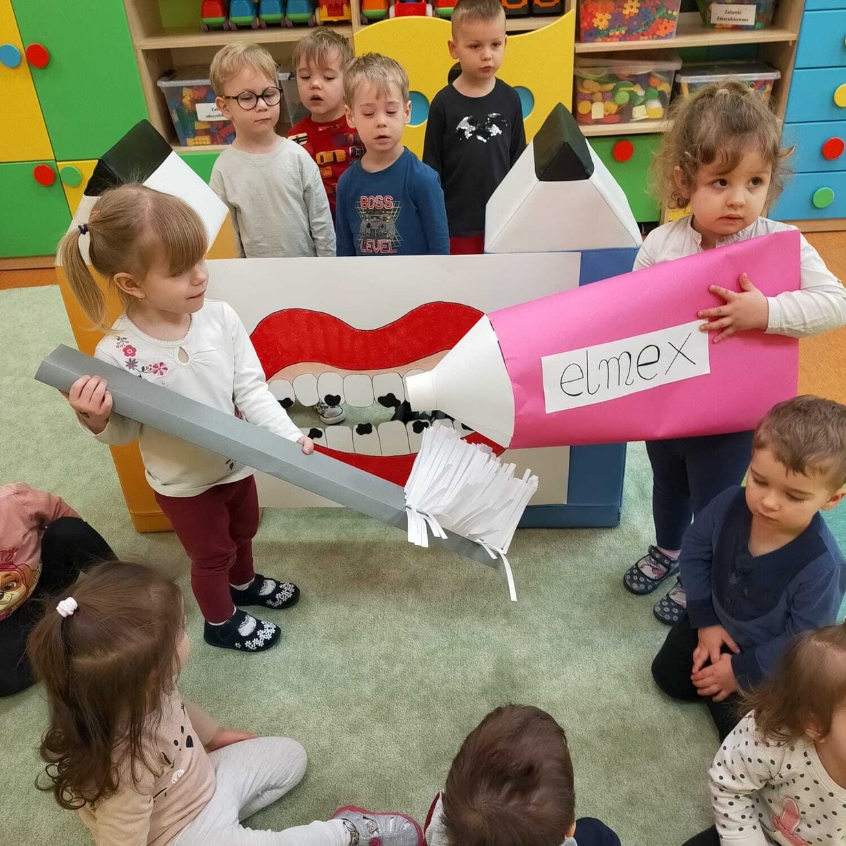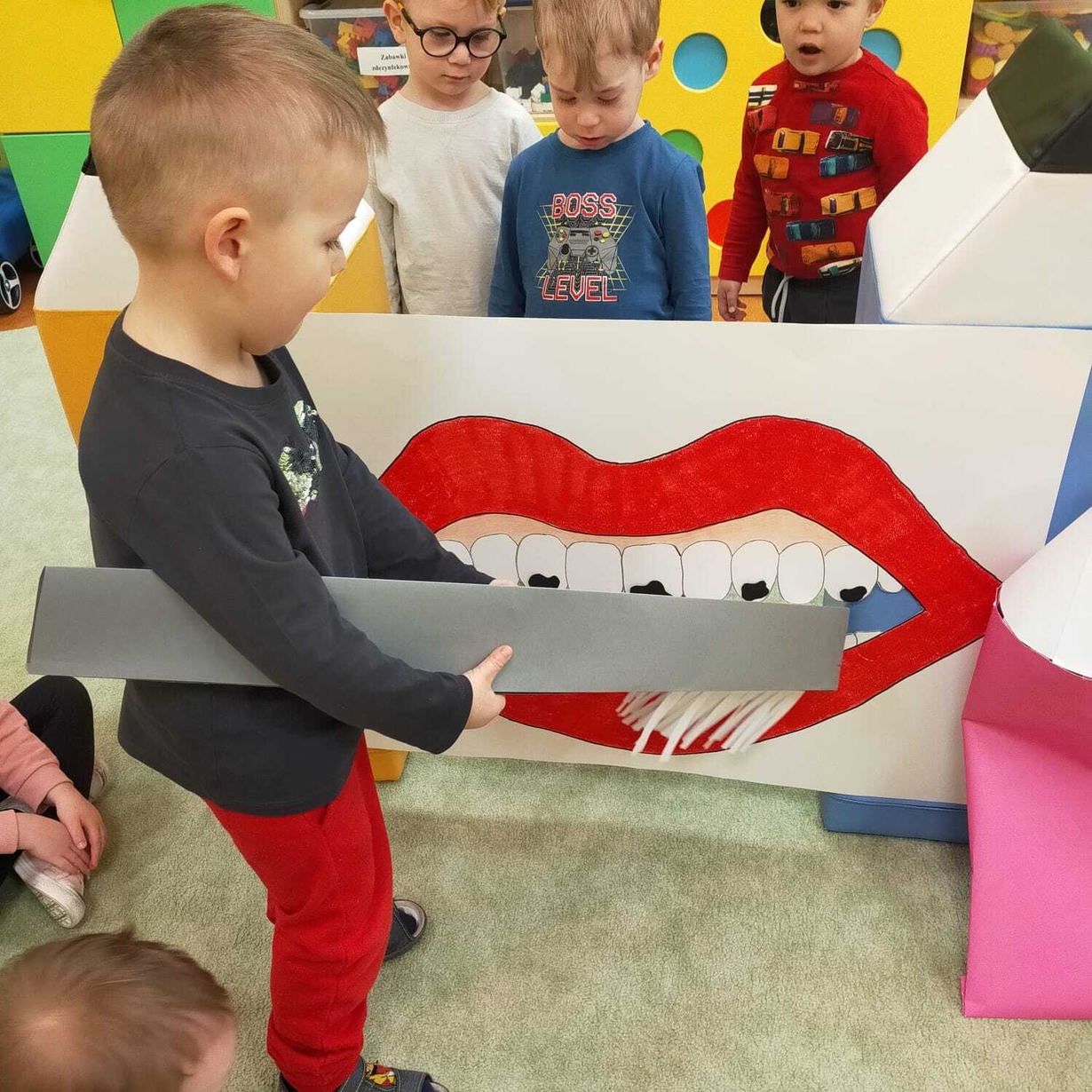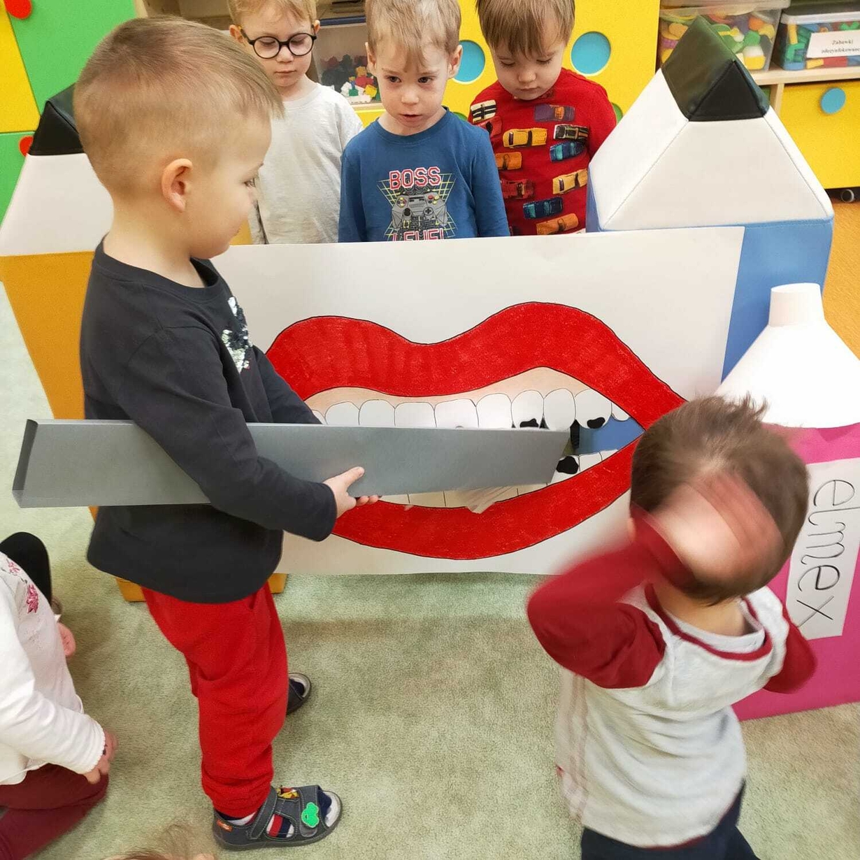Dnia 3 marca obchodzimy "Dzień Dentysty". Dzieci z grupy Rybek miały okazję dowiedzieć się dziś, jak dbać o higienę jamy ustnej, tak aby ząbki były zawsze zdrowe. Każdy mógł pochwalić się swoimi umiejętnościami praktycznymi, szczotkując ząbki na naszym plakacie. Na zakończenie zajęć każde dziecko "leczyło ząbka" białą plasteliną oraz watą. Dzień ten przyniósł dzieciom wiele radości i wywołał uśmiech na ich twarzach.