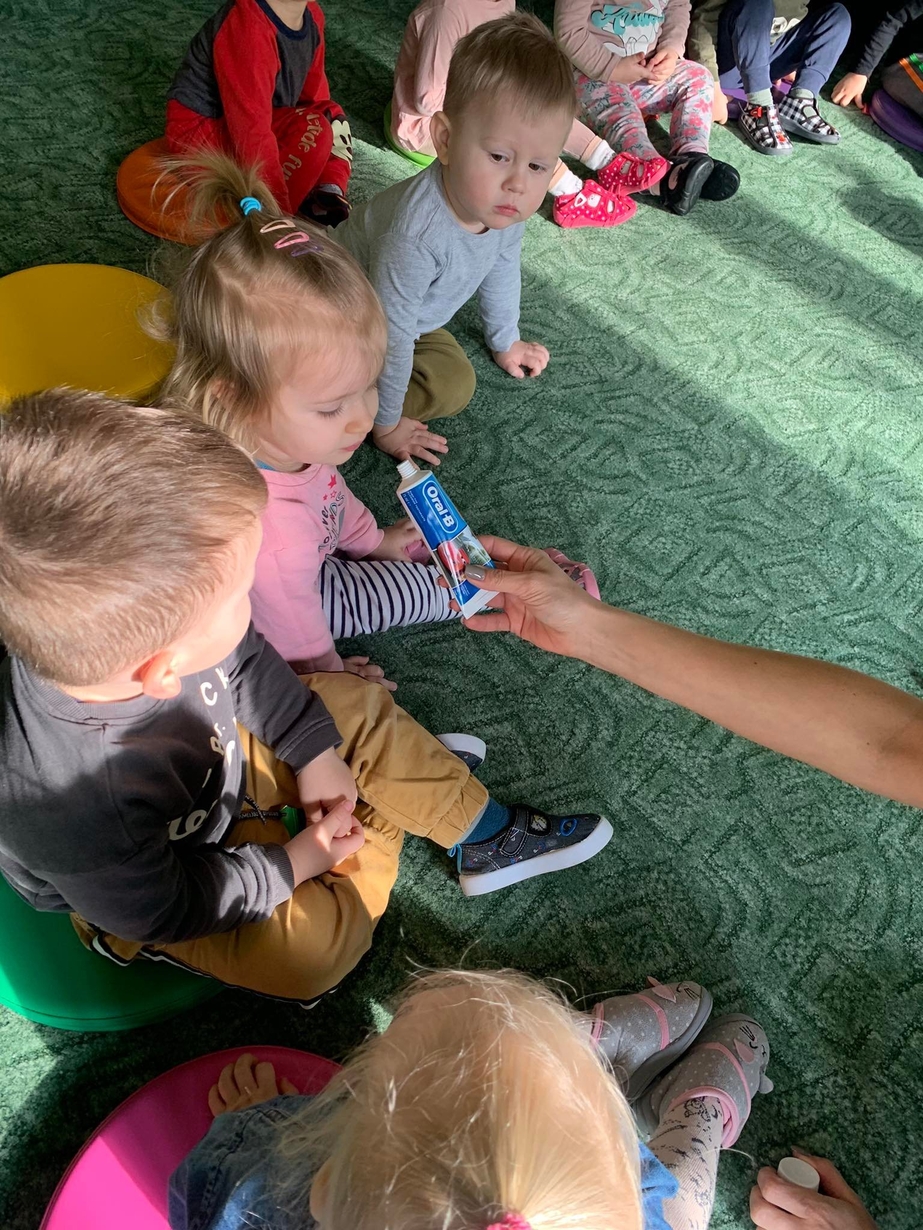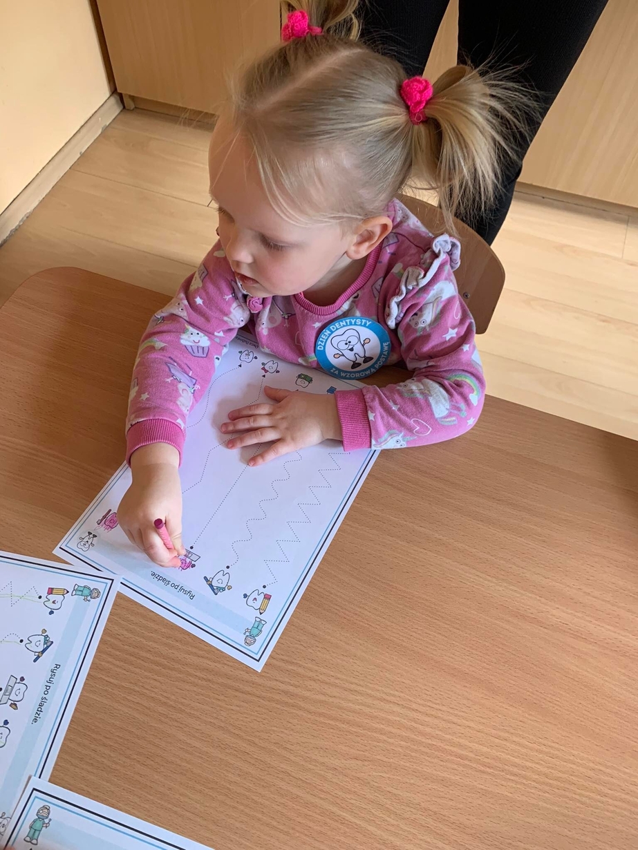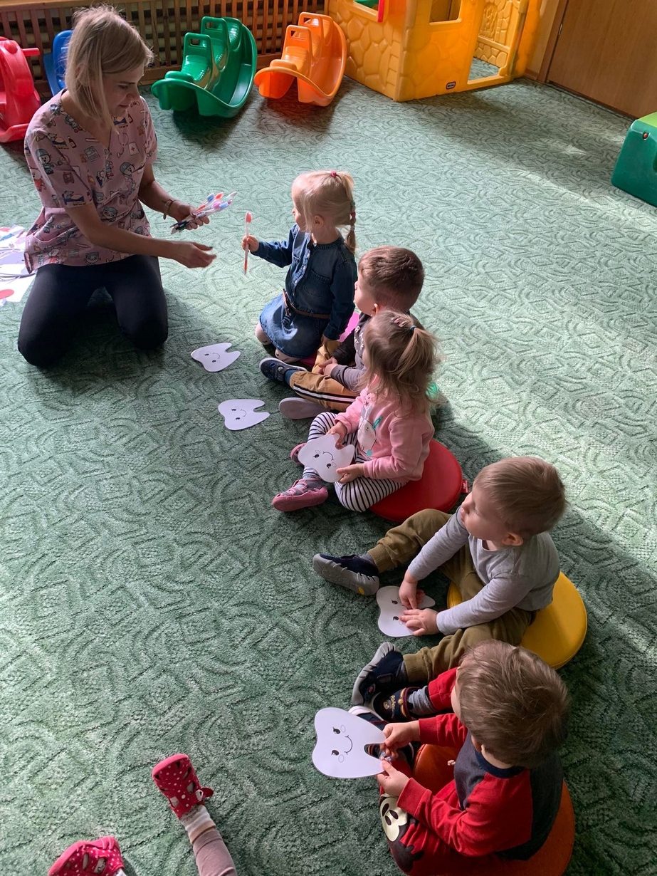 Dnia 5 marca obchodzony jest Dzień Dentysty?. Maluszki w poniedziałek miały okazję dowiedzieć się jak dać o higienę jamy ustnej, aby ząbki były zdrowe, a ich uśmiech błyszczał czystością. Wraz z Kicią Kocią dzieci poznały zawód dentysty. Wszystkie Misie mogły wykazać się umiejętnościami praktycznymi szczotkując zęby grupowemu hipopotamowi Felusiowi. Poznaliśmy przybory niezbędne do utrzymania czystości jamy ustnej??. Dzieci dowiedziały się również co warto zjadać, aby ich ząbki były mocne i zdrowe. Nauczyliśmy się również piosenki o myciu zębów, która bardzo spodobała się naszym Misiom. Wróżka zębuszka na zakończenie wspólnych zabaw wręczyła każdemu uczestnikowi pamiątkowy medal "przyjaciela zdrowych ząbków". Prowadzenie tego typu działań edukacyjnych ma na celu wdrożenie dzieci do codziennego szczotkowania ząbków???.