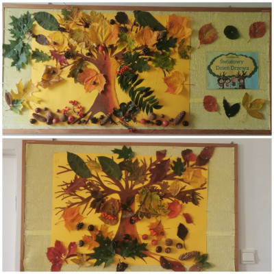 Światowy Dzień Drzewa obchodzony jest 10 października. Nasze Żabki w tym dniu przyniosły do żłobka dary jesieni, które na zajęciach z ciociami głośno nazywaliśmy i opisywaliśmy. Następnie wspólnymi siłami wykonaliśmy piękne prace przedstawiające potężne drzewo, które zgromadziło owe symbole jesieni, jak np. kasztany, liście, żołędzie, jarzebinę, itp. Zapraszamy do galerii zdjęć: