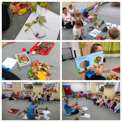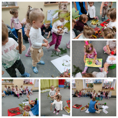 Zdjęcie przedstawia dzieci świętujące Dzień Drzewa.