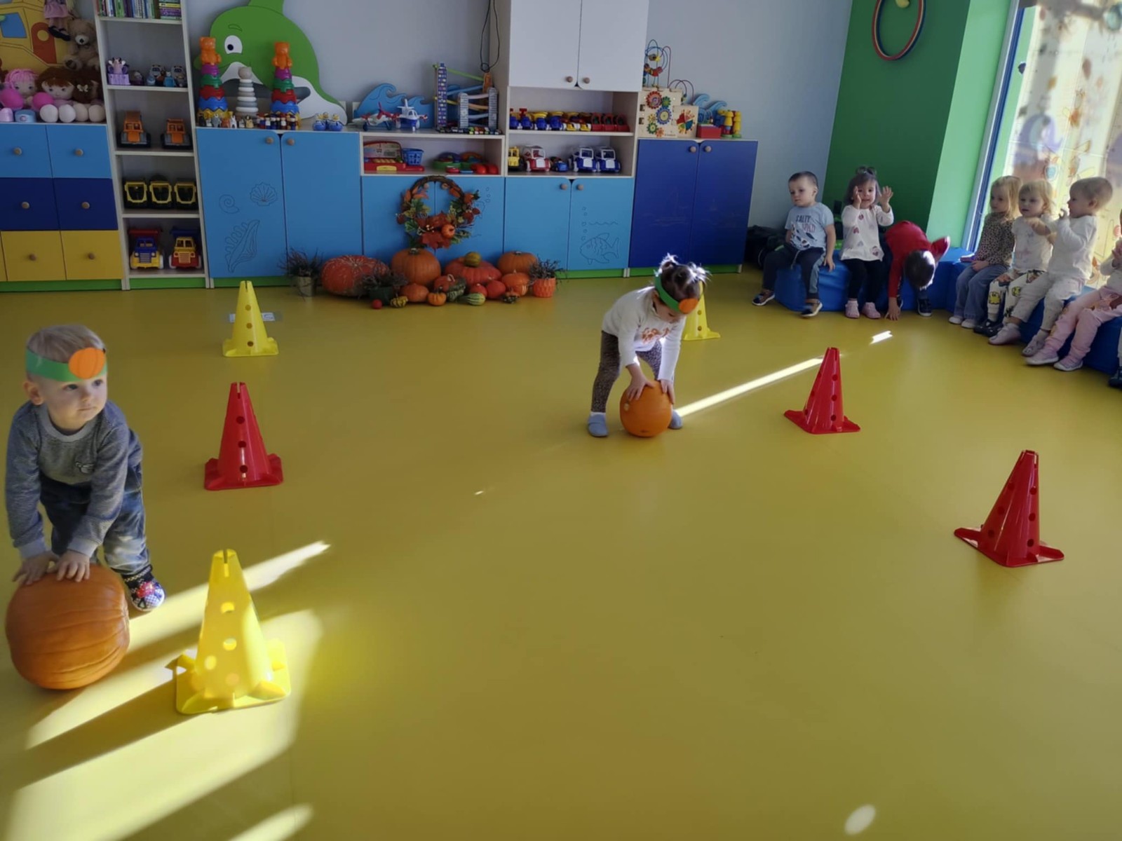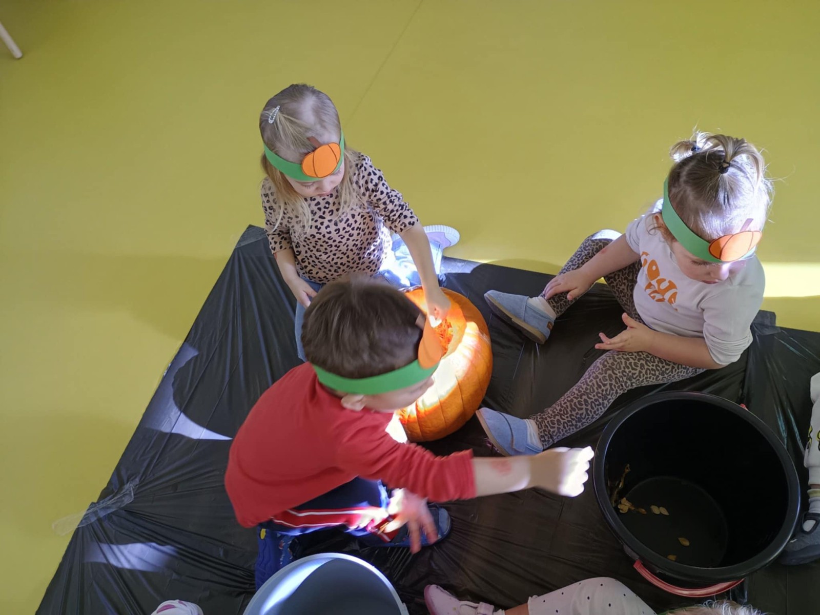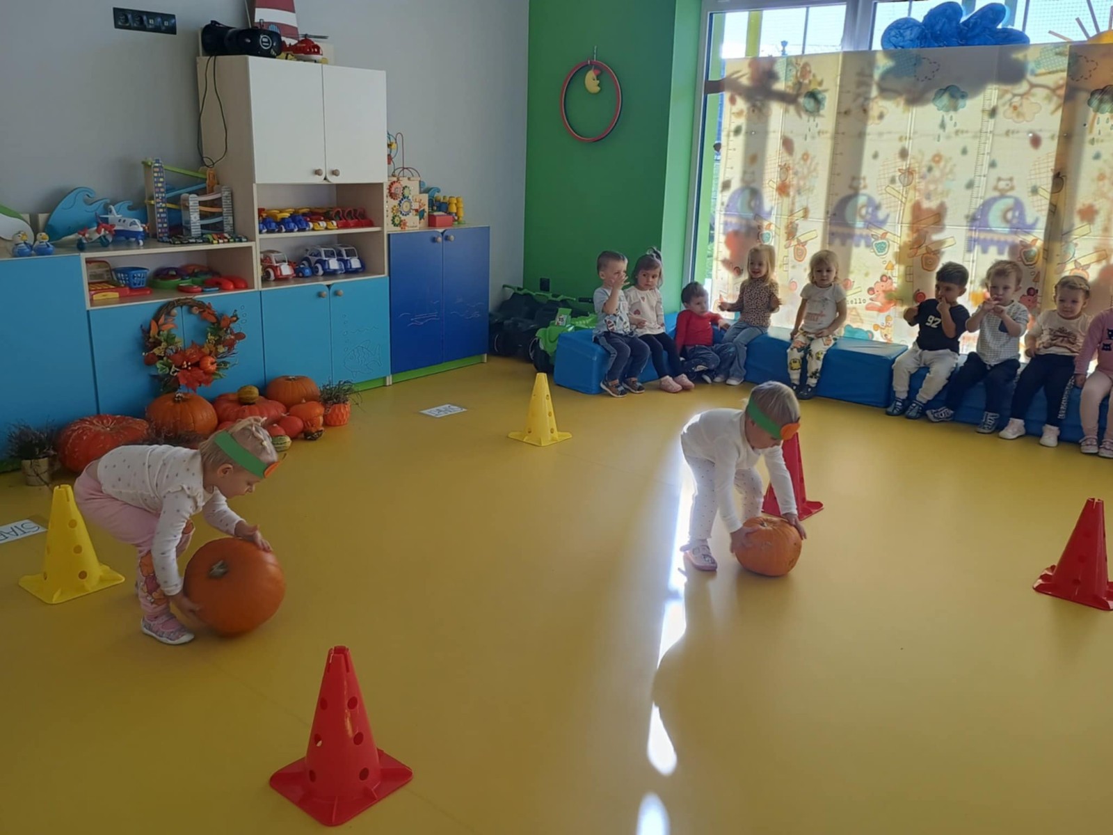 Zdjęcie przedstawia dzieci podczas zabaw z okazji święta dyni