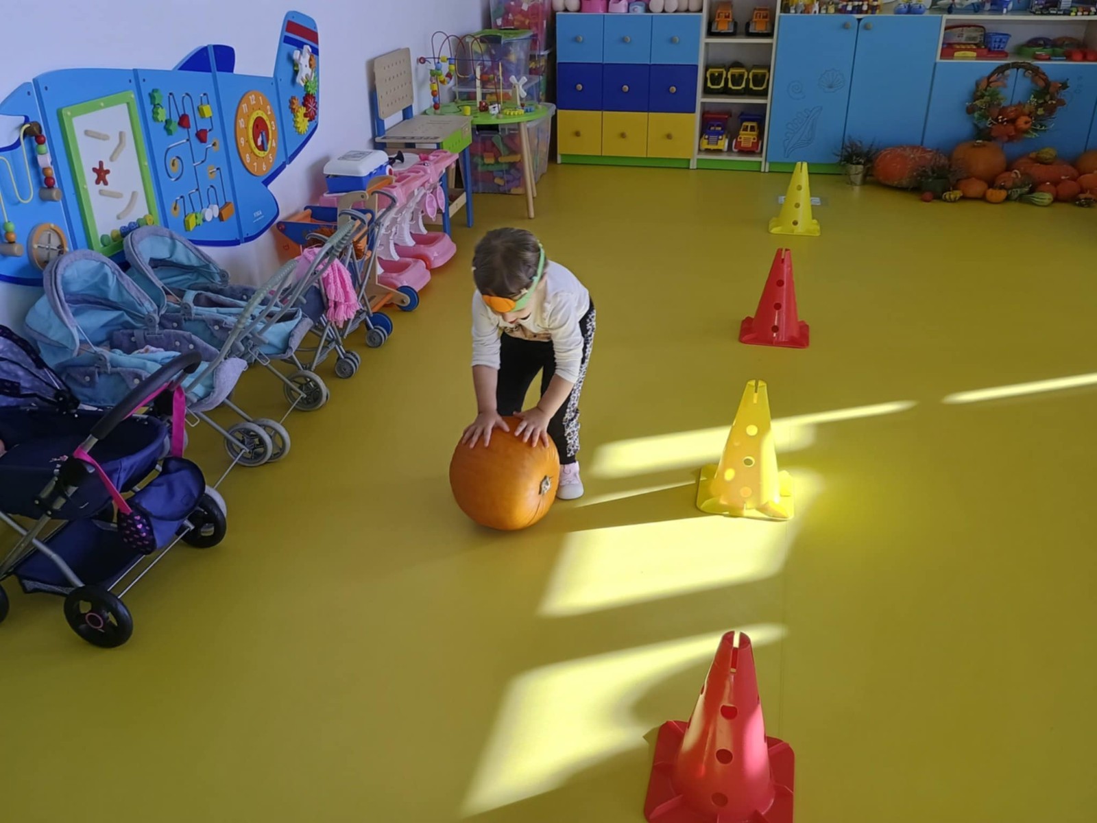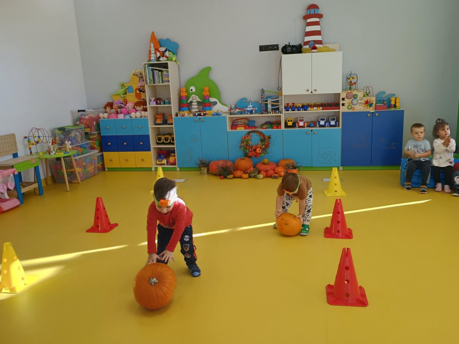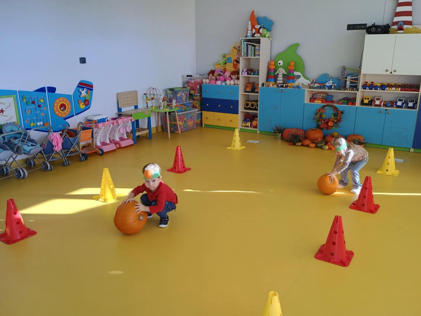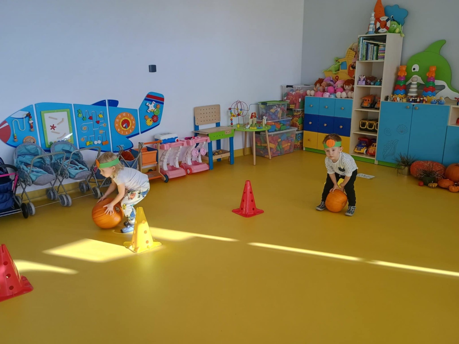 Zdjęcie przedstawia dzieci podczas zabaw z okazji święta dyni