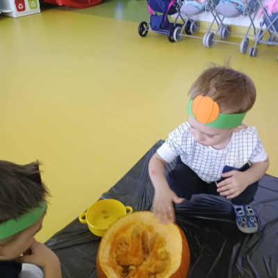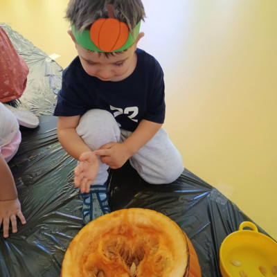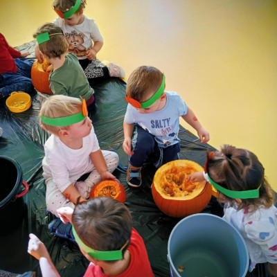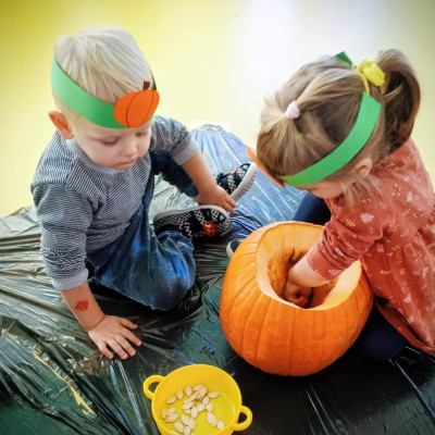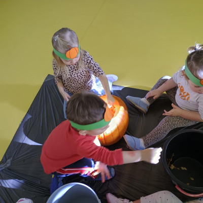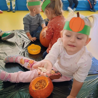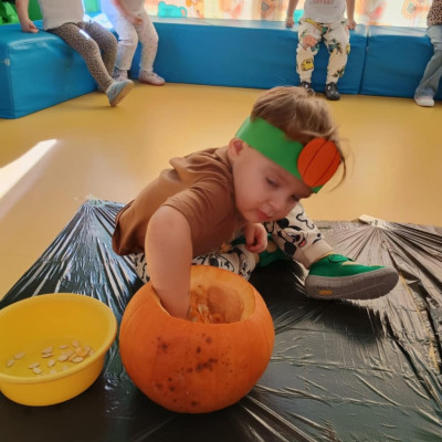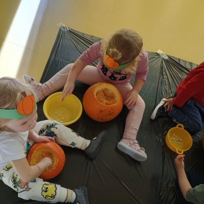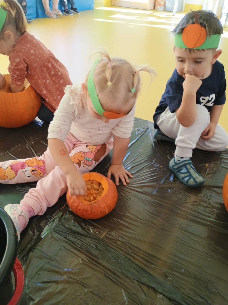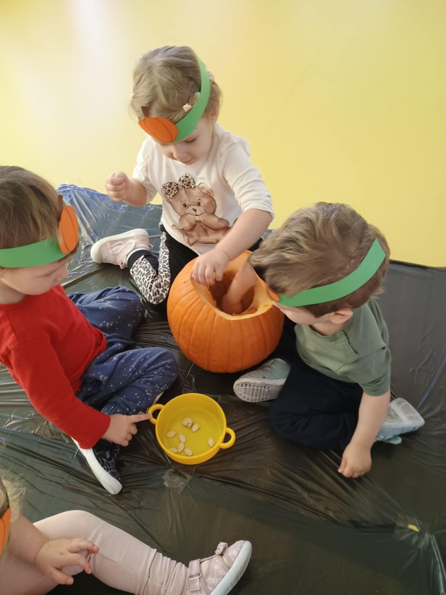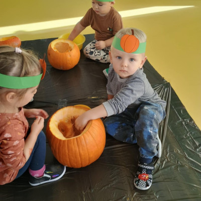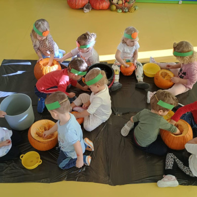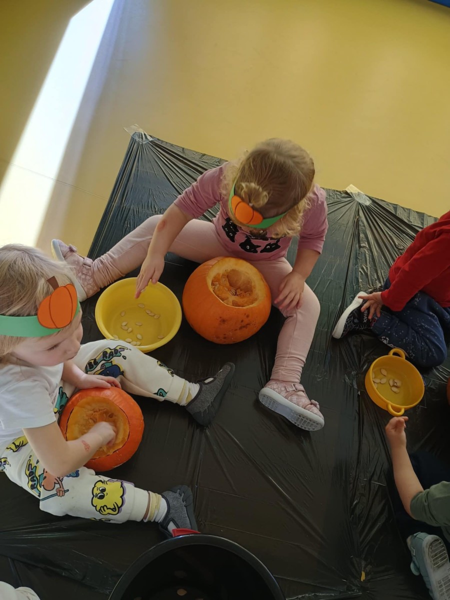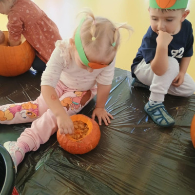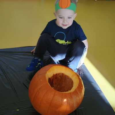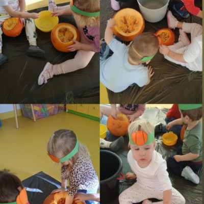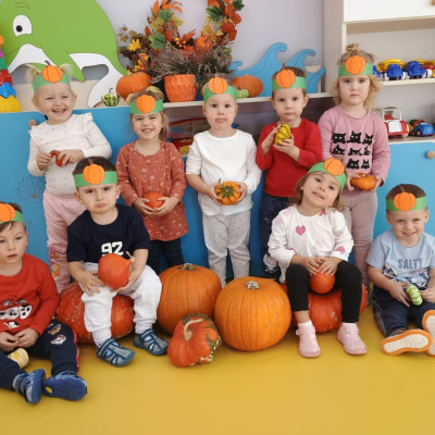 Z okazji święta Dyni dzieci z grupy RYBEK celebrowaly ten dzień poprzez różne zabawy oraz konkursy. Także została wykonana praca plastyczna pt.
