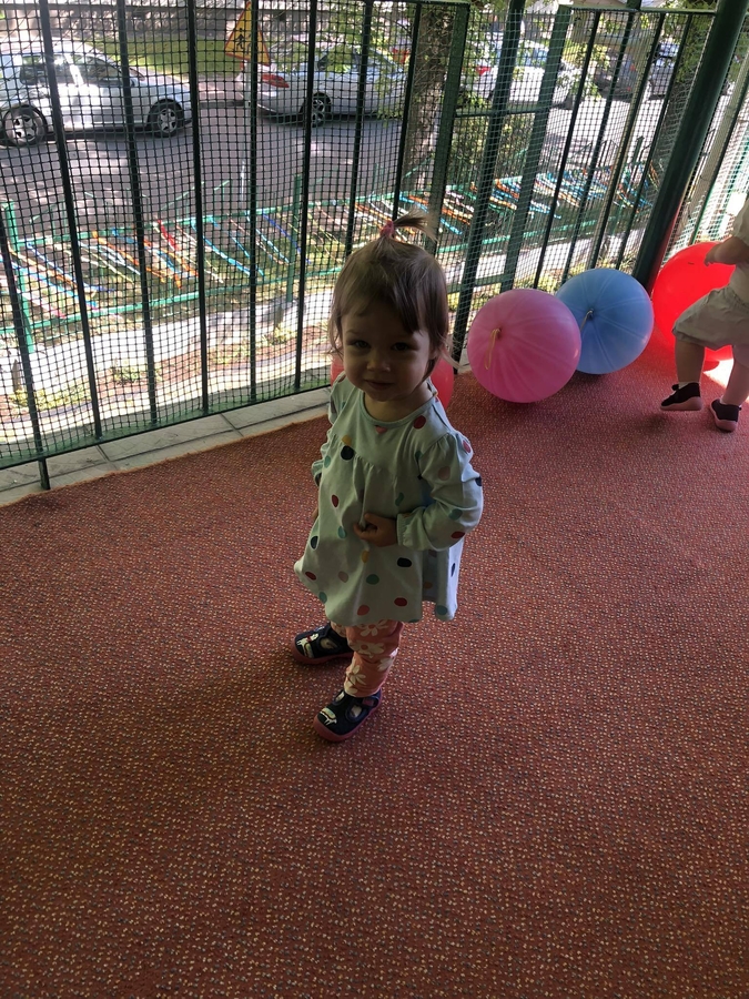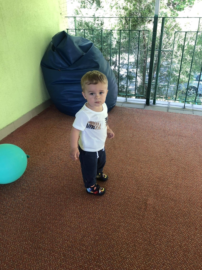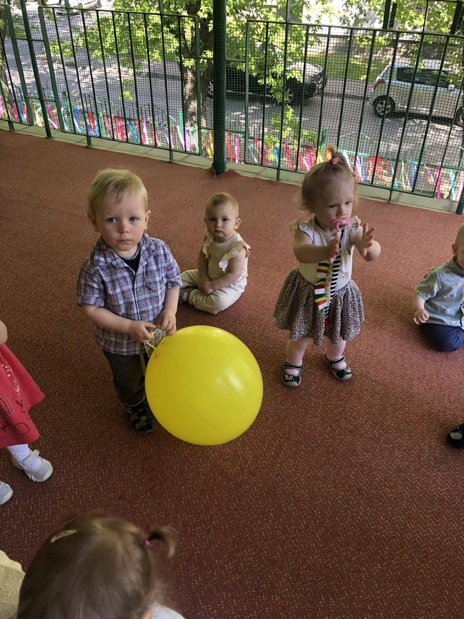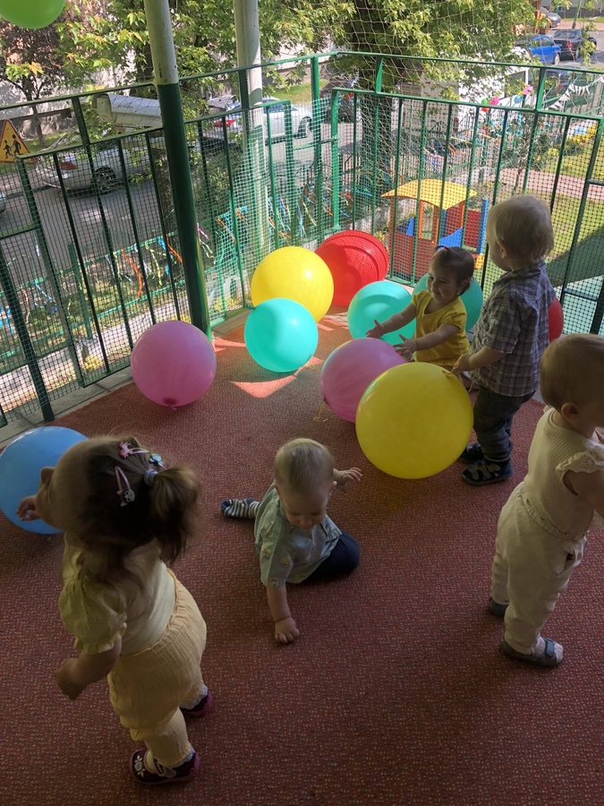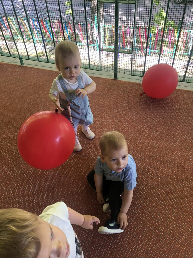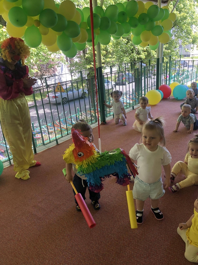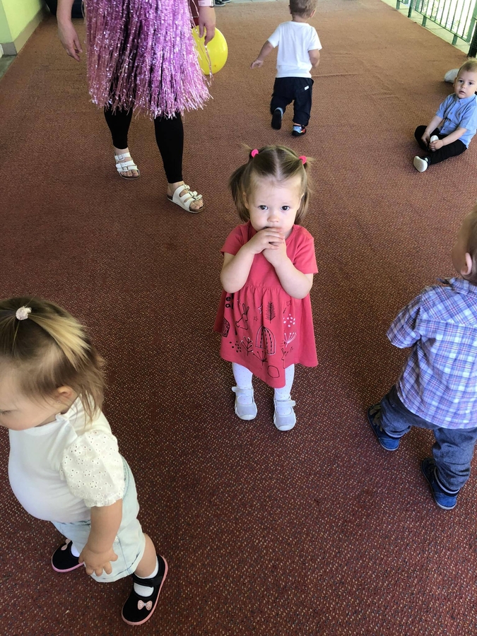 Dziś dzieci z grupy ,,Biedroneczki" wraz ze swoimi opiekunkami na pięknie przystrojonym balonami tarasie świętowały swój dzień.