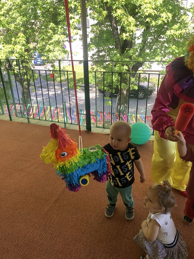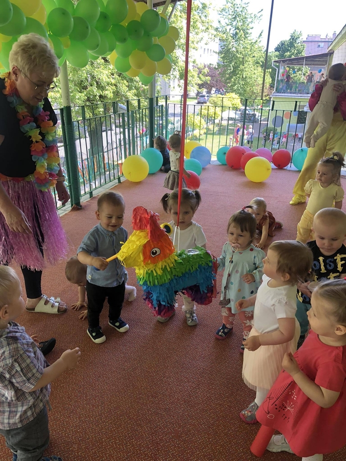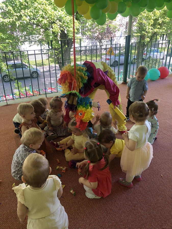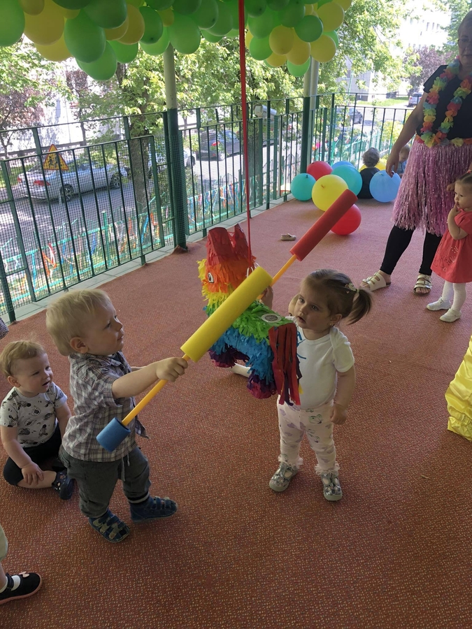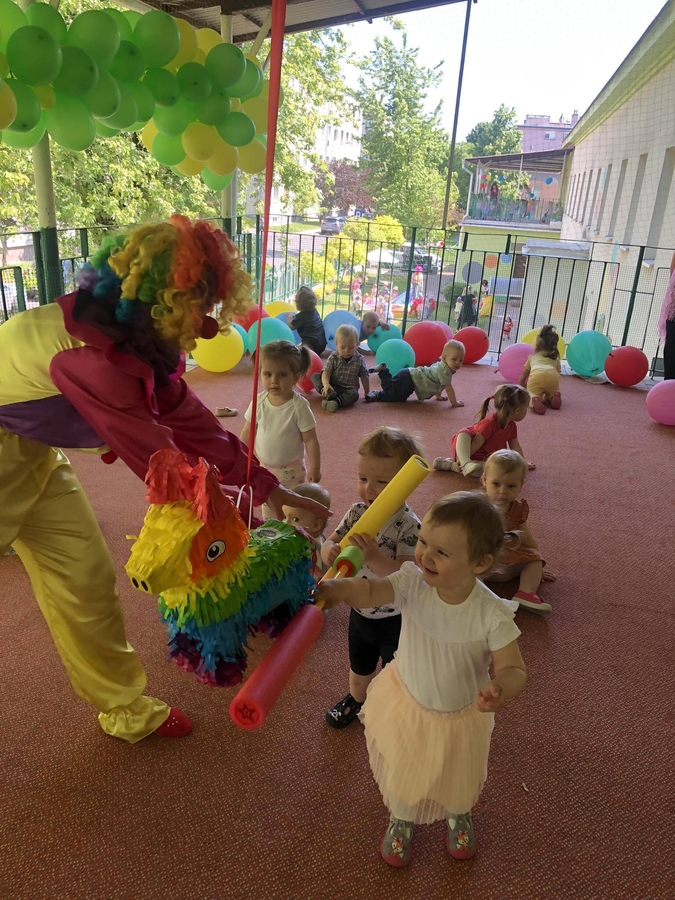 Dzieci brały udział w zabawach tanecznych z klaunem, były bańki mydlane, pamiątkowe zdjęcia, a główną atrakcją była piniata wypełniona słodką niespodzianką. Rozbicie piniaty dostarczyło naszym milusińskim wiele radości.