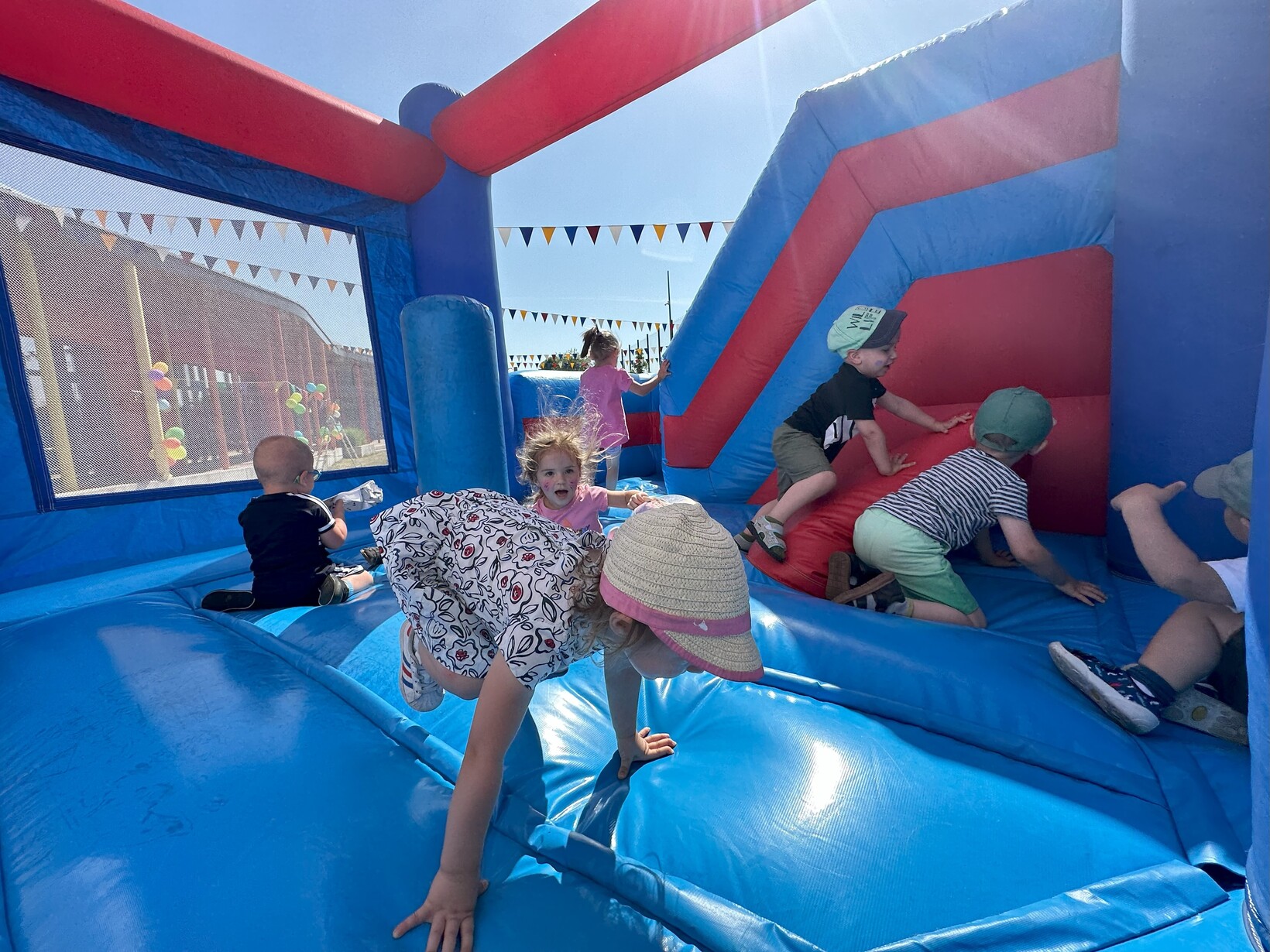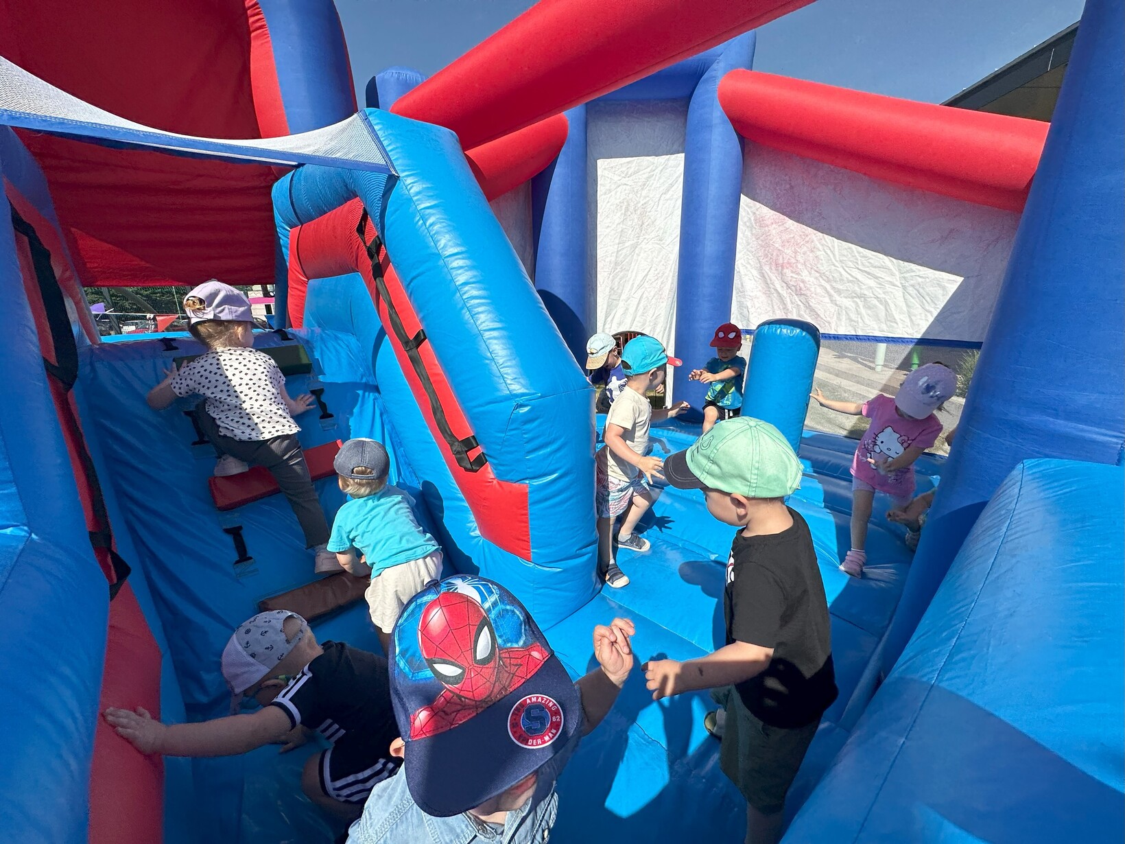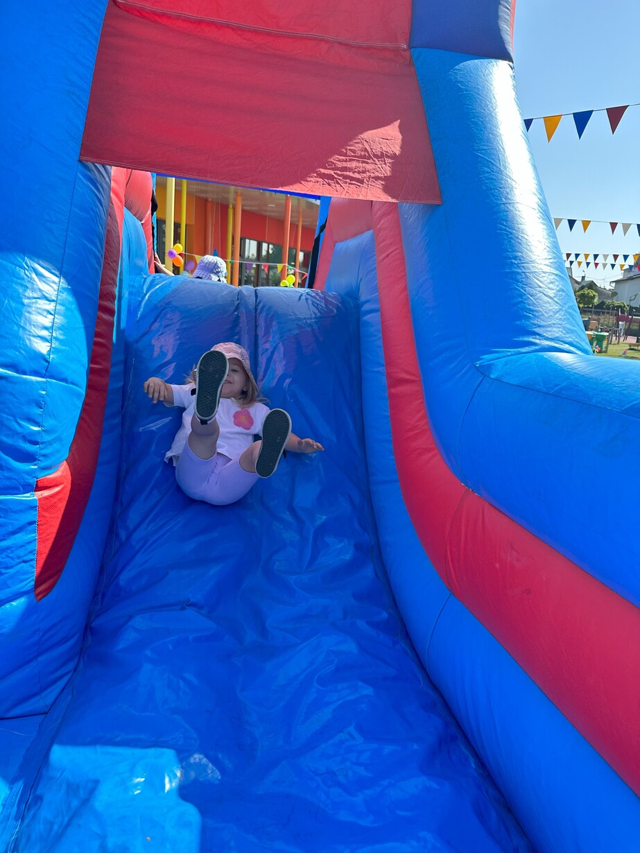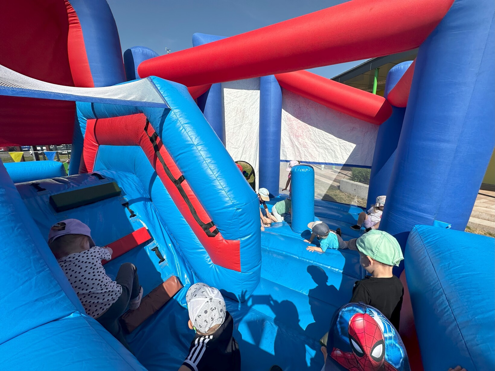 Z okazji Dnia Dziecka w naszym żłobku było wiele atrakcji, takich jak: dmuchany plac zabaw, kolorowe bańki mydlane, czy malowanie twarzy. Gdy część dzieci „szalała” na dmuchańcach, to pozostałe świetnie bawiły się biorąc udział w zabawach na świeżym powietrzu. Było także słodkie „co nieco”, czyli pyszne owoce z bitą śmietaną. Zabawa była, jak zawsze udana i wesoła! Na koniec dnia każde dziecko otrzymało prezent.