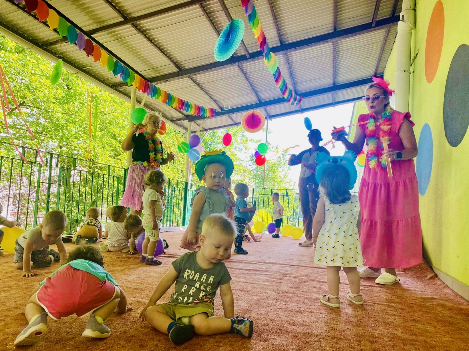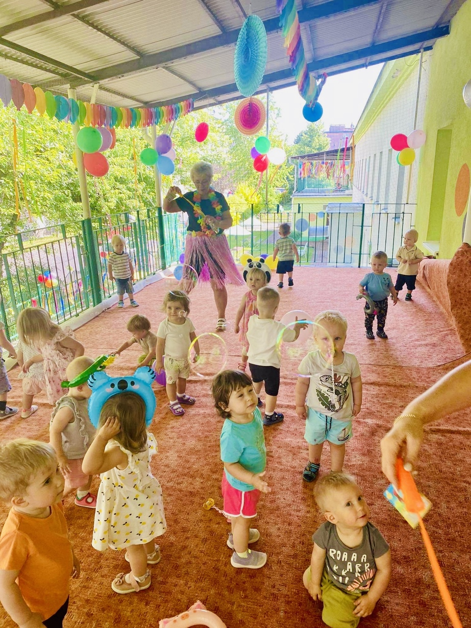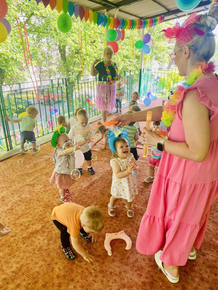 Dzień Dziecka w naszym żłobku obchodziliśmy bardzo uroczyście . Był to dzień uśmiechu i wspaniałej zabawy . Były tańce przy muzyce , kolorowe balony ?, bańki mydlane ?, piniata i inne atrakcje . Na koniec tego dnia dzieciaczki dostały prezent i dyplom.