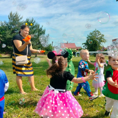 Z okazji Dnia Dziecka przygotowaliśmy dla naszych maluchów moc atrakcji! Były wspólne zabawy na świeżym powietrzu, kolorowe balony, tańce i mnóstwo uśmiechów. Dzieci otrzymały upominki, a cały dzień upłynął w radosnej i ciepłej atmosferze. To była prawdziwa uczta radości i dziecięcej beztroski!