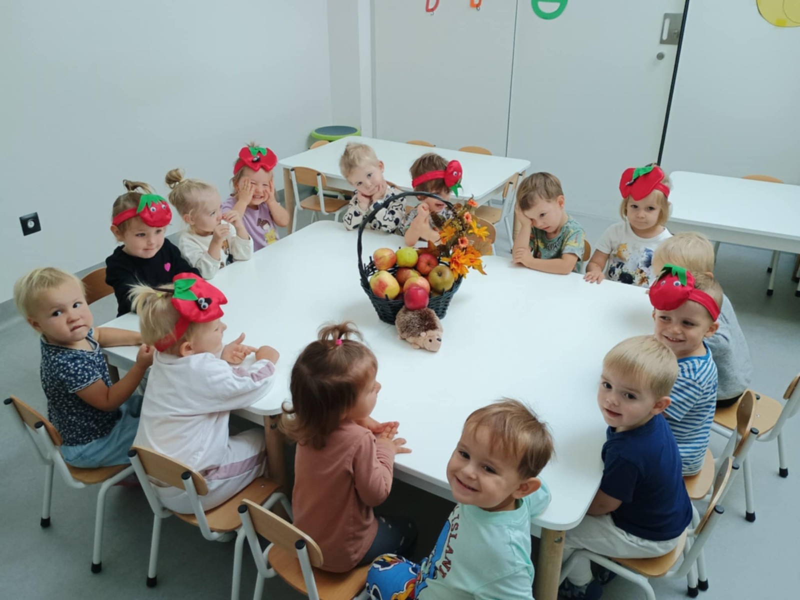 Dzisiaj Nasze Rybki obchodziły Międzynarodowy Dzień Jabłka, który przypada na 28 września . Tego dnia w naszej sali królowały JABŁKA