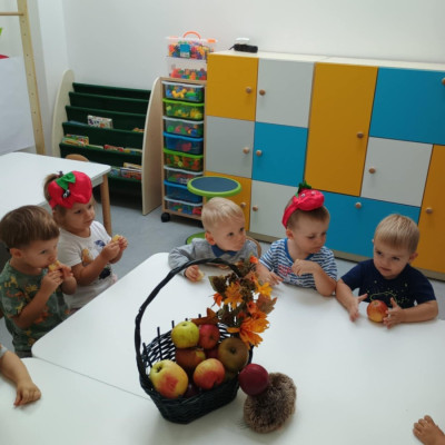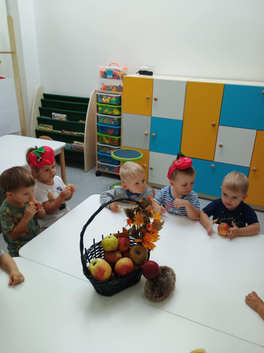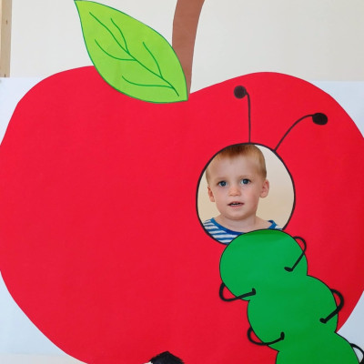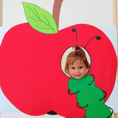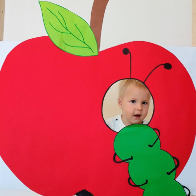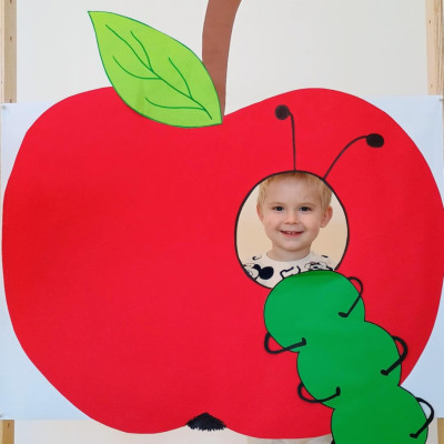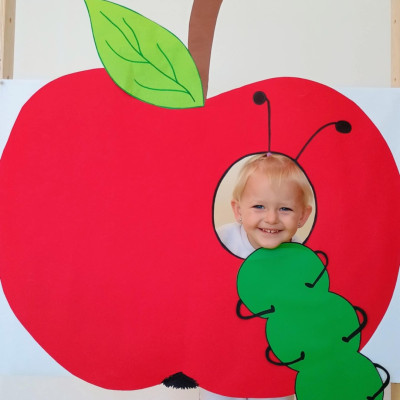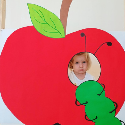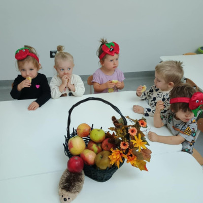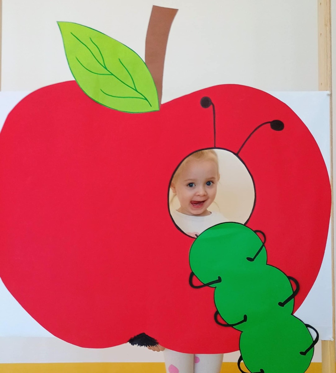 Nasi Żłobkowicze pozowały do zdjęć w fotobudce w kształcie.... jabłka oczywiście. Na koniec odbyła się jabłkowa uczta .