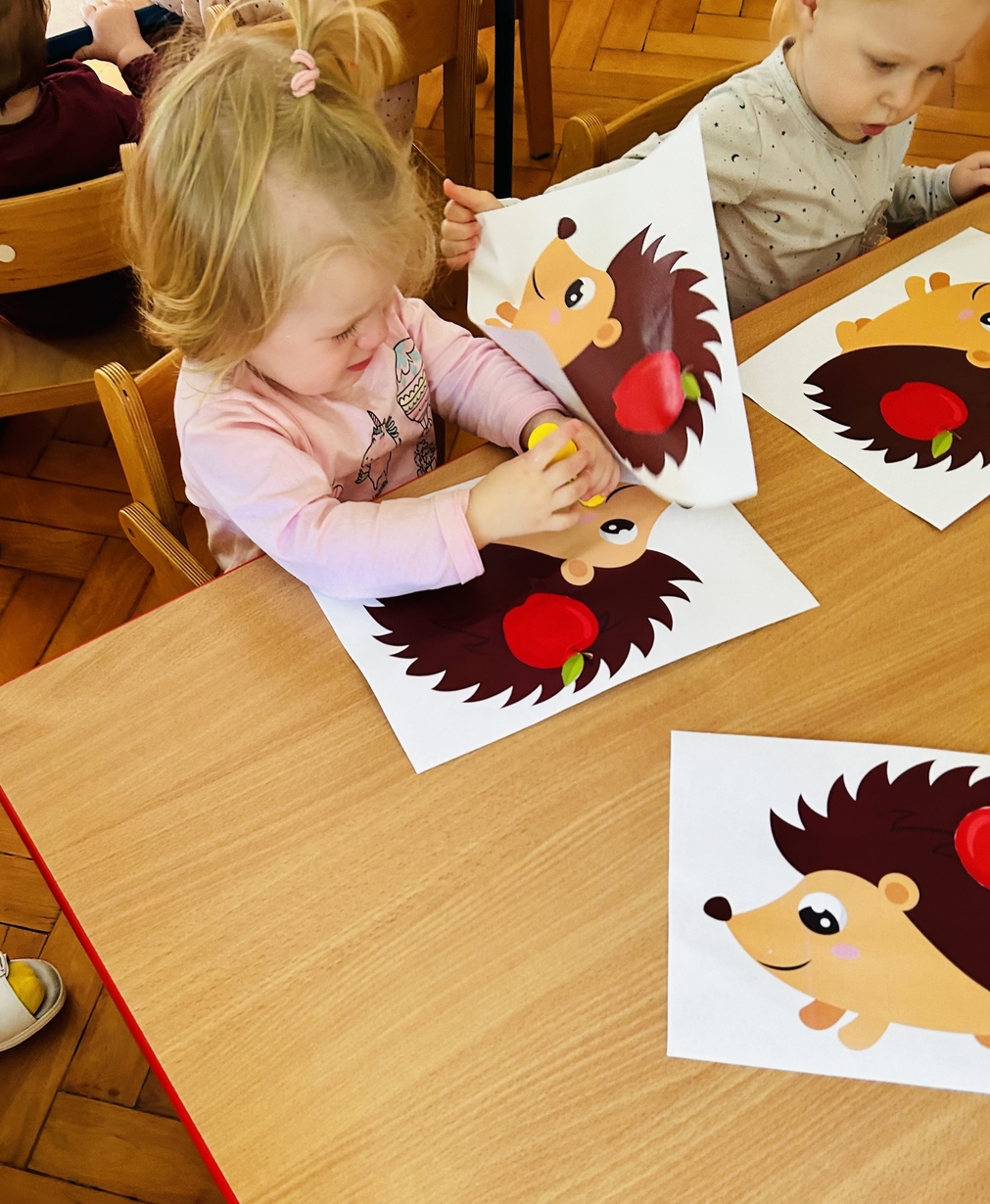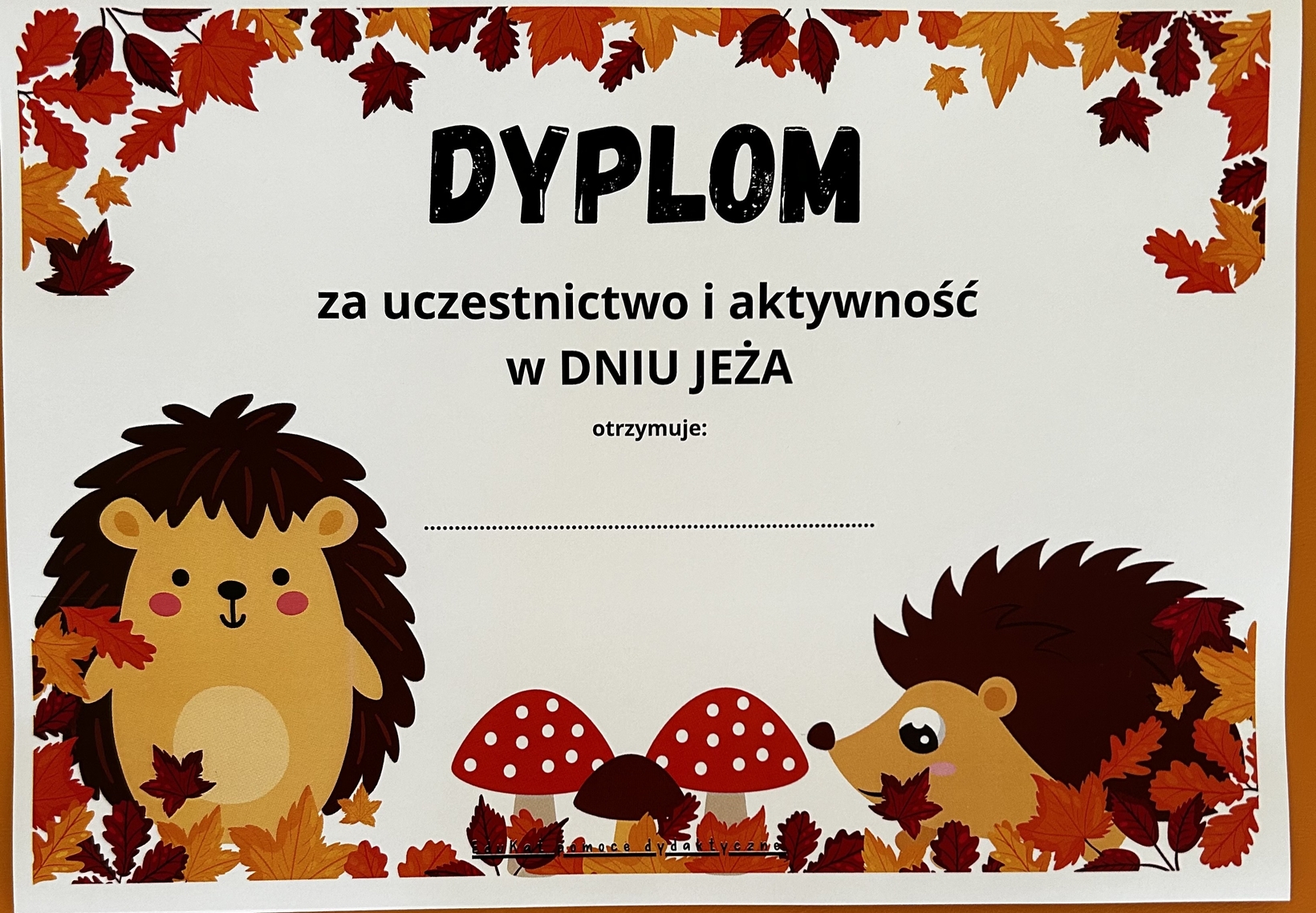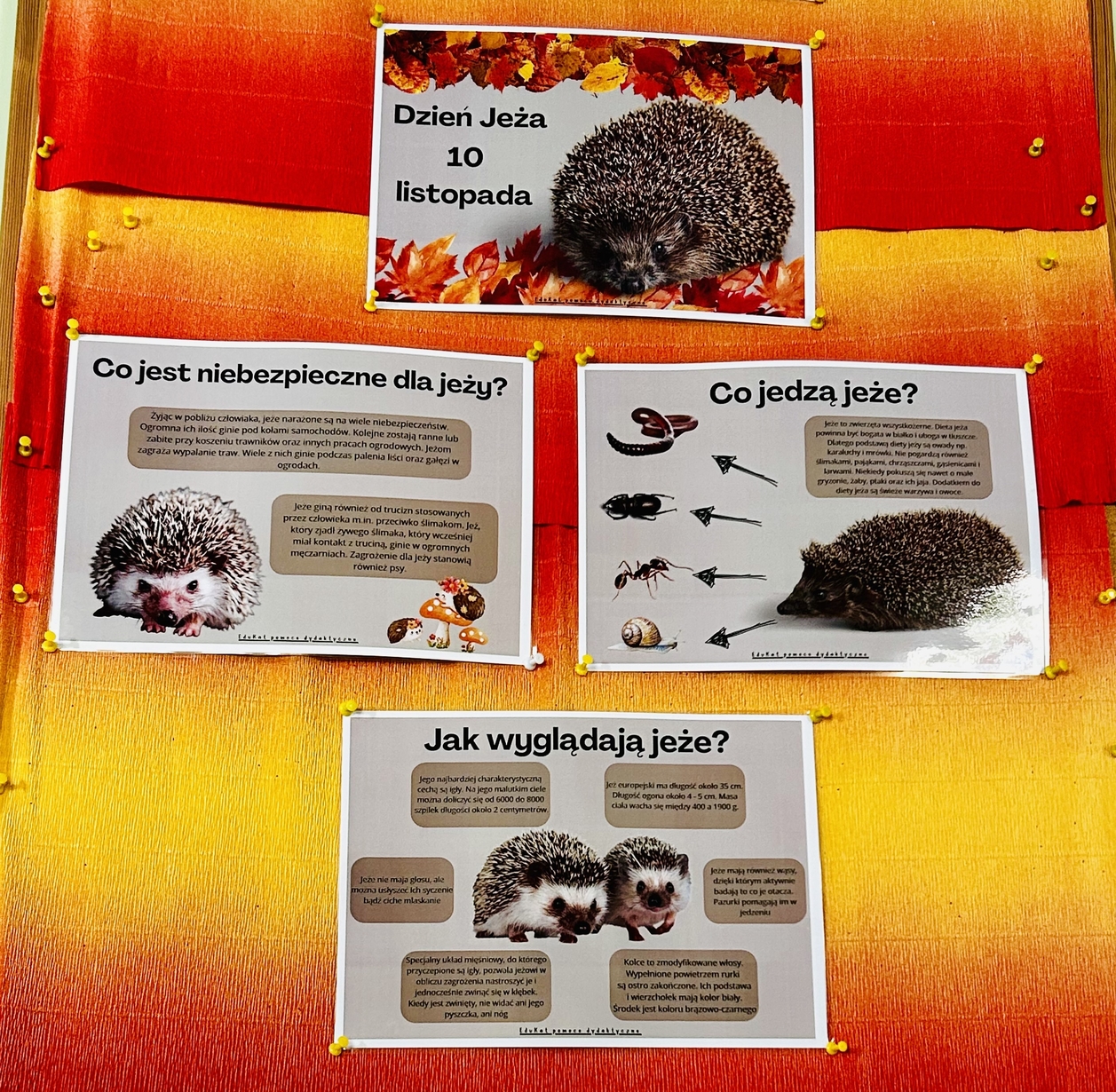 10 Listopada mają swoje święto jeże, z tej okazji dzieci z grupy Biedronki ? wykonały pracę plastyczną. Dzieciaczki oglądały ilustracje przedstawiające jeża. Na koniec dnia Biedroneczki otrzymały dyplomik za uczestnictwo i aktywność w Dniu Jeża.