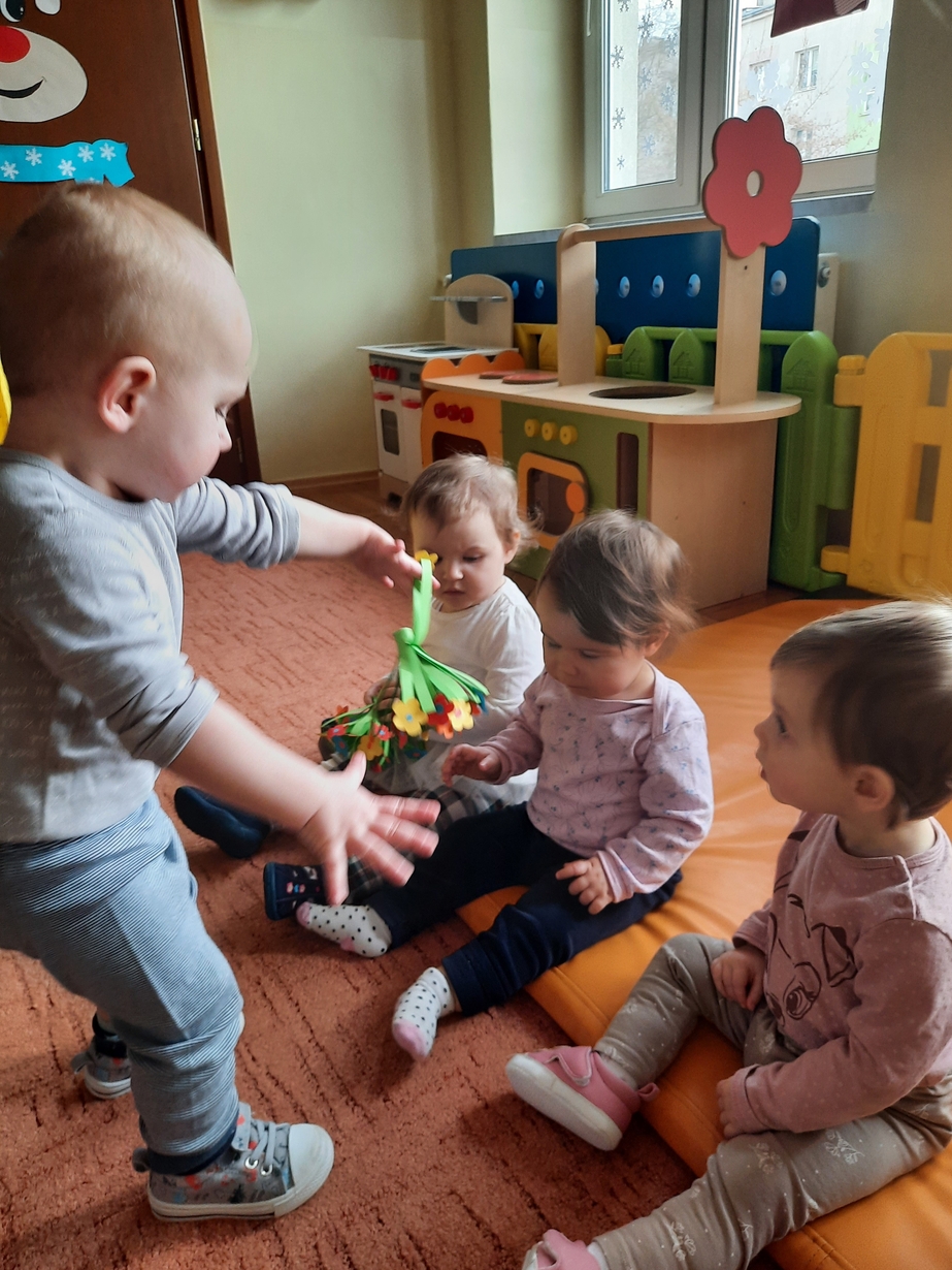 Dzisiaj chłopcy z grupy biedronek chcąc uczcić ten dzień, przygotowali dla Swoich małych koleżanek bukieciki kwiatów.