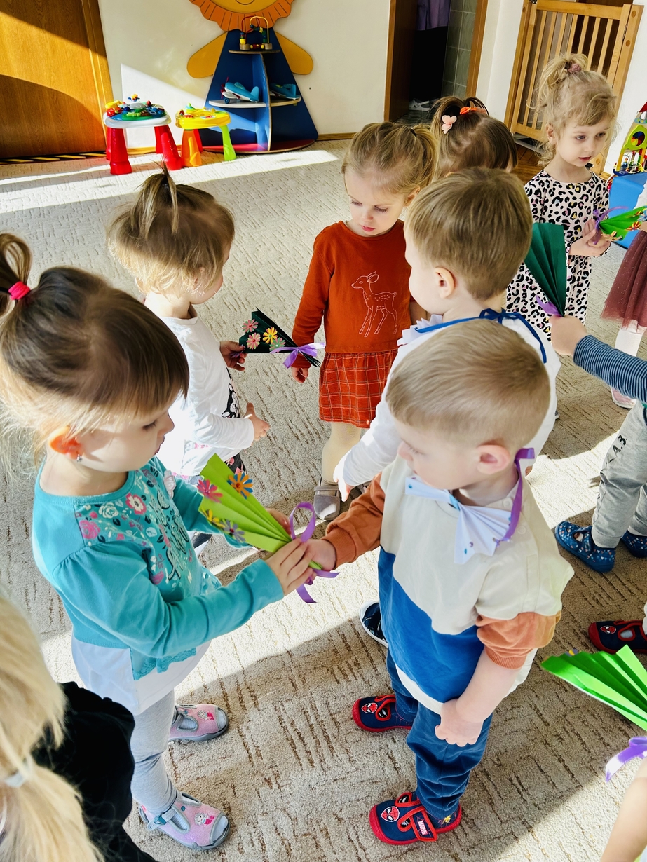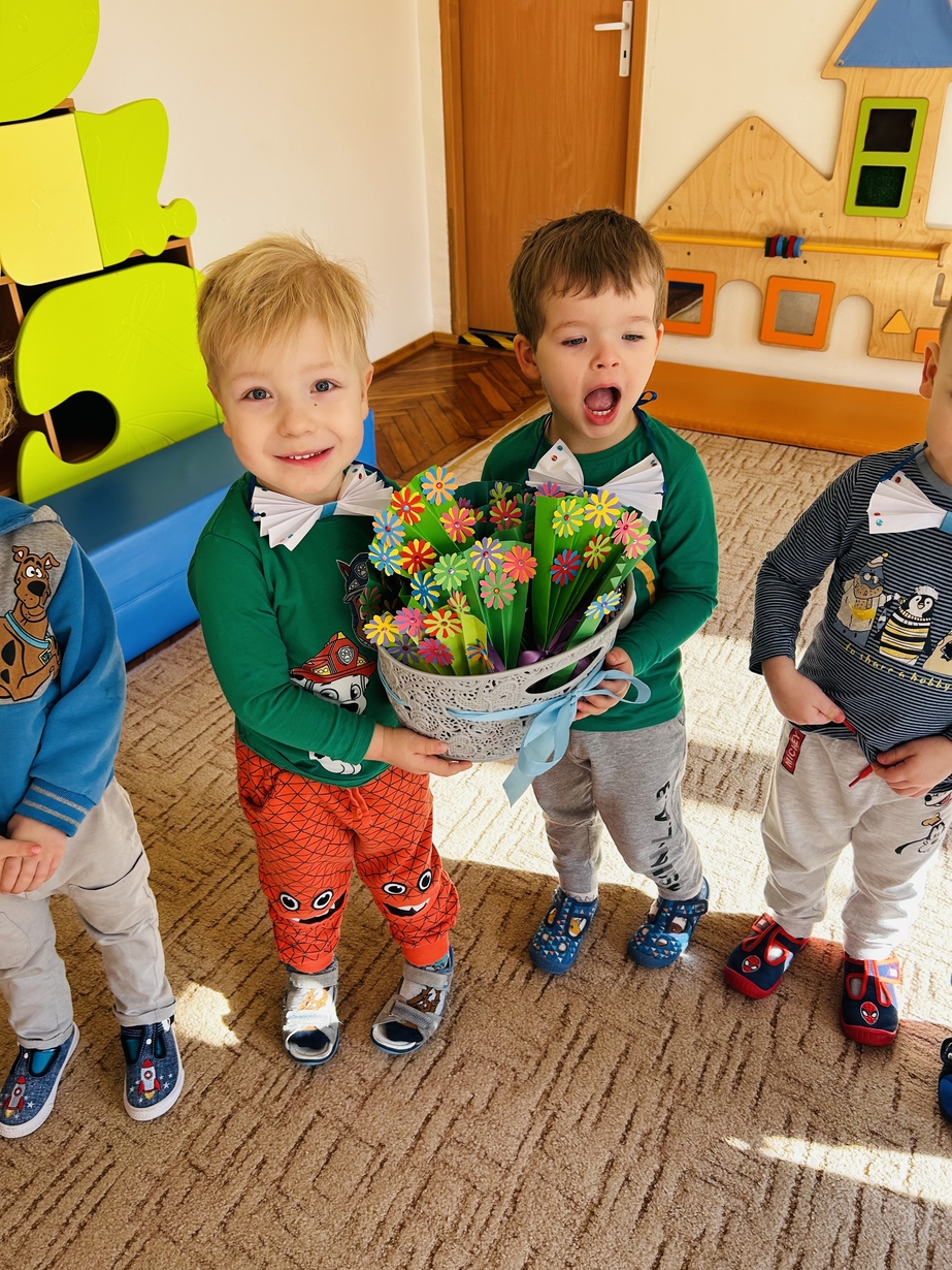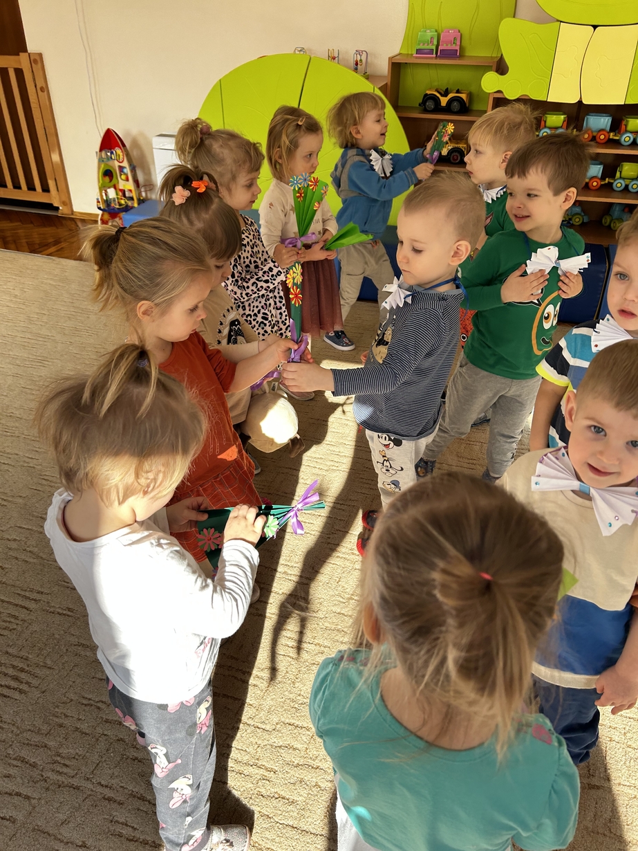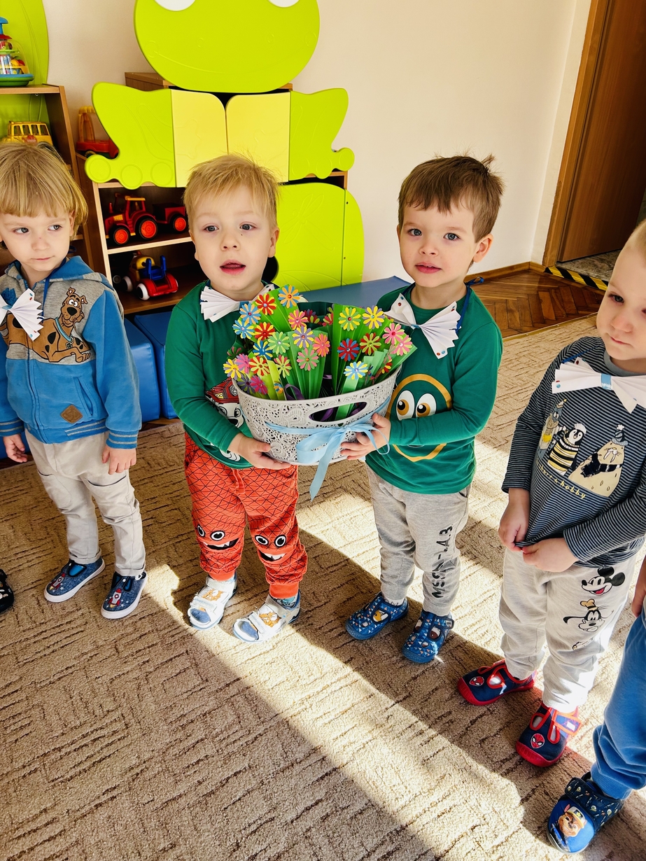 Dzień Kobiet to wyjątkowy dzień , ważny dla wszystkich kobiet ,zarówno tych dużych ,jak i małych . Radosna atmosfera była już od samego rana . W tym dniu chłopcy złożyli życzenia zaśpiewali piosenkę pt. „Marzec " i wręczyli piękne laurki . Tego dnia można było usłyszeć na grupie Motylków taneczną muzykę , w rytm której bawiły się zarówno dziewczynki jak i chłopcy .
