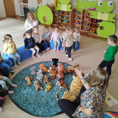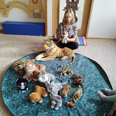 Dzieci poznawały dzikie koty i bawiły się pluszowymi tygrysami i kotkami.