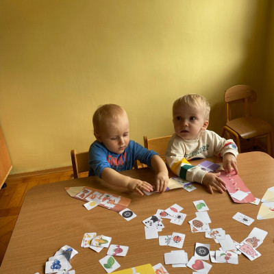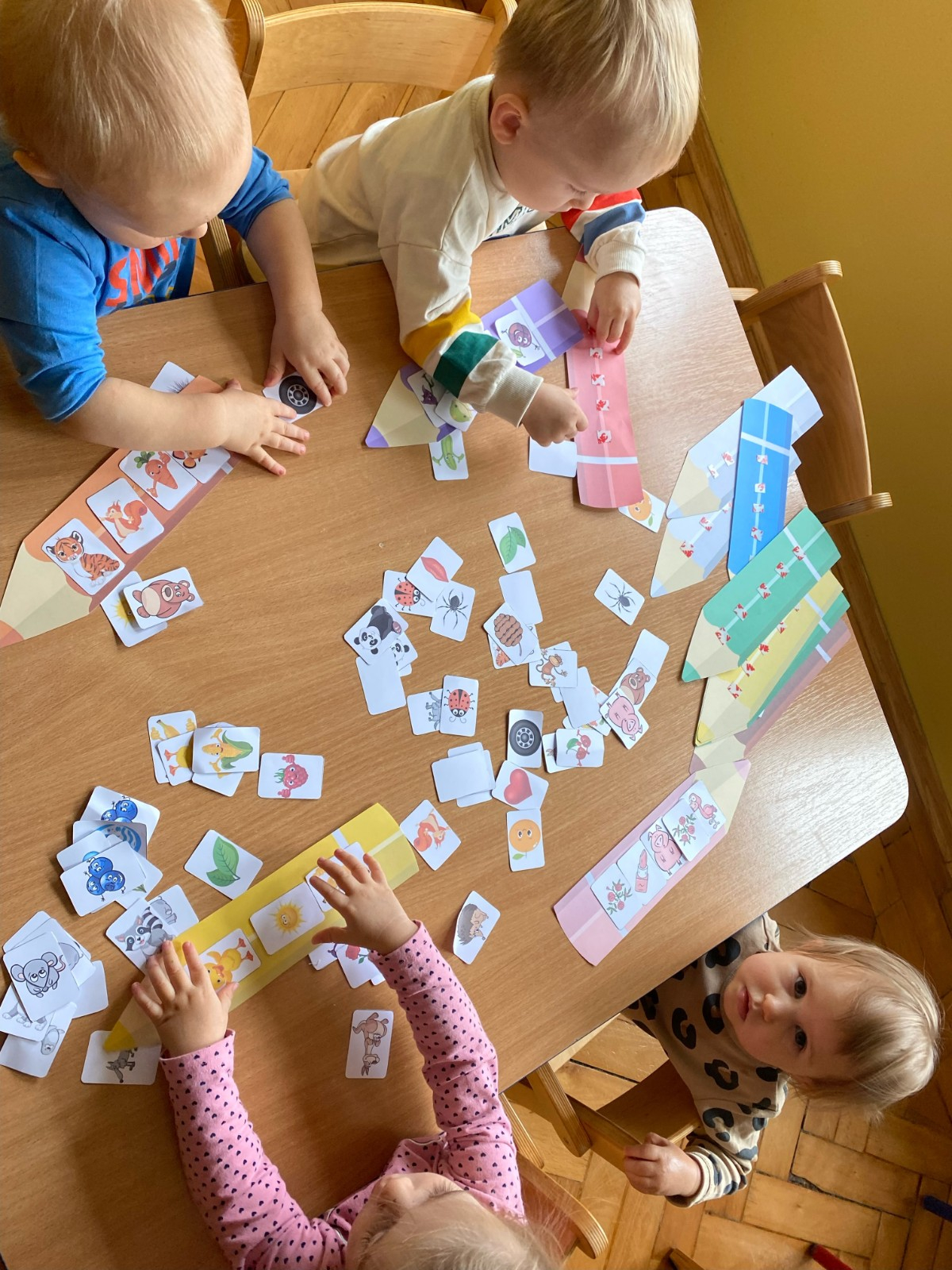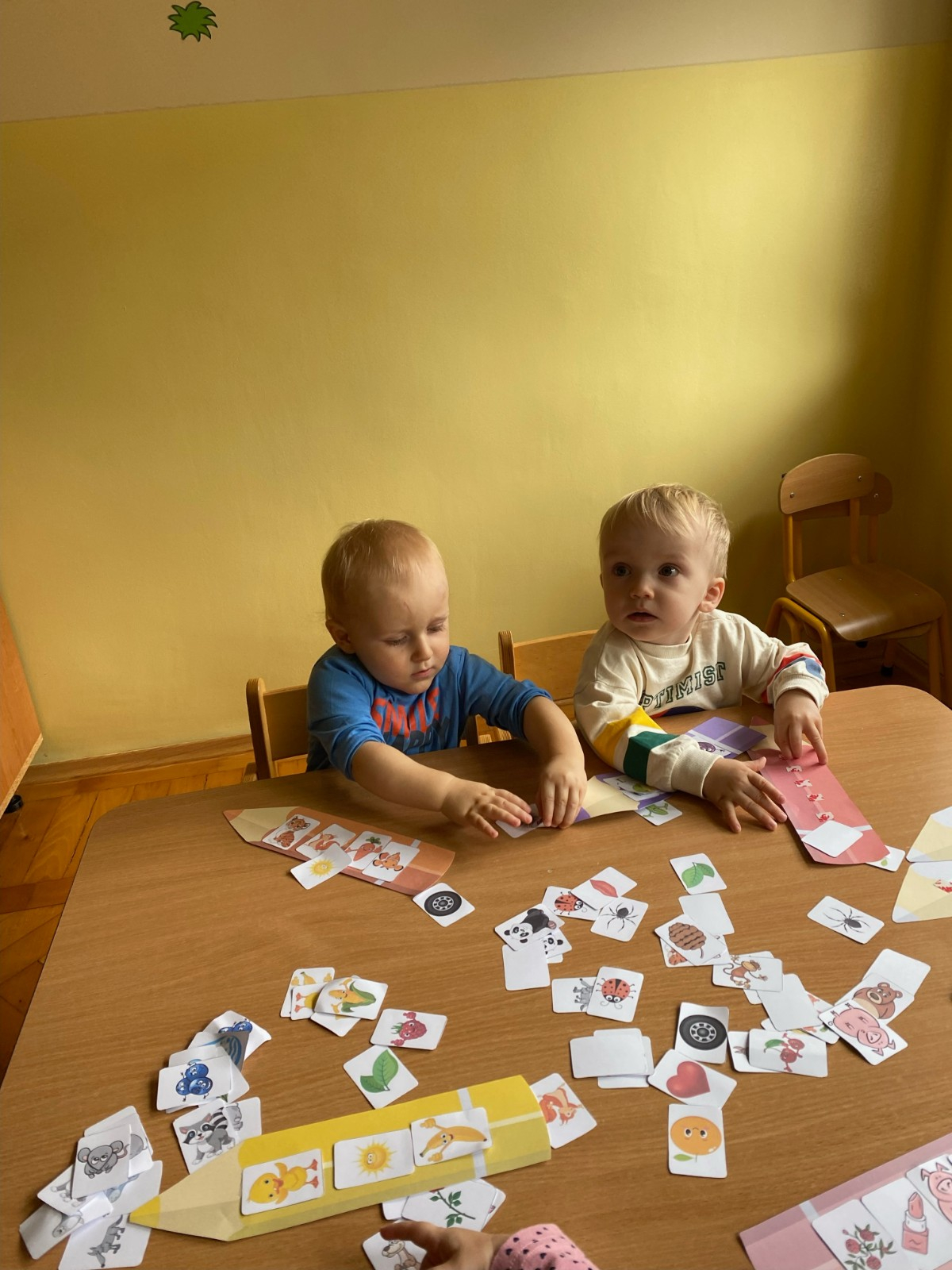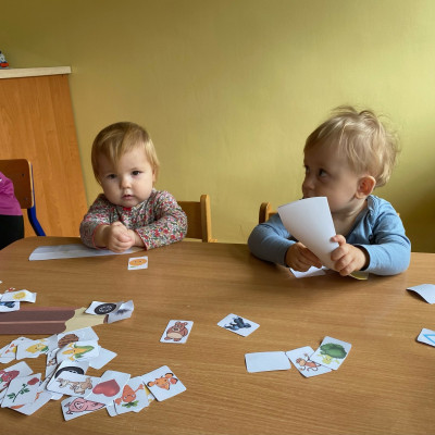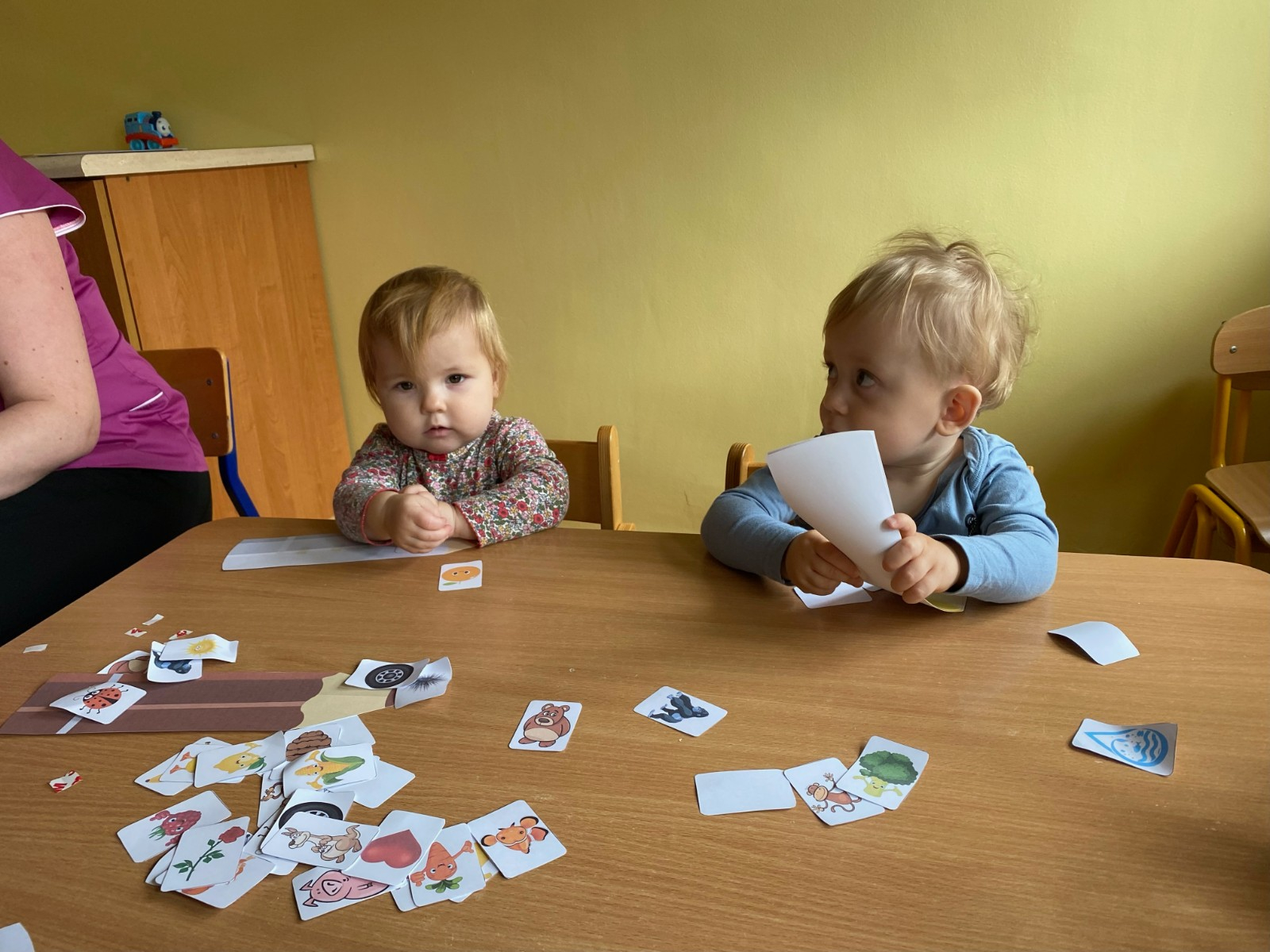 Zdjęcie przedstawia dzieci podczas jesiennych zabaw w żłobku