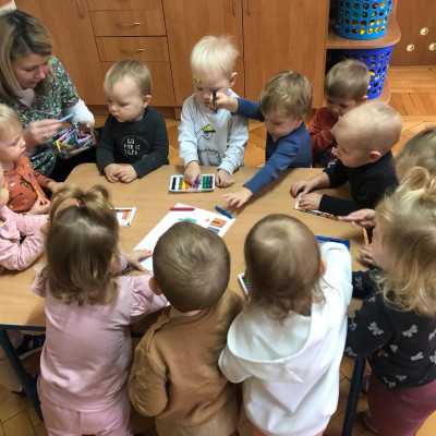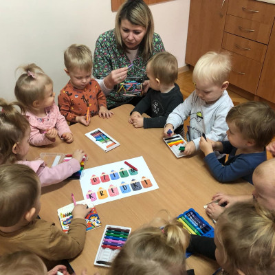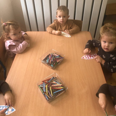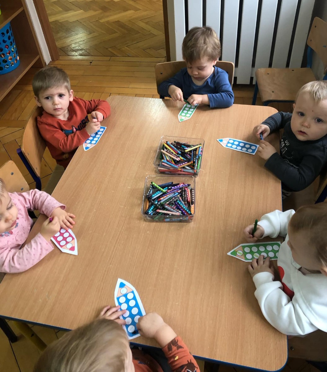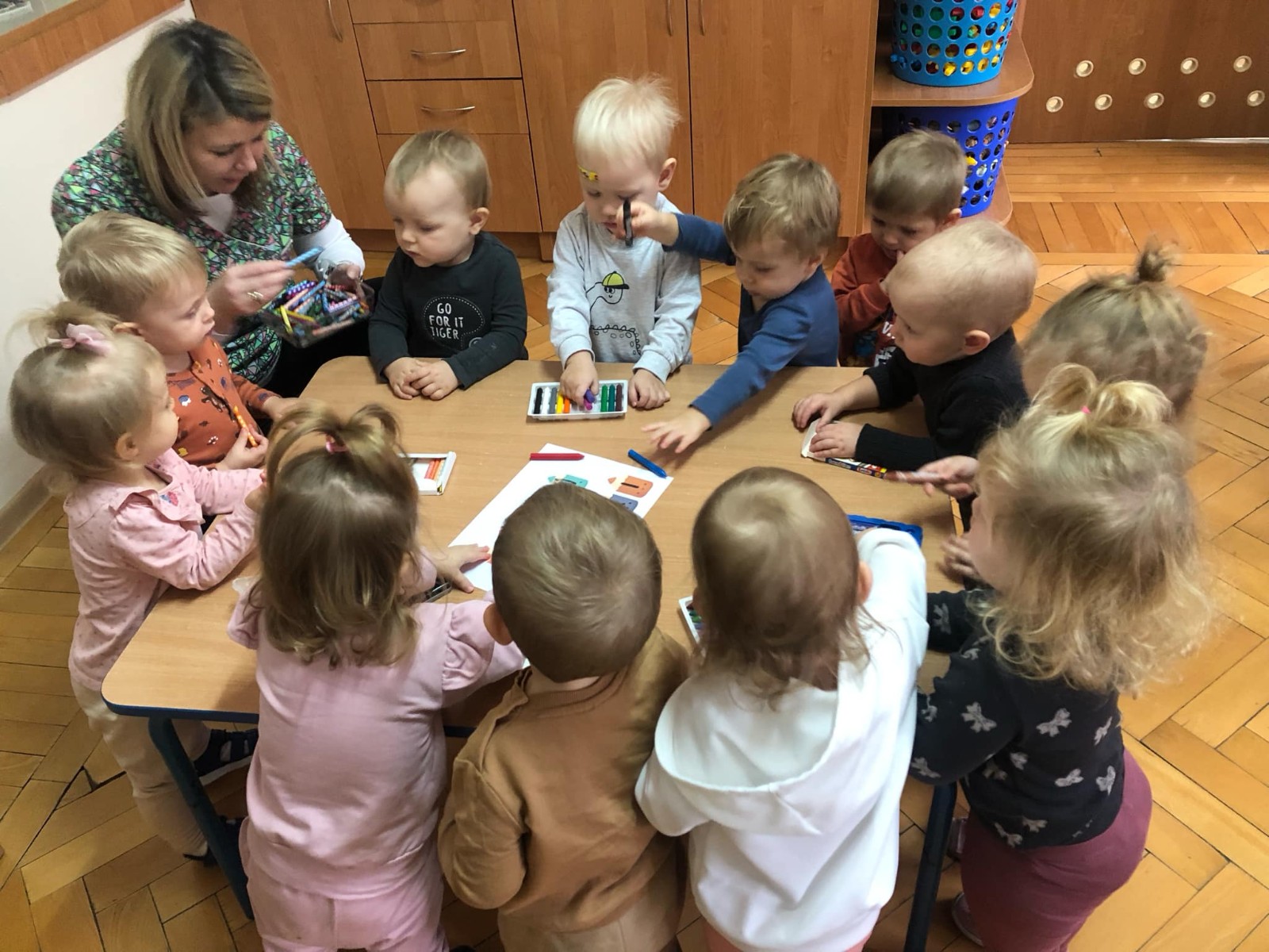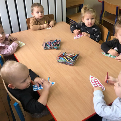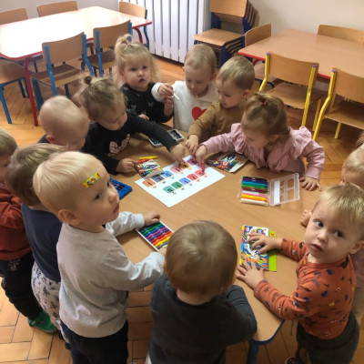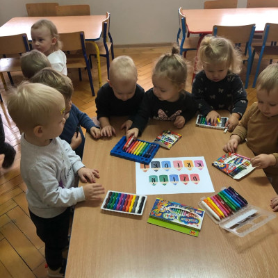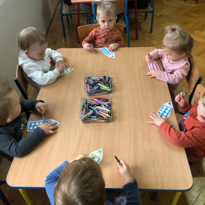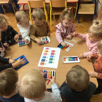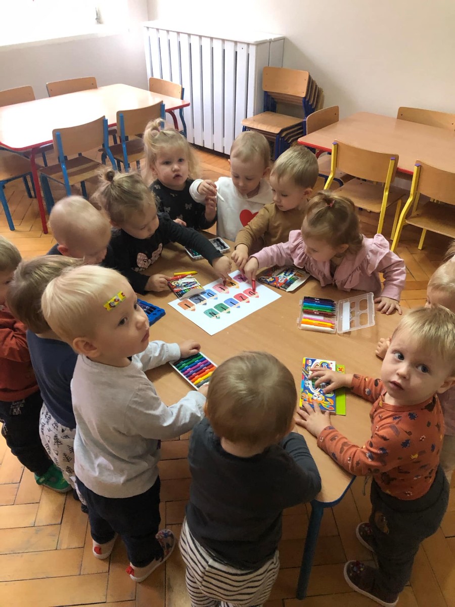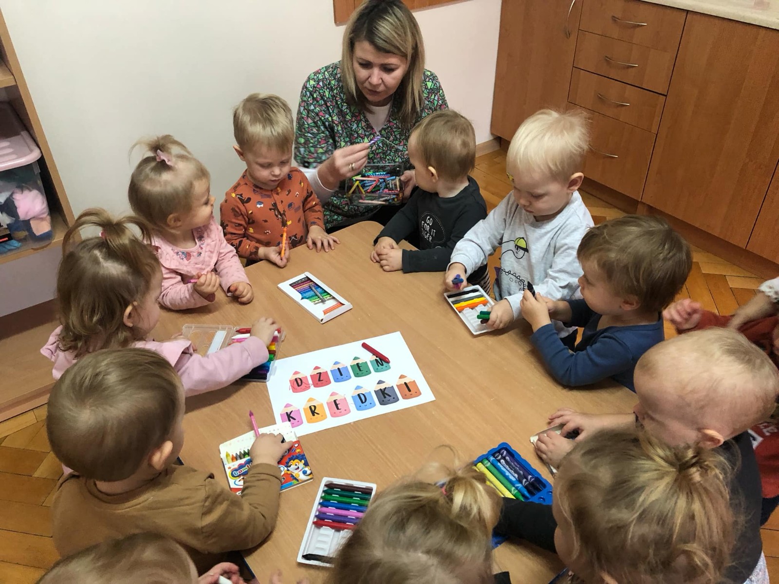 Dziś Pszczółki z okazji Dnia Kredki poznawały kolory i rodzaje kredek,oraz kolorowały obrazek.