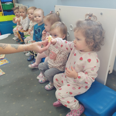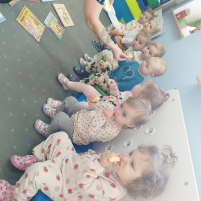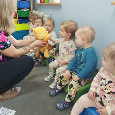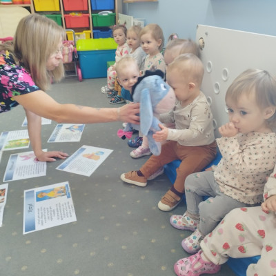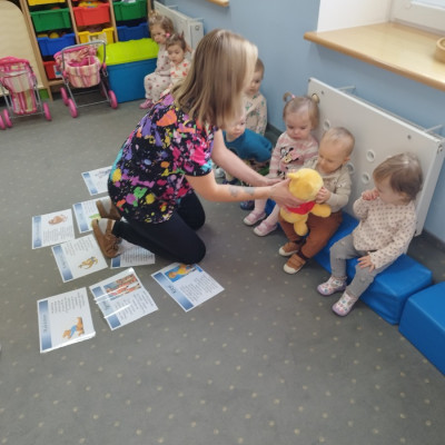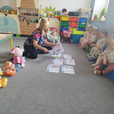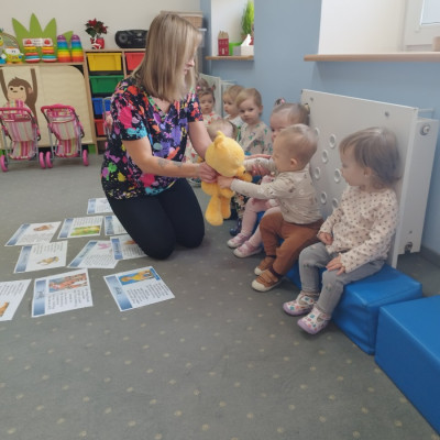 Zdjęcia przedstawiają zajęcia dzieci w żłobku
