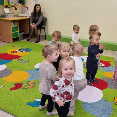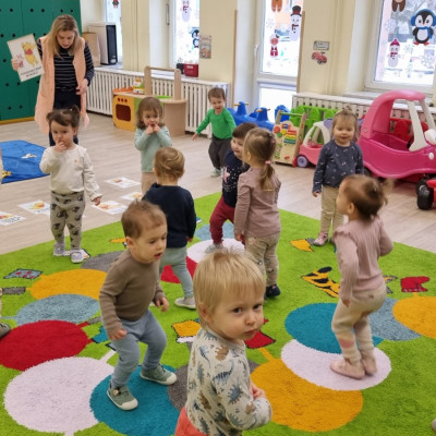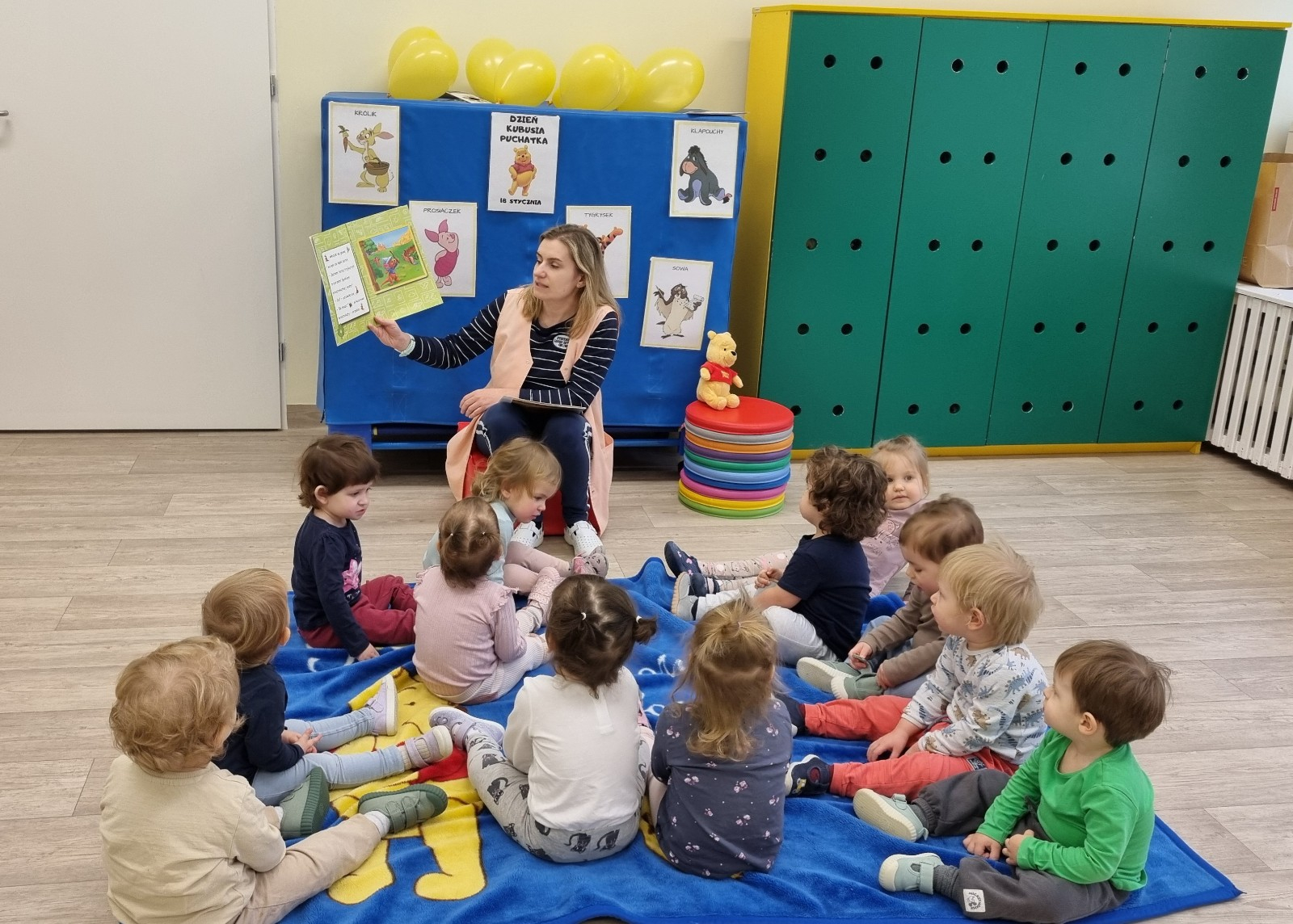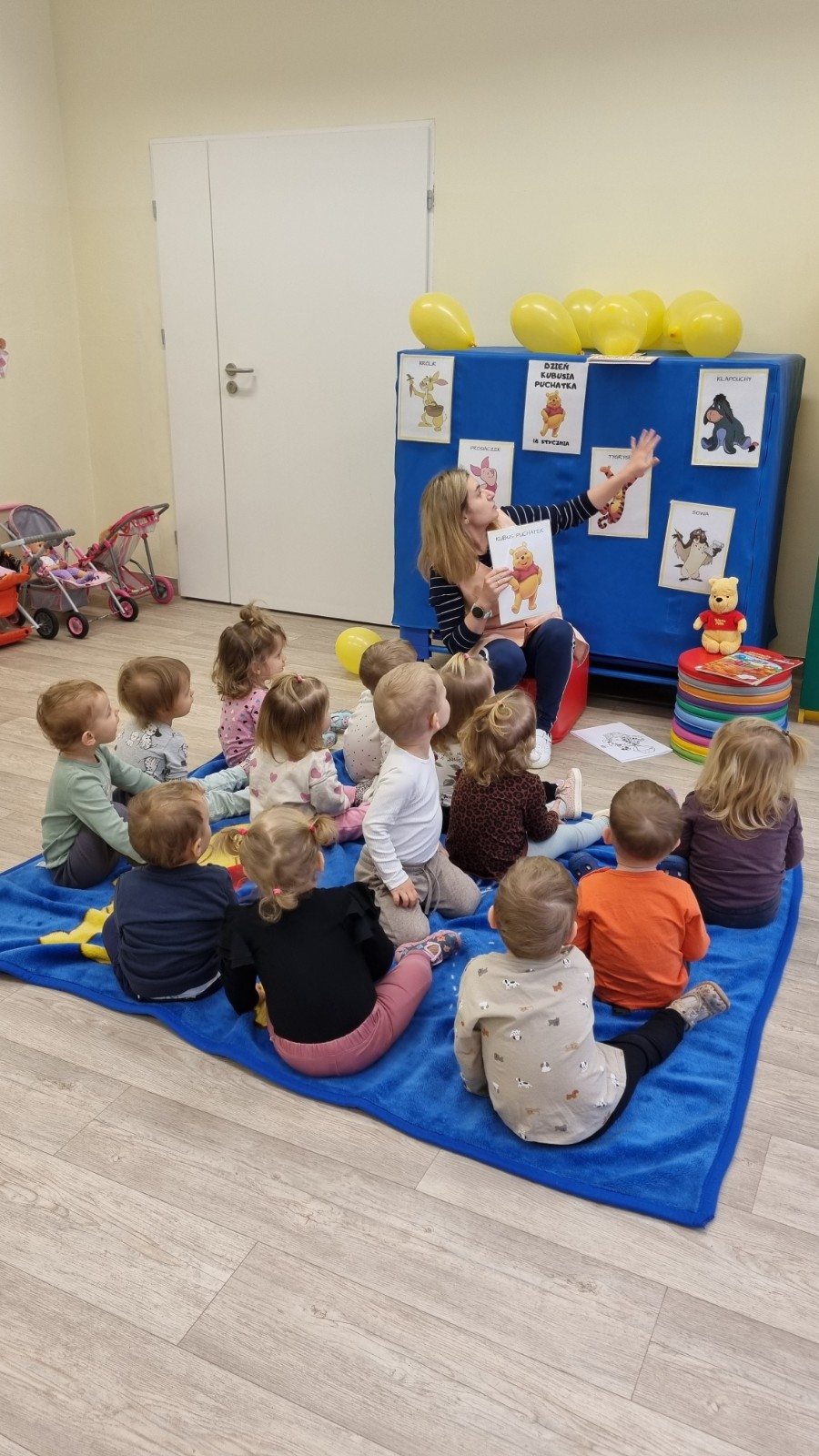 Zdjecia przedstawiają dzieci obchodzące dzień Kubusia Puchatka