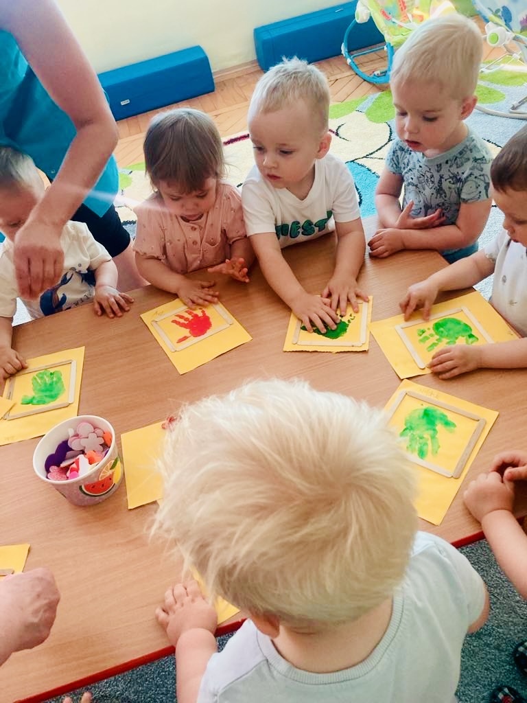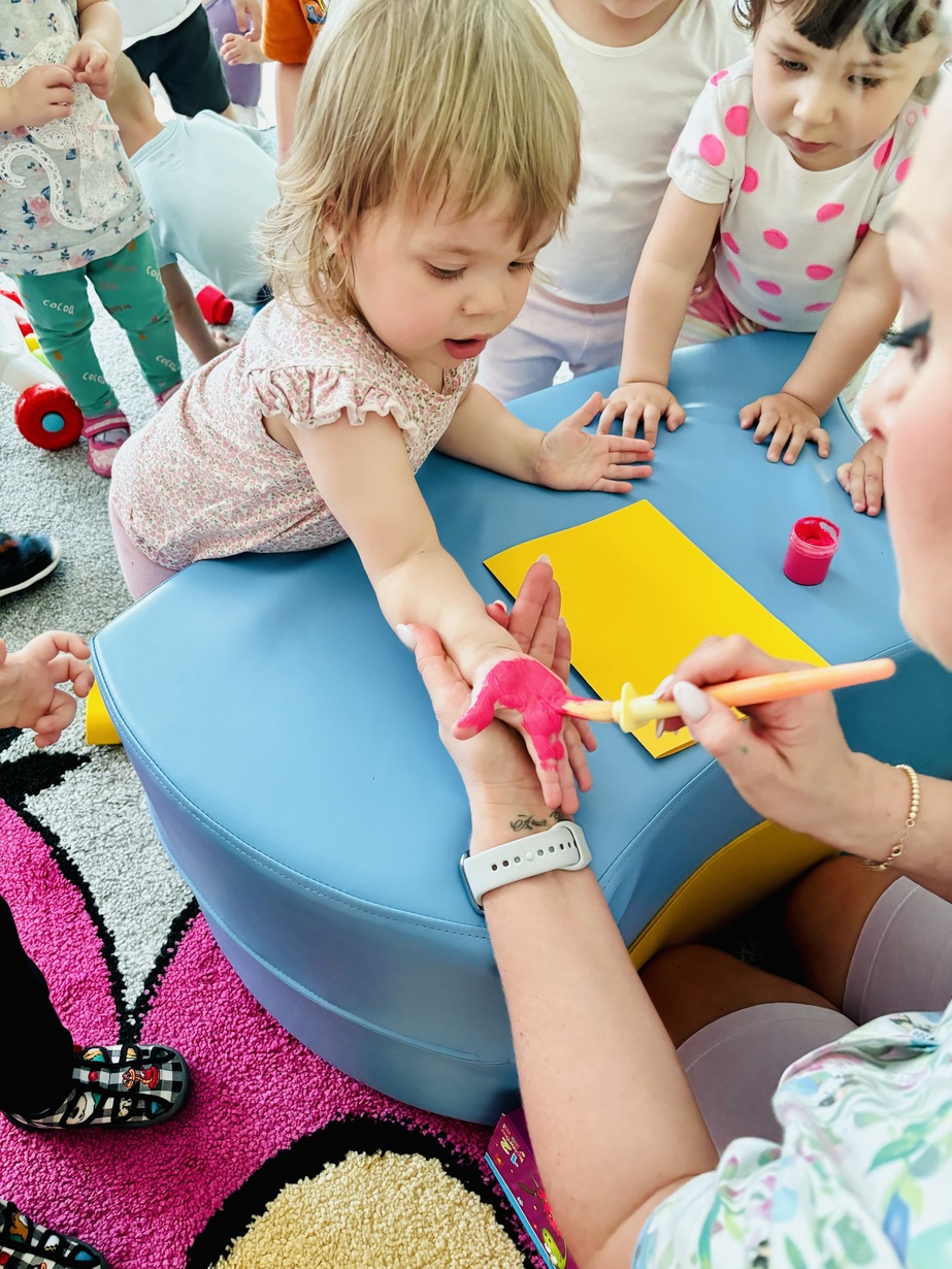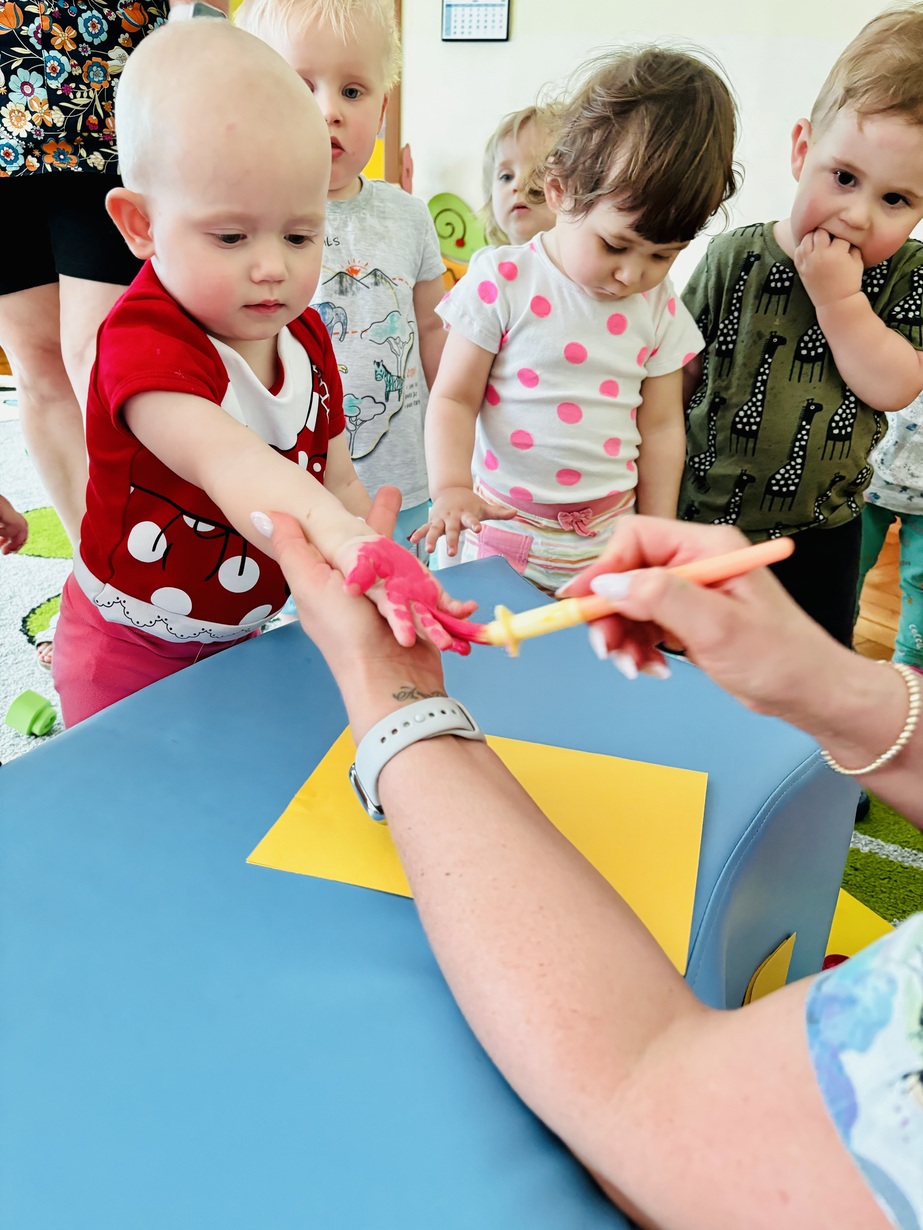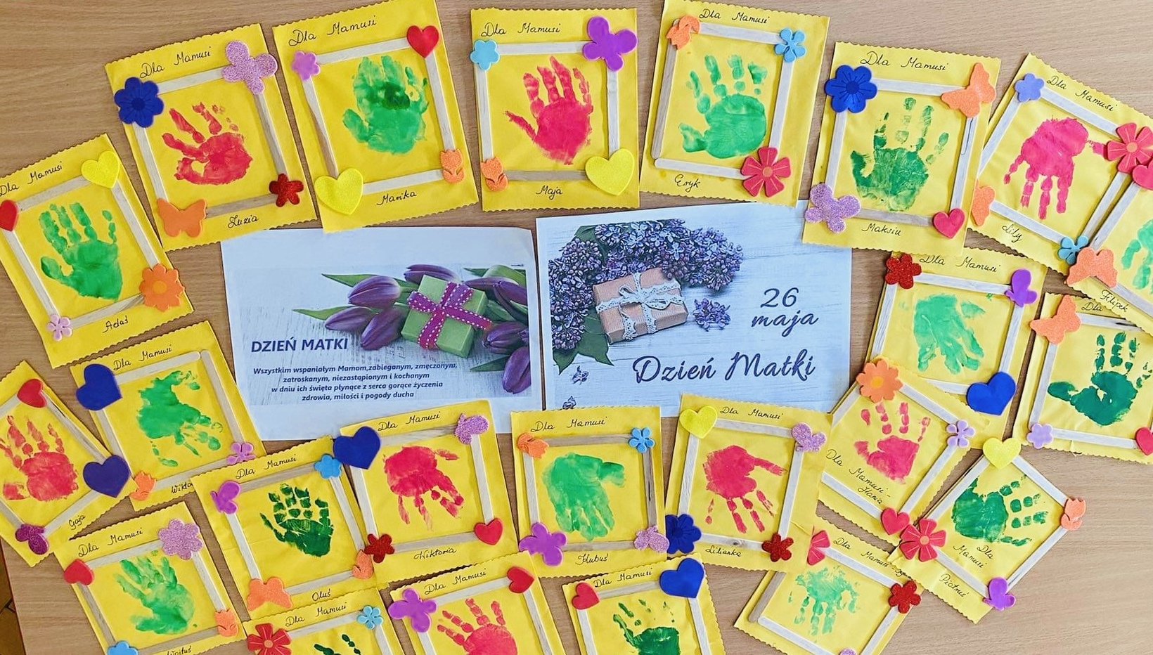 Z okazji Dnia Mamy dzieci przy pomocy cioć wykonały laurki - odbijały swoje rączki pomalowane farbą . Wszystkie mamy otrzymały „Świadectwo Najlepszej Mamy ”