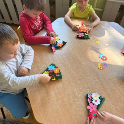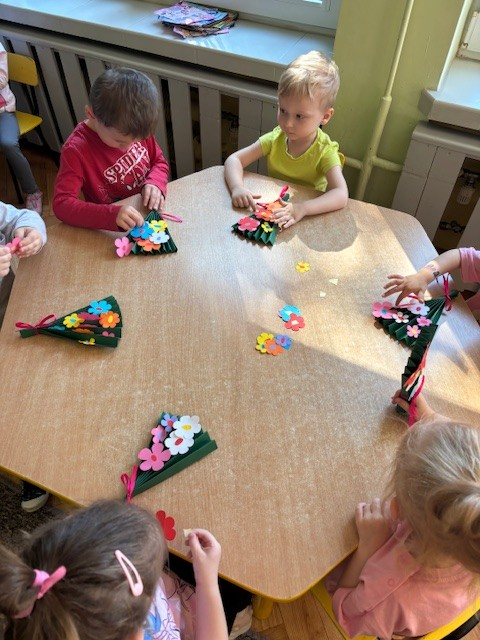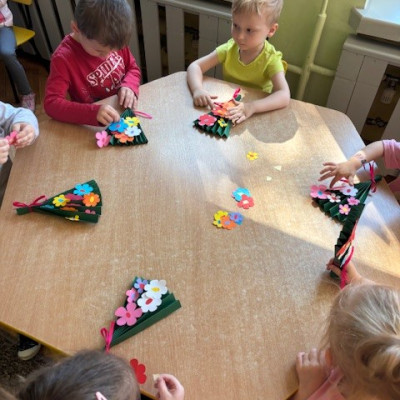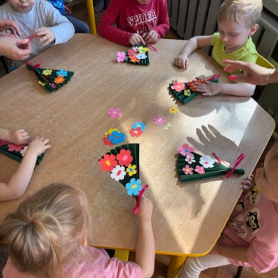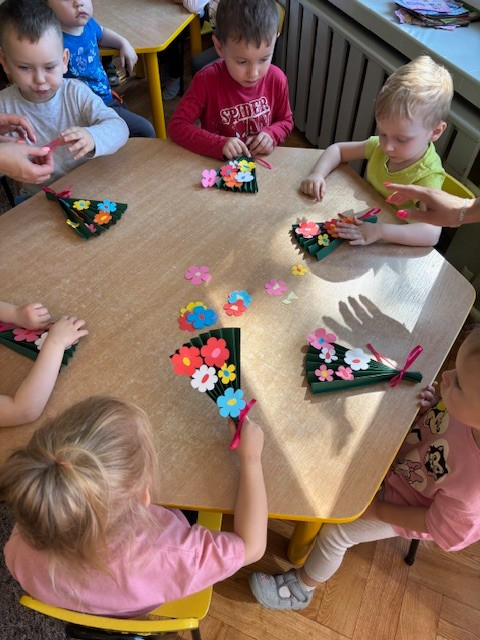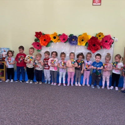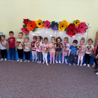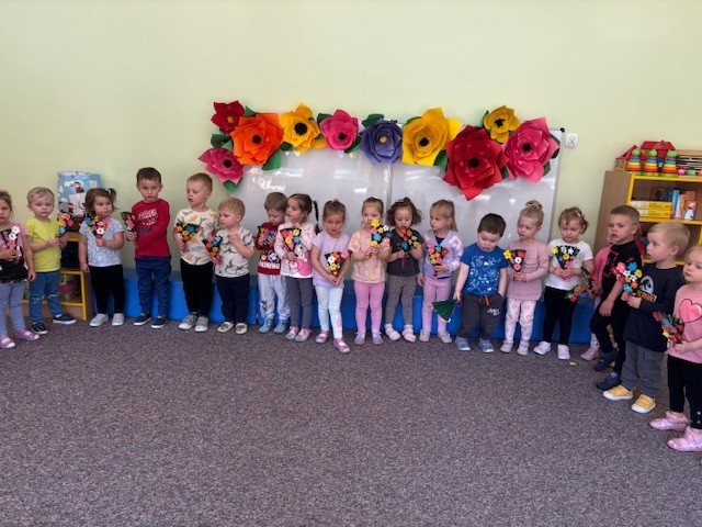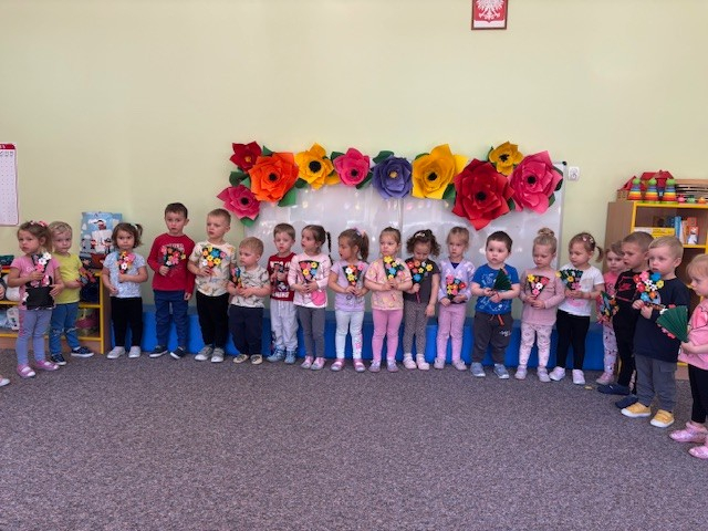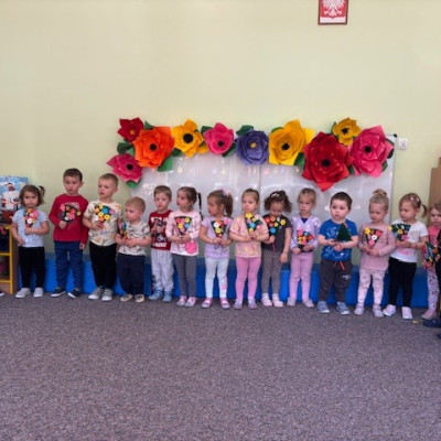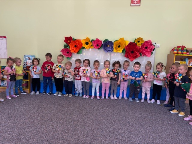 Zdjęcie przedstawia dzieci świętujące Dzień Mamy