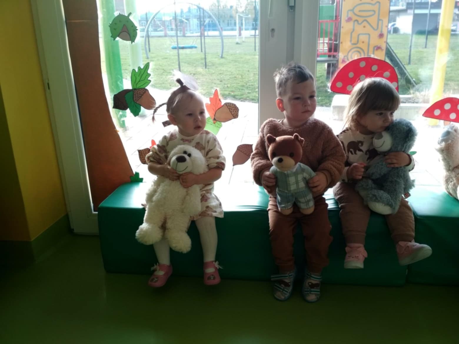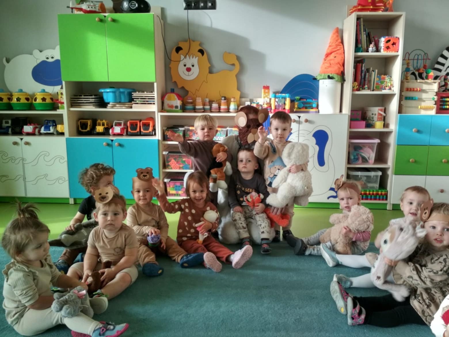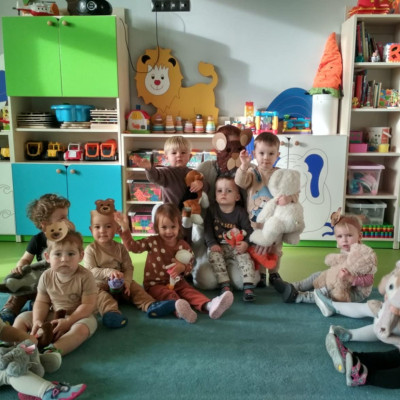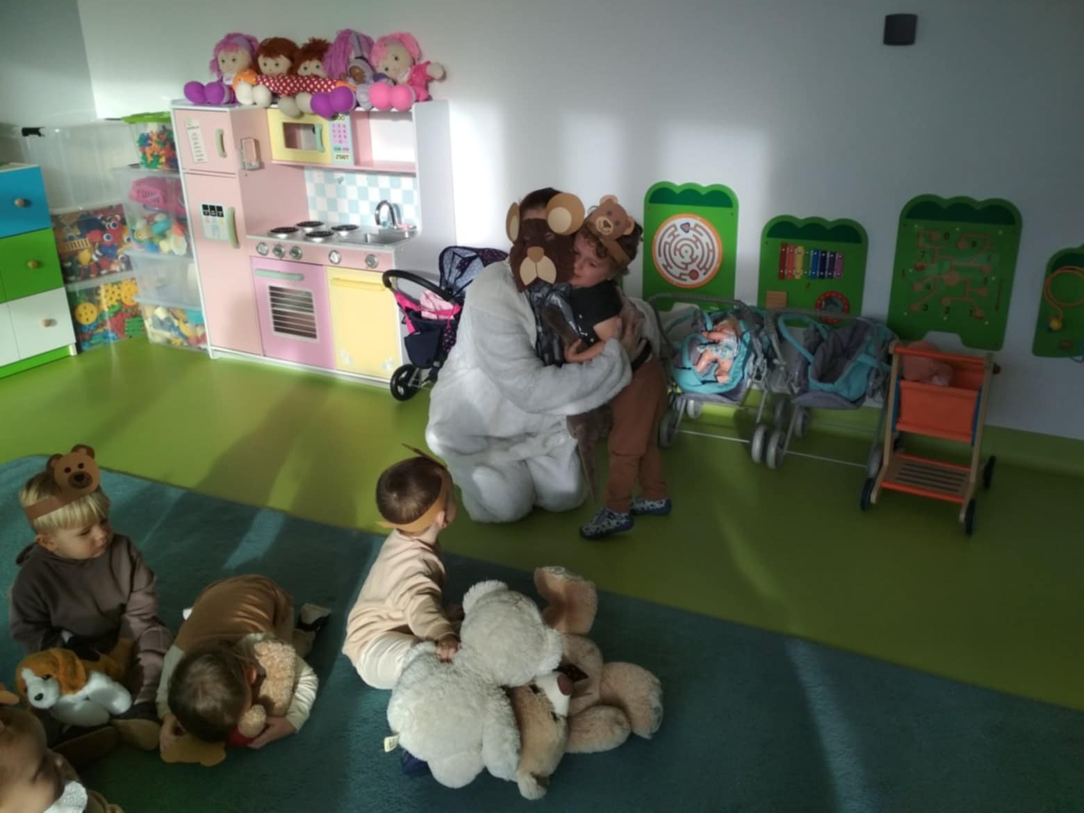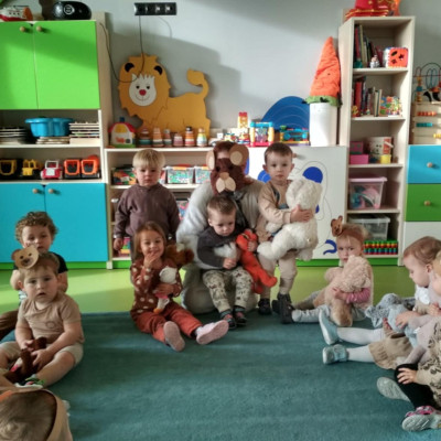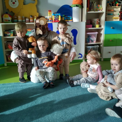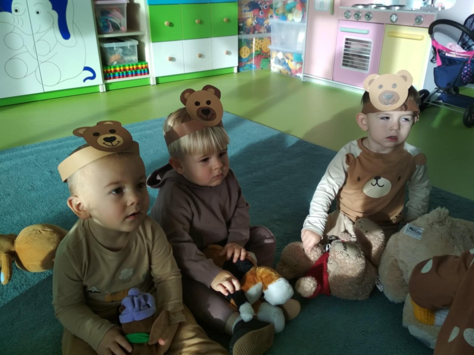 Zdjęcie przedstawia dzieci podczas zajęć w żłobku z okazji dnia misia