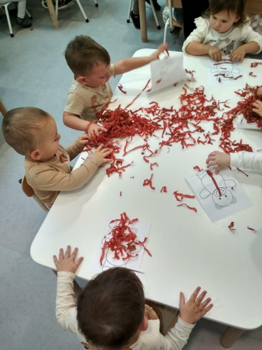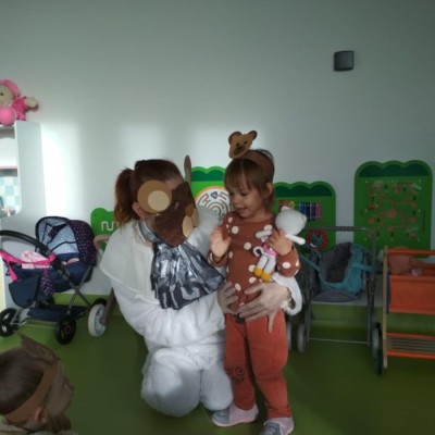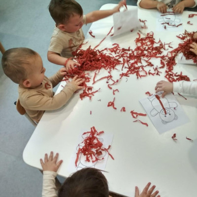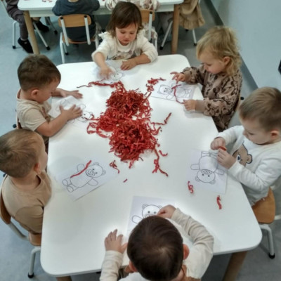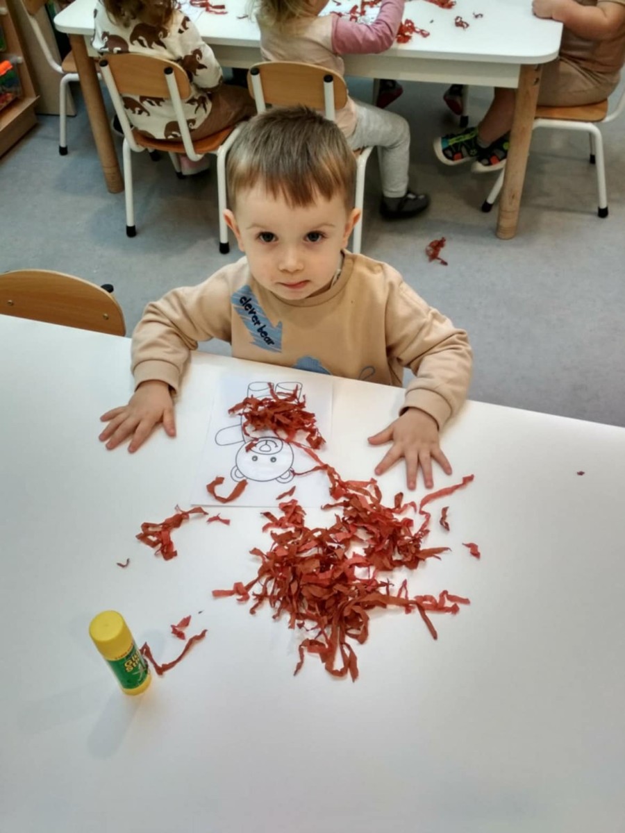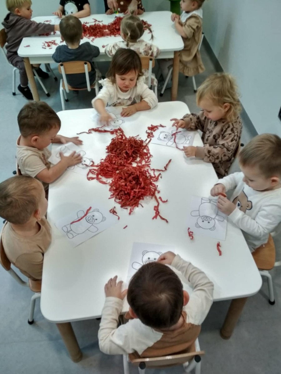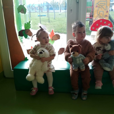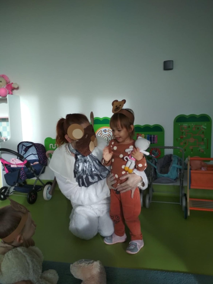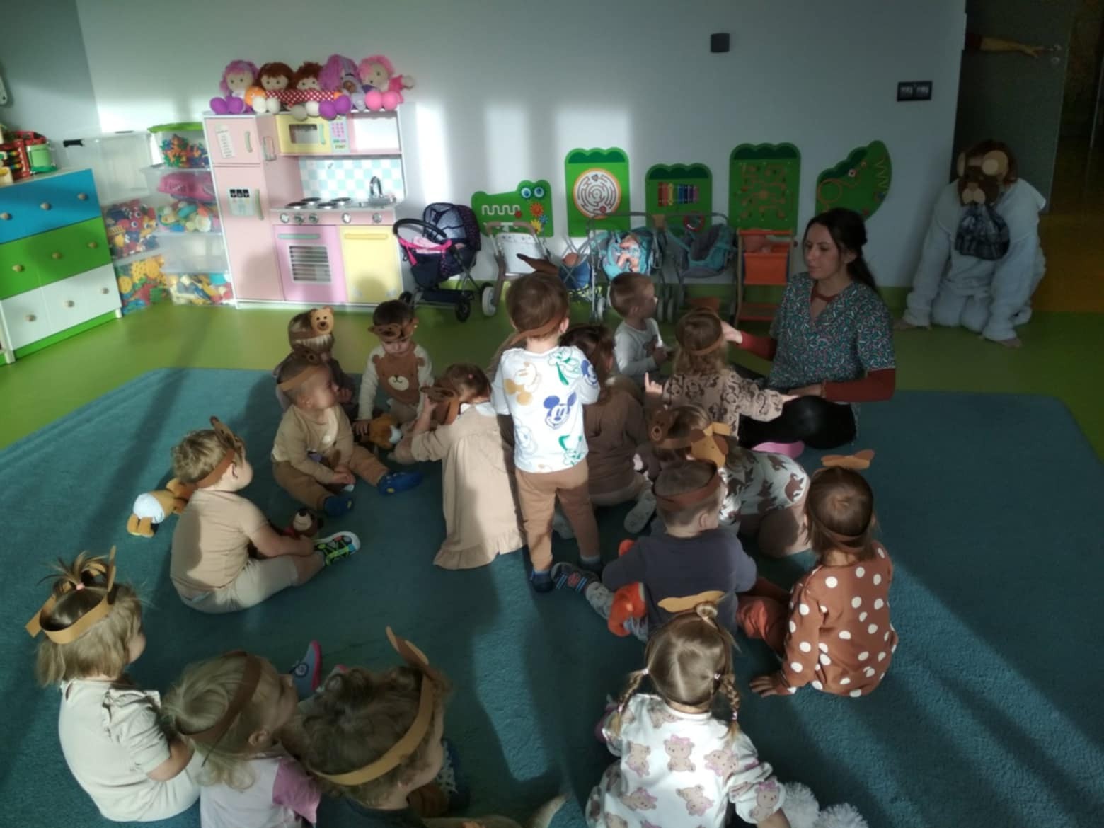 Zdjęcie przedstawia dzieci podczas zajęć w żłobku z okazji dnia misia