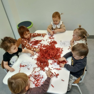 25 listopada obchodziliśmy Dzień Pluszowego Misia. Z tej okazji ciocie przygotowały dla dzieci wiele atrakcji: zabawy ruchowe, zgadywanki, śpiewanie piosenek oraz misiowe tańce z naszym gościem Misiem Lulusiem. Dzieci wykonały piękną pracę plastyczną z wykorzystaniem szablonu misia, kleju i bibuły. Ten dzień w naszym żłobku był pełen uśmiechu, radości oraz wspólnej zabawy ![]()