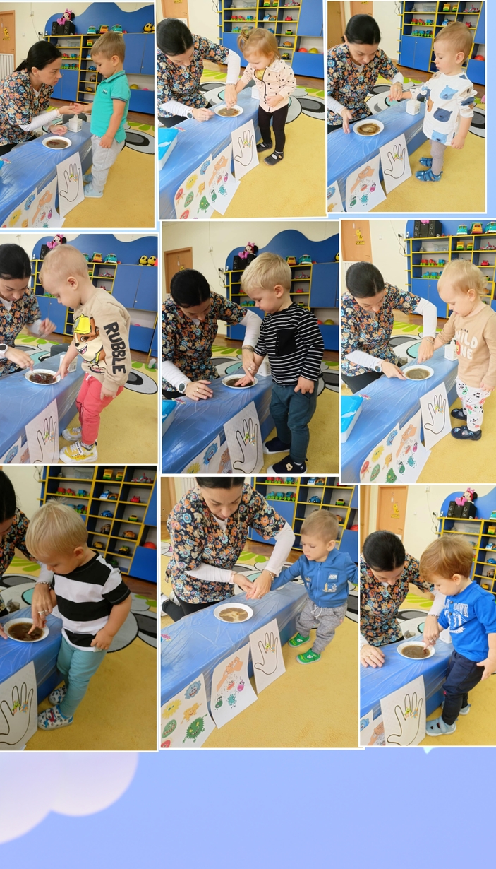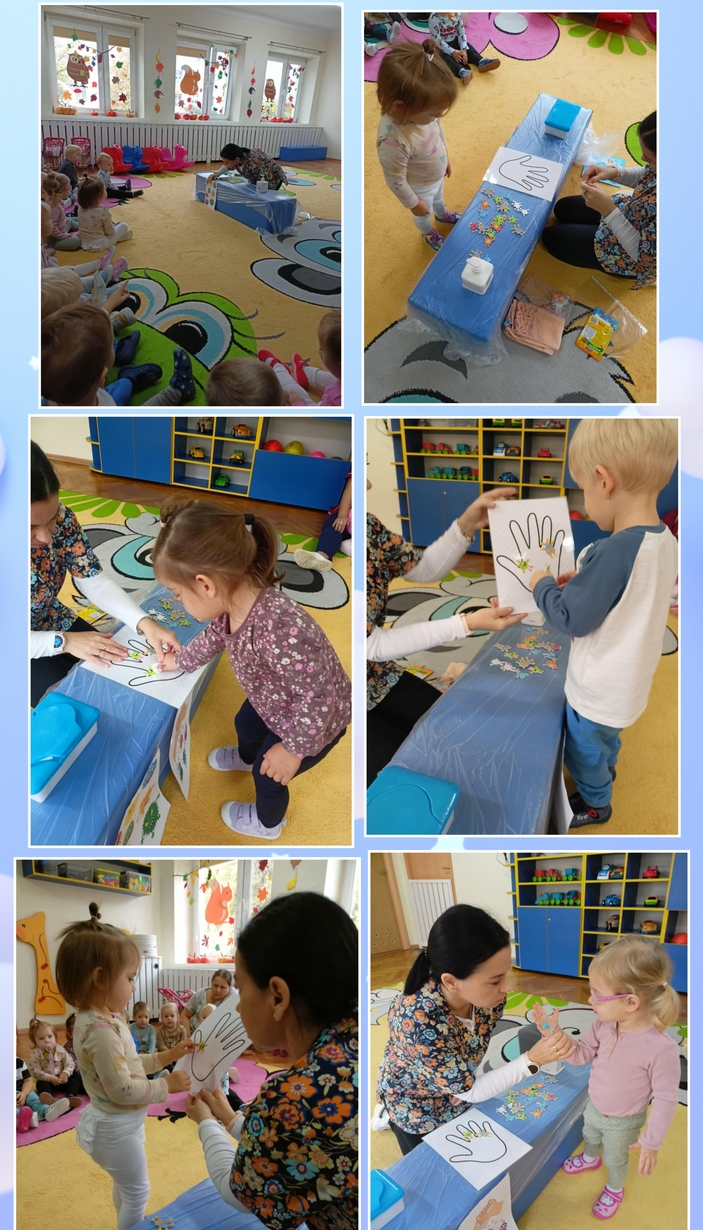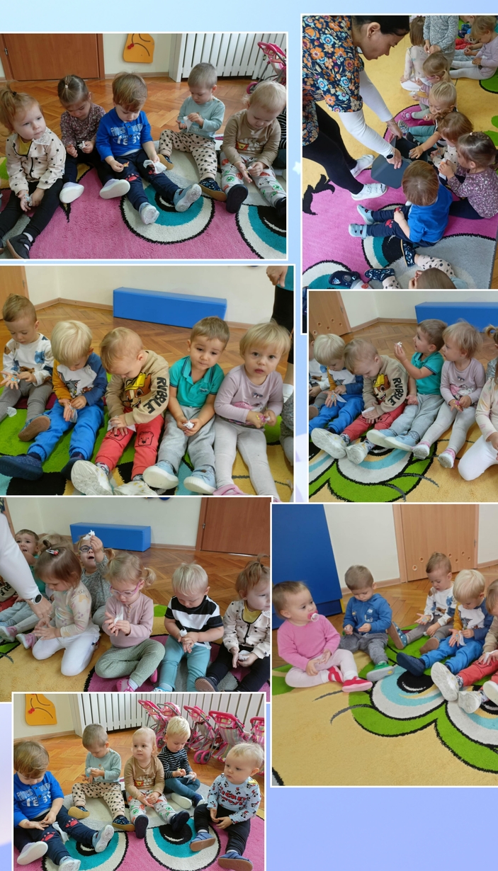Pszczółki podczas dobrej zabawy uczyły się jak myć rączki. Słuchały też piosenki ,,Umyć ręce" naśladując gesty opiekunek. Na koniec otrzymały dyplomiki.